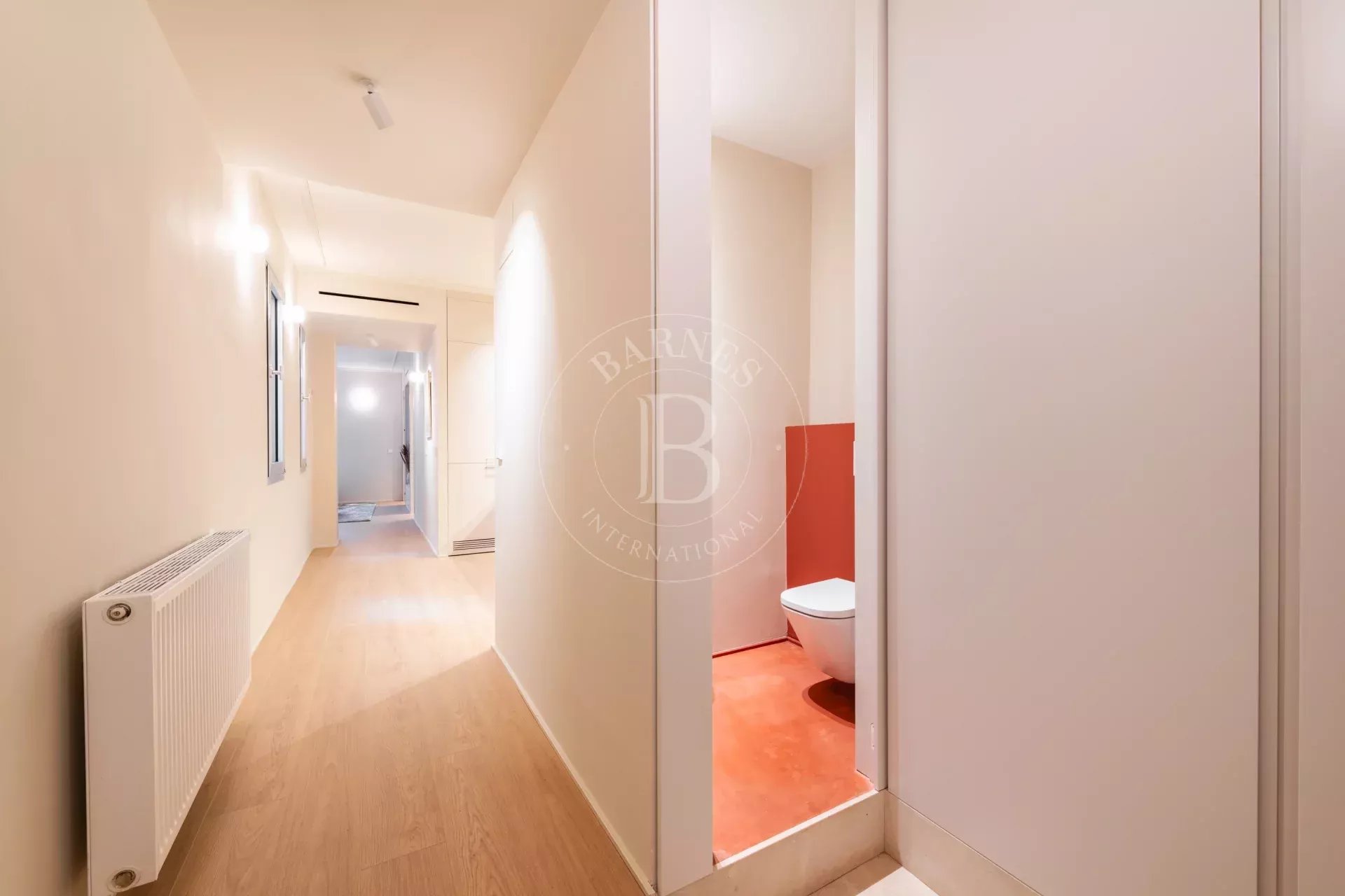 Le logement, entièrement meublé et prêt à emménager, a fait l’objet d’une rénovation soignée avec des matériaux et des finitions de haute qualité. Il dispose de deux grandes chambres en suite, conçues pour offrir un maximum de confort et d’indépendance. La suite principale comprend un élégant dressing, apportant fonctionnalité et sophistication. De plus, il comprend des toilettes invités, idéales pour les visiteurs.