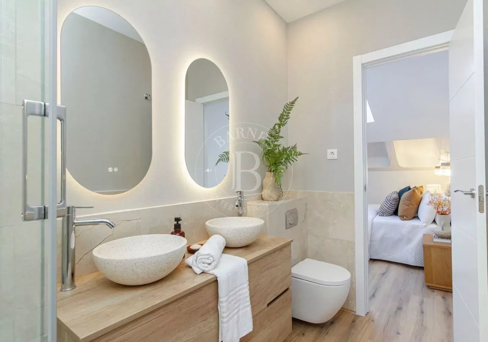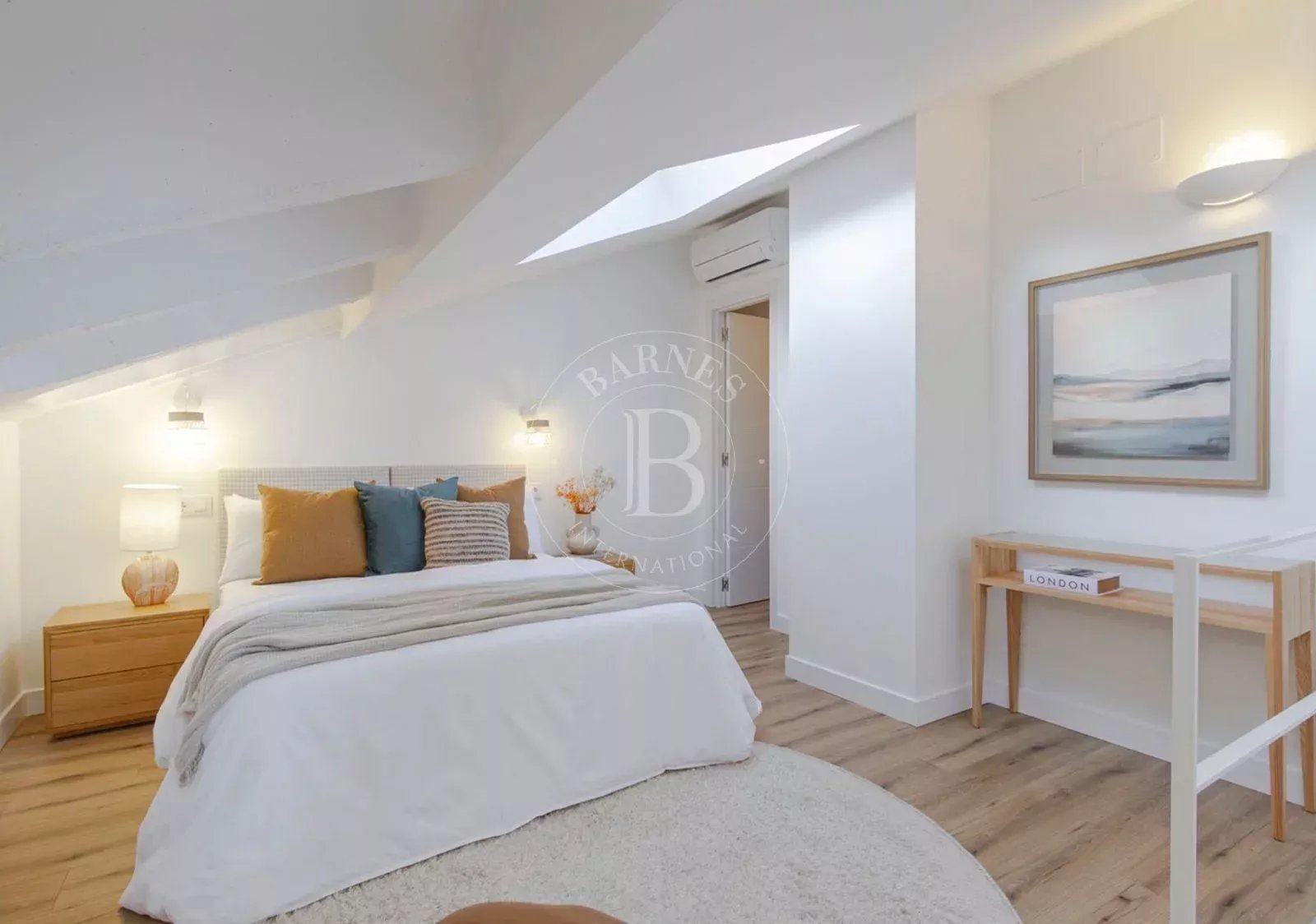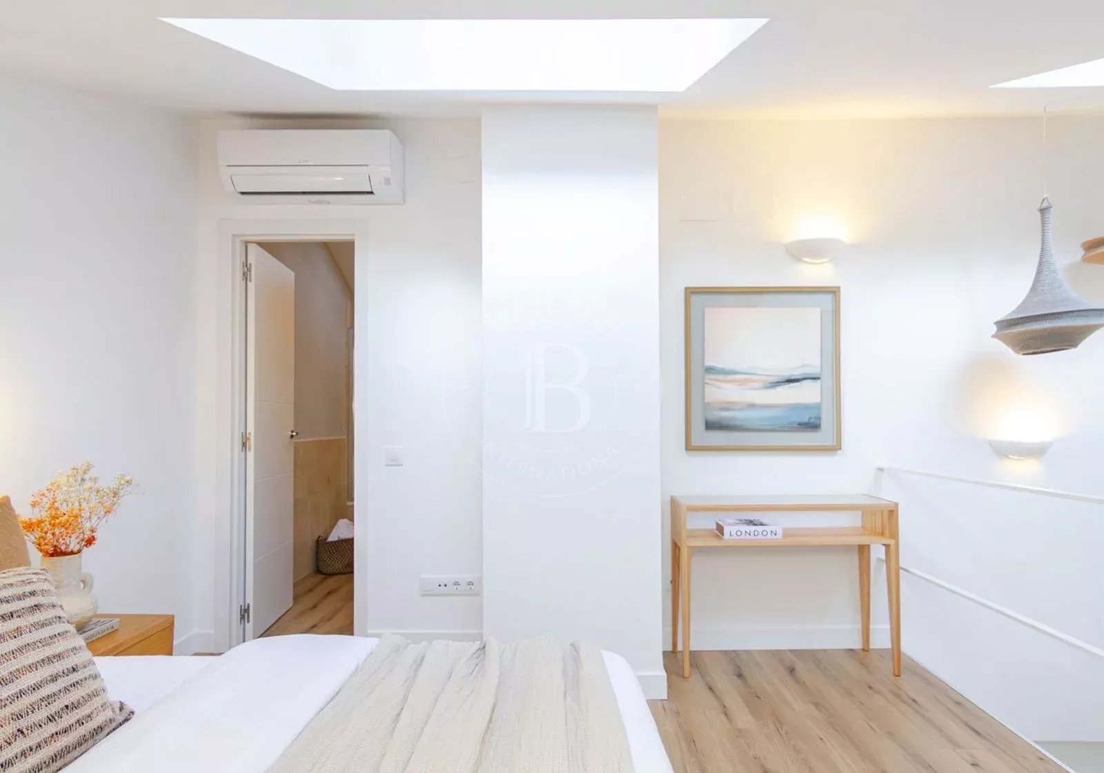 L'étage supérieur abrite une deuxième chambre de plus de 21 m², spacieuse et baignée de lumière, ainsi qu'une deuxième salle de bains complète, créant ainsi un espace plus intime au sein du logement. La propriété dispose d'une climatisation par conduits et est livrée avec des matériaux et des finitions de haute qualité, soigneusement sélectionnés.