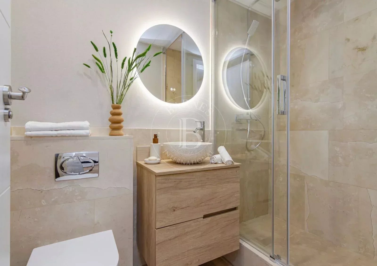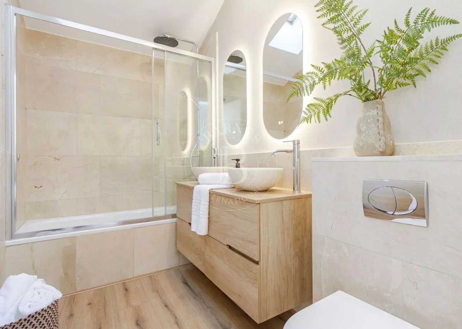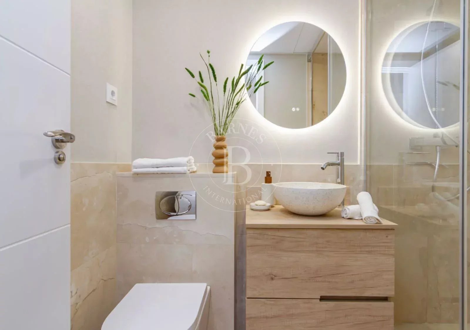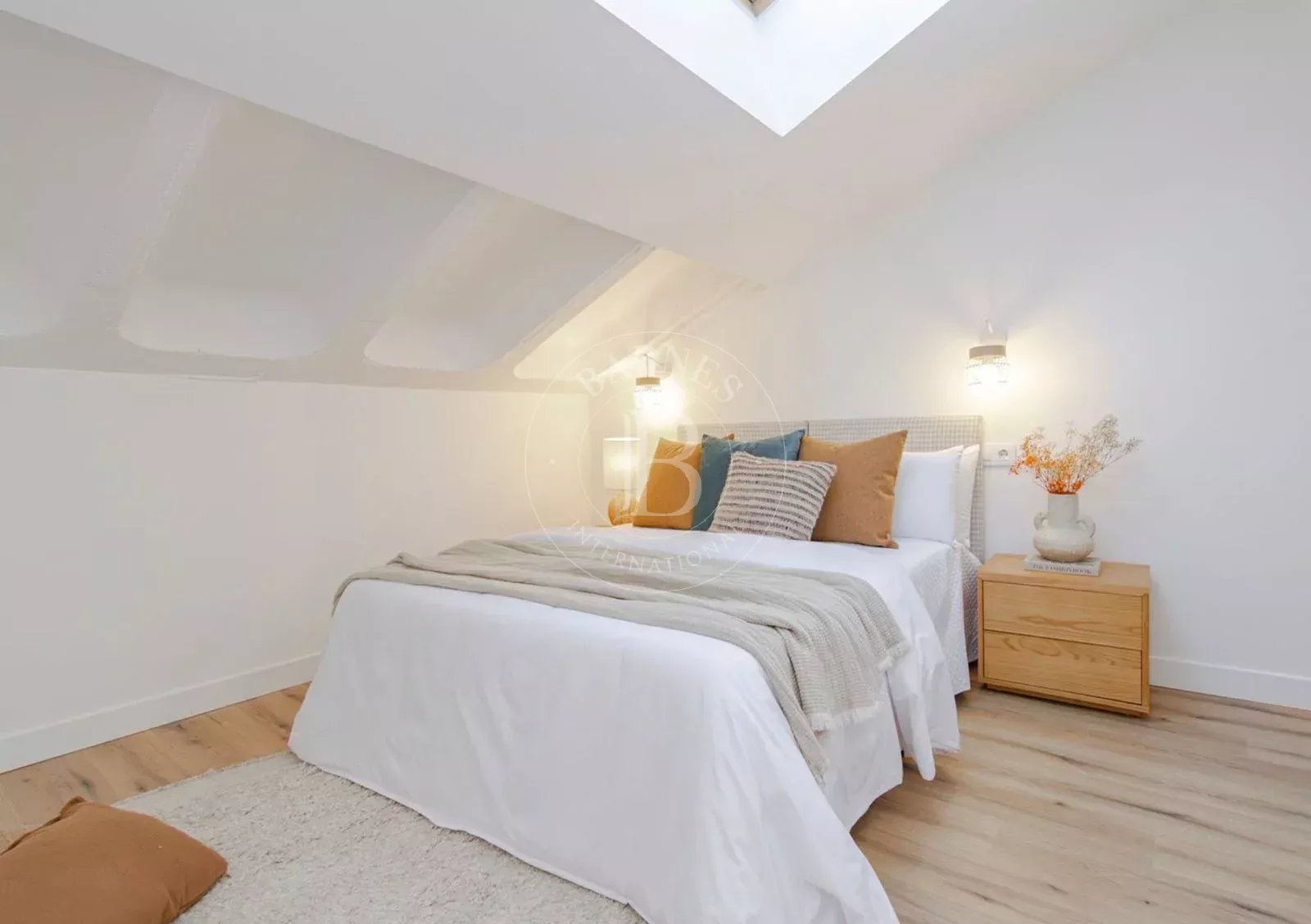 L'étage supérieur abrite une deuxième chambre de plus de 21 m², spacieuse et baignée de lumière, ainsi qu'une deuxième salle de bains complète, créant ainsi un espace plus intime au sein du logement. La propriété dispose d'une climatisation par conduits et est livrée avec des matériaux et des finitions de haute qualité, soigneusement sélectionnés.