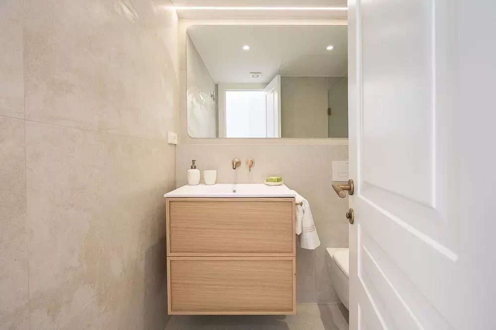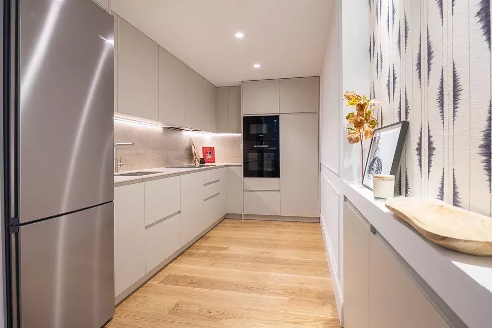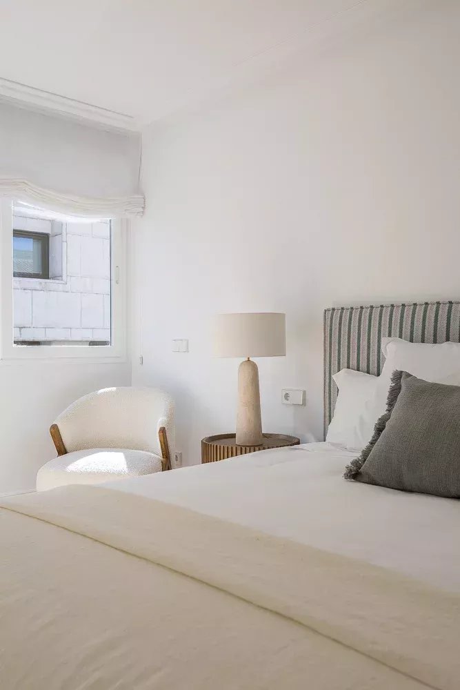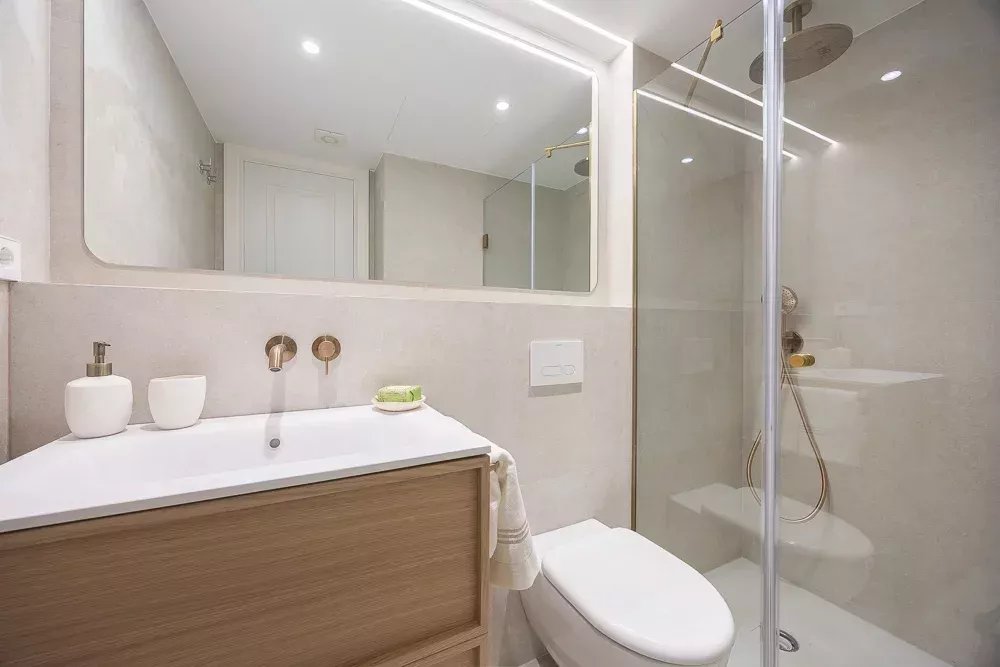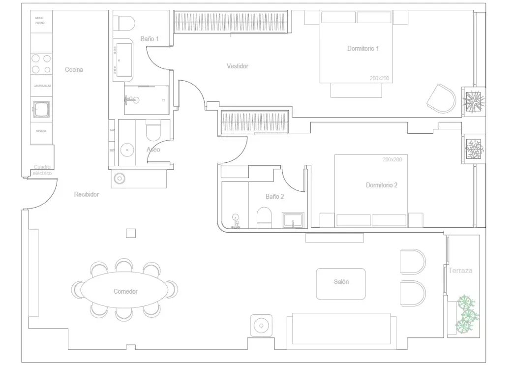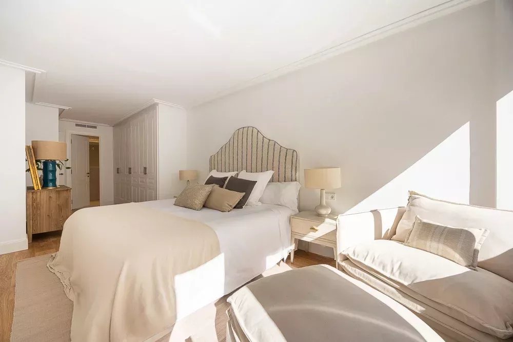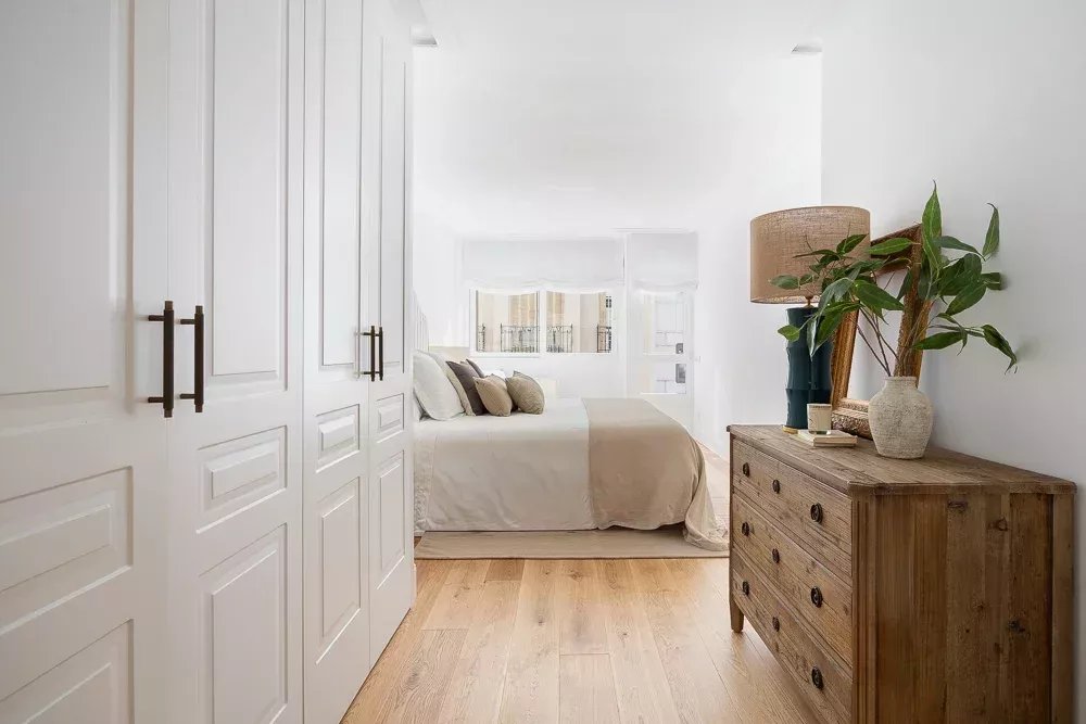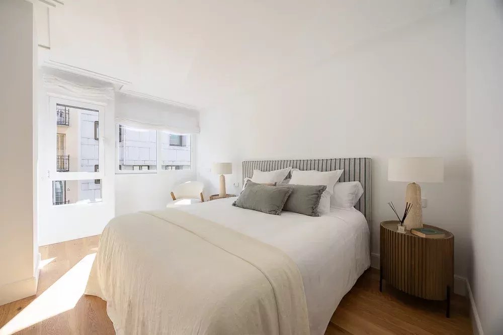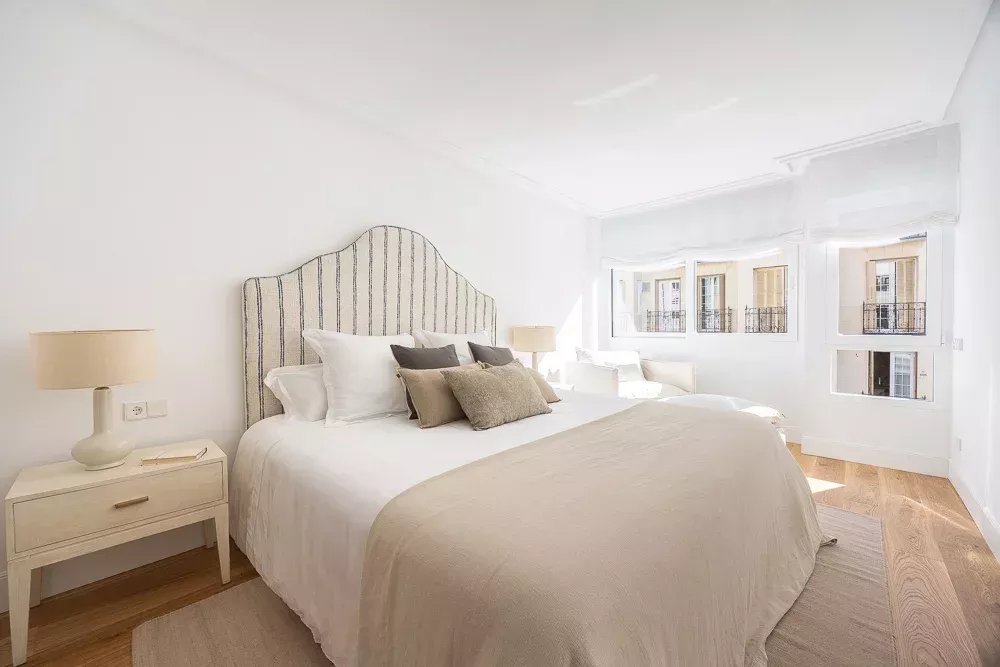 Le plan comprend deux chambres de belles proportions et une salle de bains complète, avec finitions de qualité et menuiseries soignées. L’ensemble répond aux attentes de nombreux acquéreurs d’appartements de luxe à Madrid : prestations actuelles, confort et emplacement prime avec parking—un atout différenciant dans le Barrio de Salamanca.