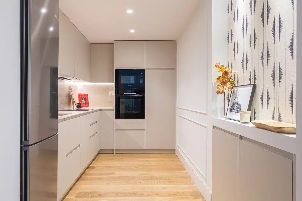 L’appartement s’ouvre sur un vaste hall avec rangements sur mesure menant à un séjour très lumineux, ouvert sur une façade de baies vitrées qui inonde l’espace de lumière naturelle. La cuisine ouverte, entièrement équipée d’électroménager, se connecte avec fluidité à l’espace de vie, créant une atmosphère confortable et fonctionnelle au quotidien.