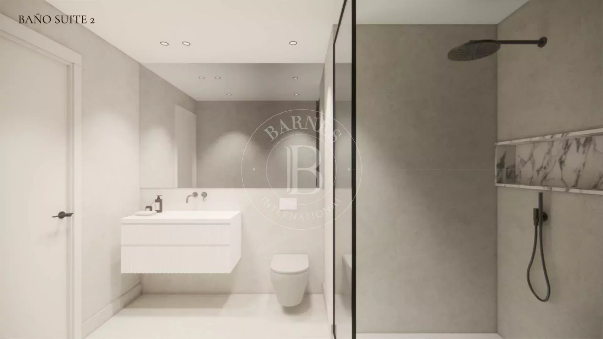 La distribution offre un salon-salle à manger spacieux et lumineux avec une cuisine ouverte intégrée, créant un espace social confortable et sophistiqué. La zone nuit se compose de trois chambres, dont deux en suite avec leurs salles de bains privées respectives, ainsi qu'une troisième chambre et une salle de bains complète supplémentaire qui dessert à la fois cette pièce et les invités.