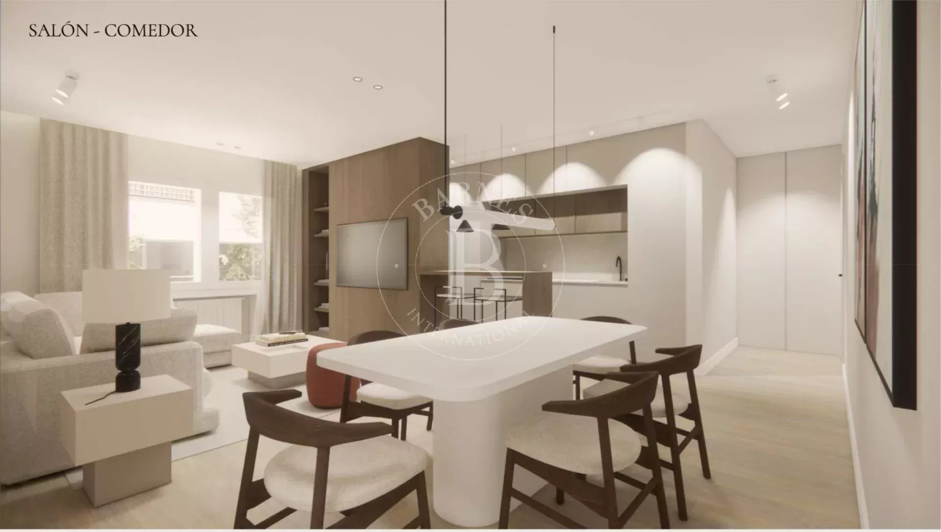 BARNES Madrid présente cet élégant appartement de 140 m² situé au troisième étage d'un immeuble classique. La propriété, actuellement en cours de rénovation complète et dont l'achèvement est prévu pour mars 2026, a été conçue avec un projet d'aménagement intérieur soigné qui allie fonctionnalité, design contemporain et matériaux de haute qualité.