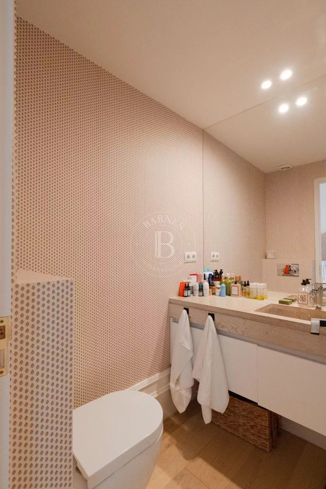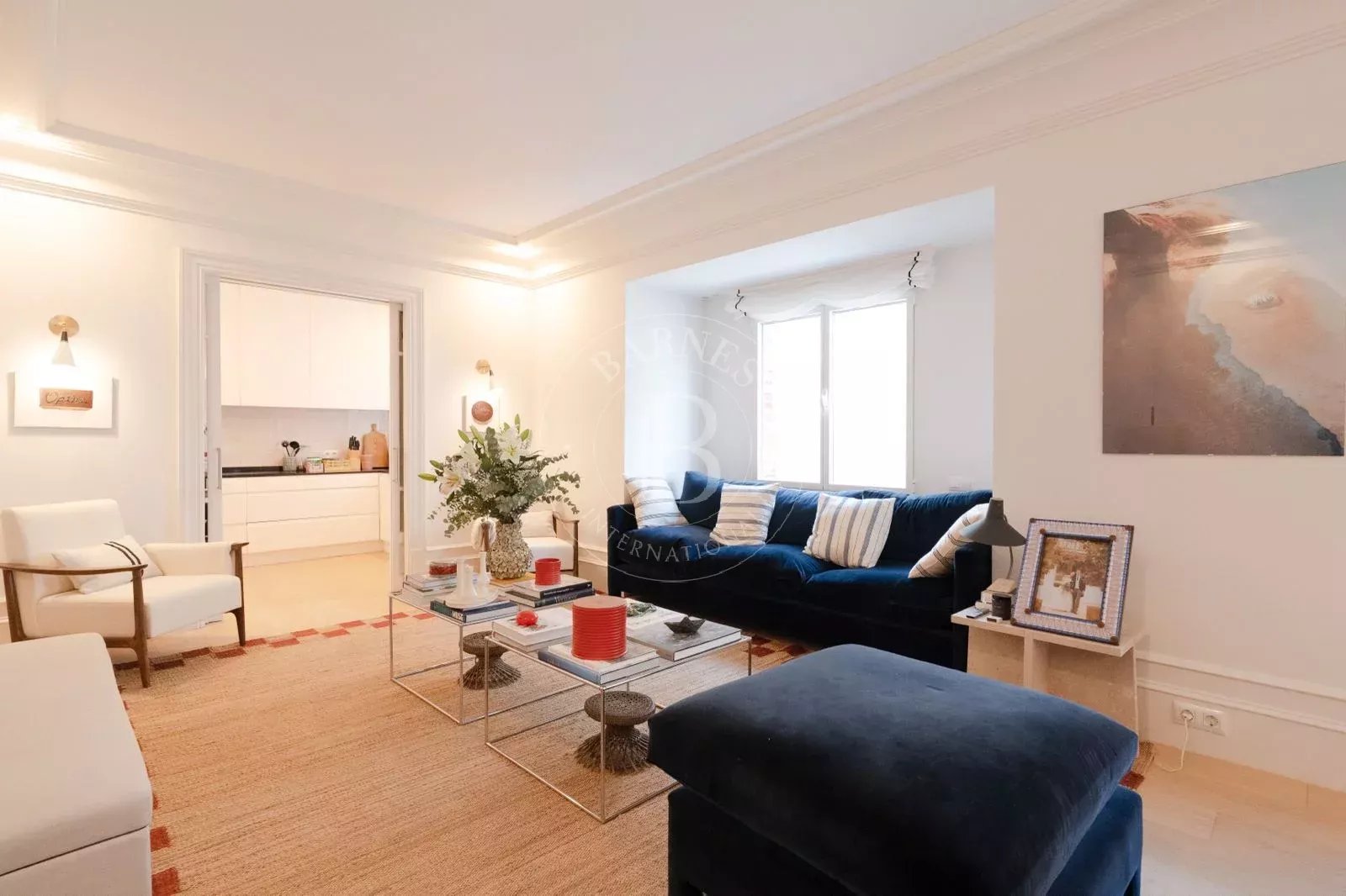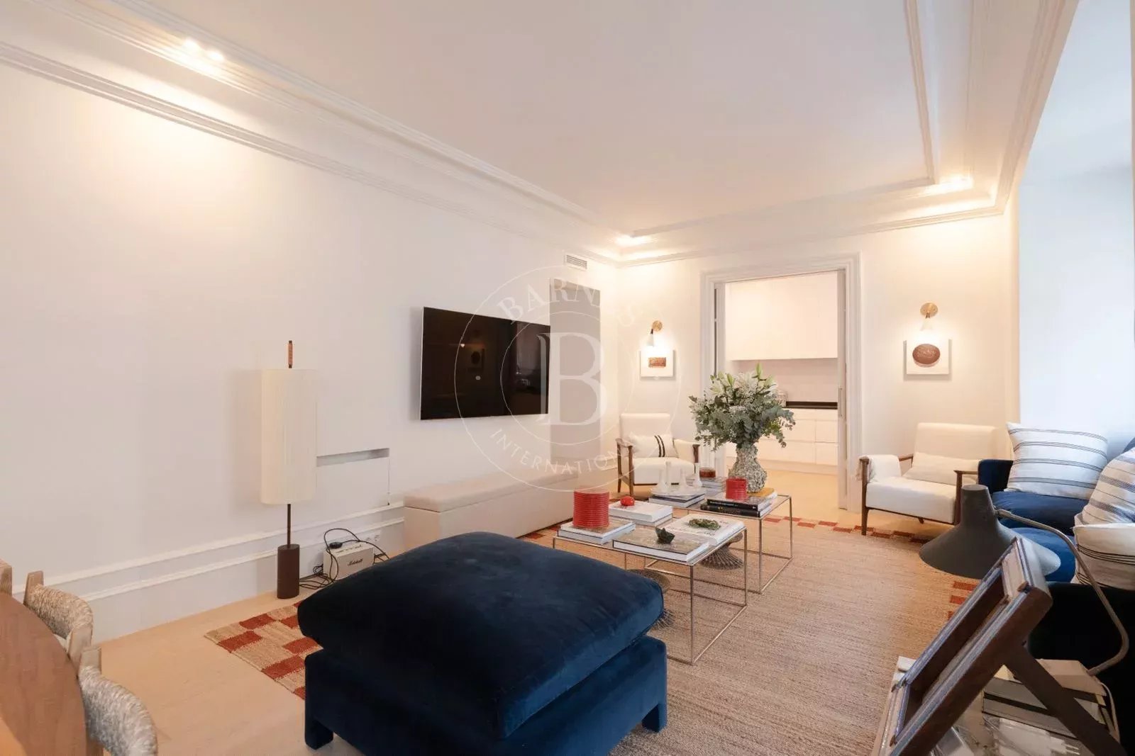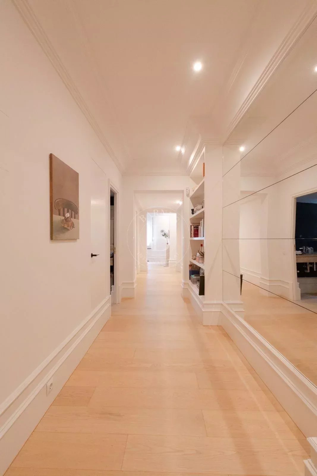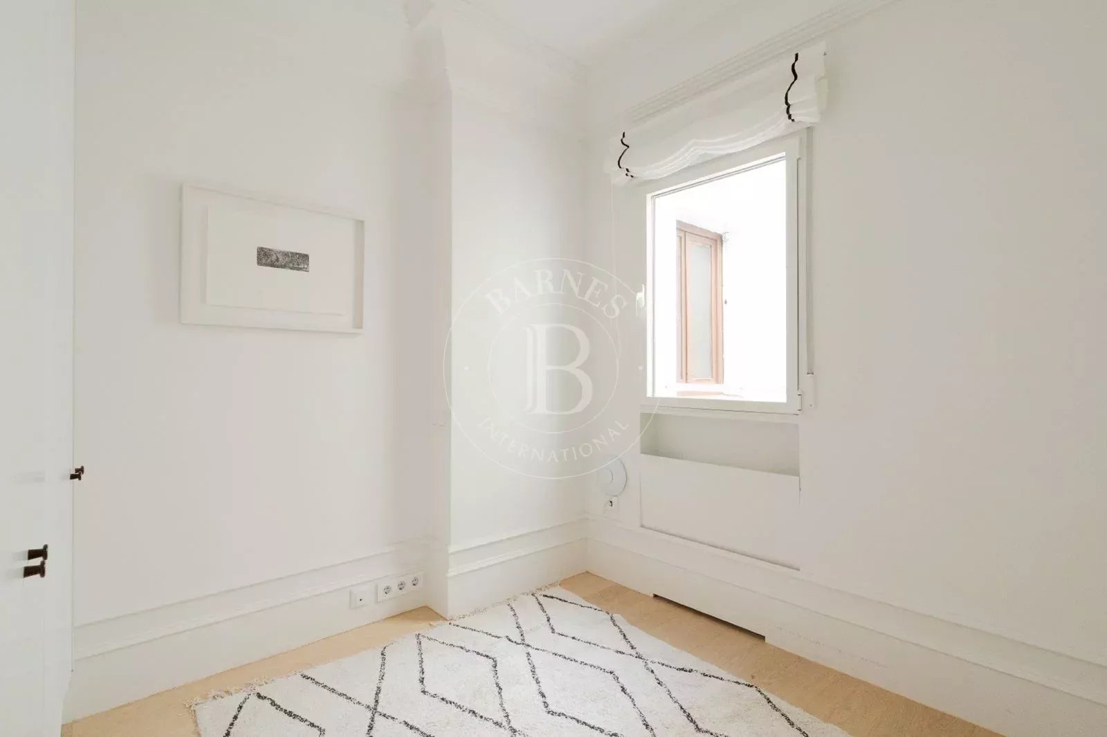 L’espace nuit offre trois chambres avec placards encastrés réalisés sur mesure et ventilation propre à chacune, ainsi que trois salles de bains. Le confort est assuré par une climatisation gainable neuve dans toutes les pièces. Le plan est pratique et fonctionnel, tout en respectant les moulures et les proportions d’origine afin de préserver l’âme de l’immeuble.