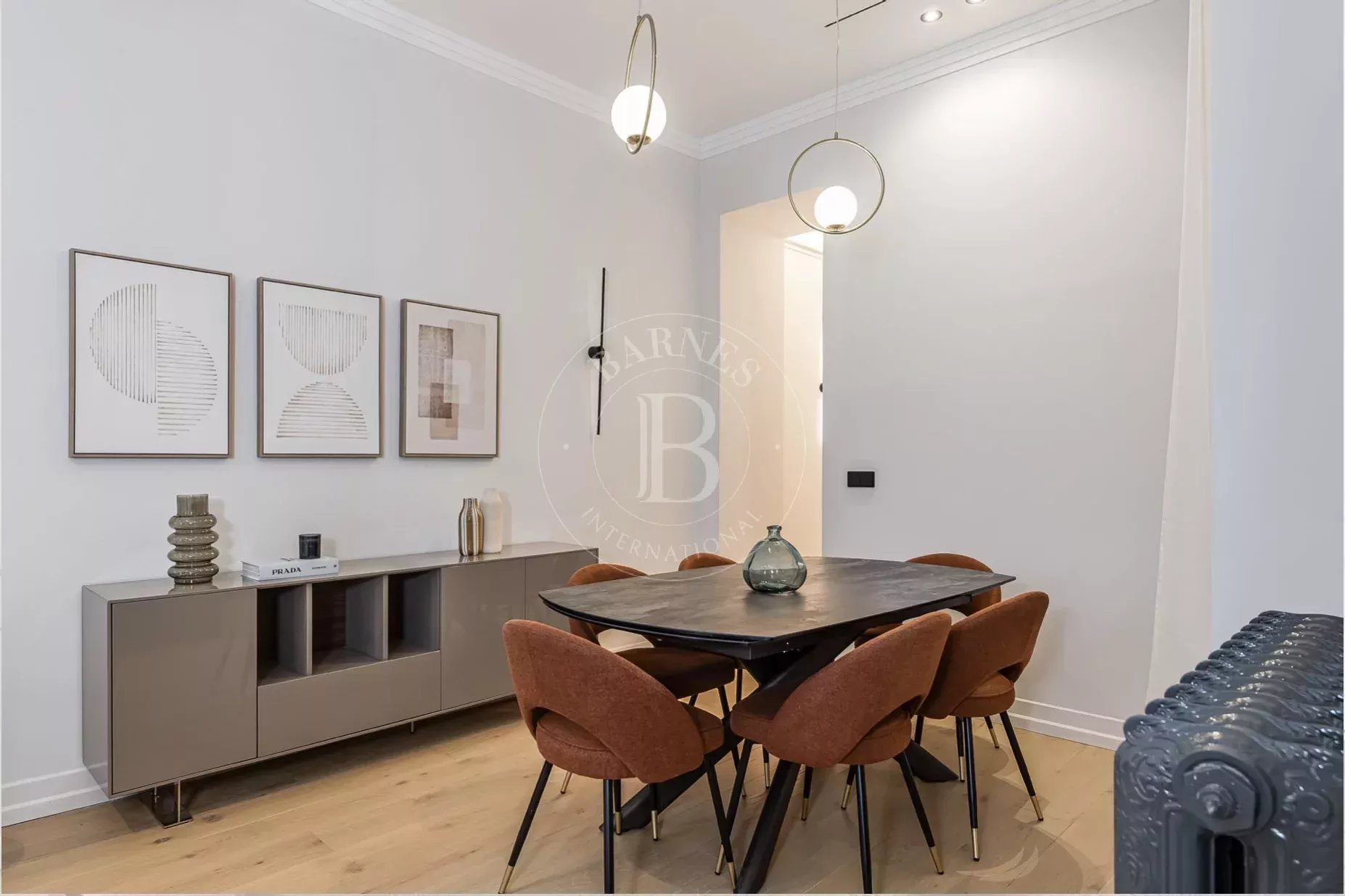 BARNES Madrid présente cette élégante propriété entièrement rénovée et meublée dans le prestigieux quartier d'Almagro, dans le district de Chamberí, l'un des quartiers les plus exclusifs et les plus prisés de la capitale.