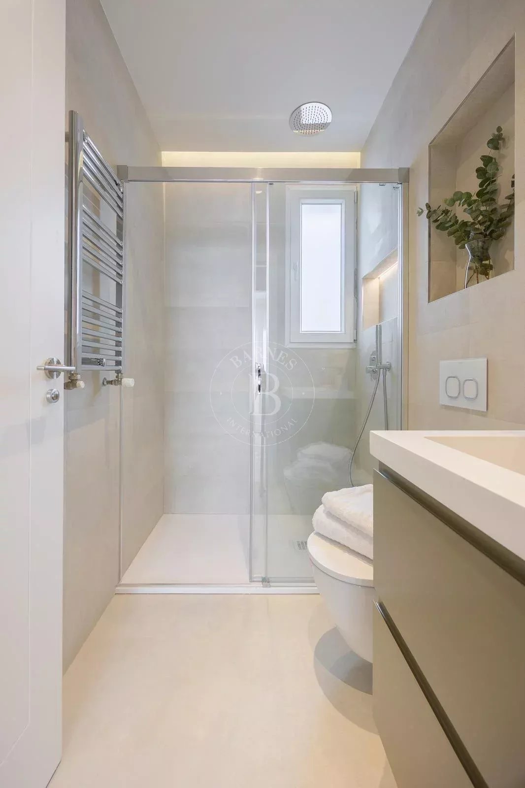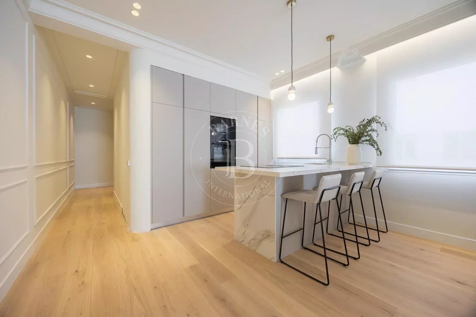 Une buanderie indépendante ajoute à la fonctionnalité, tandis que les moulures en plâtre apportent une touche classique qui se marie parfaitement avec la modernité du design.
