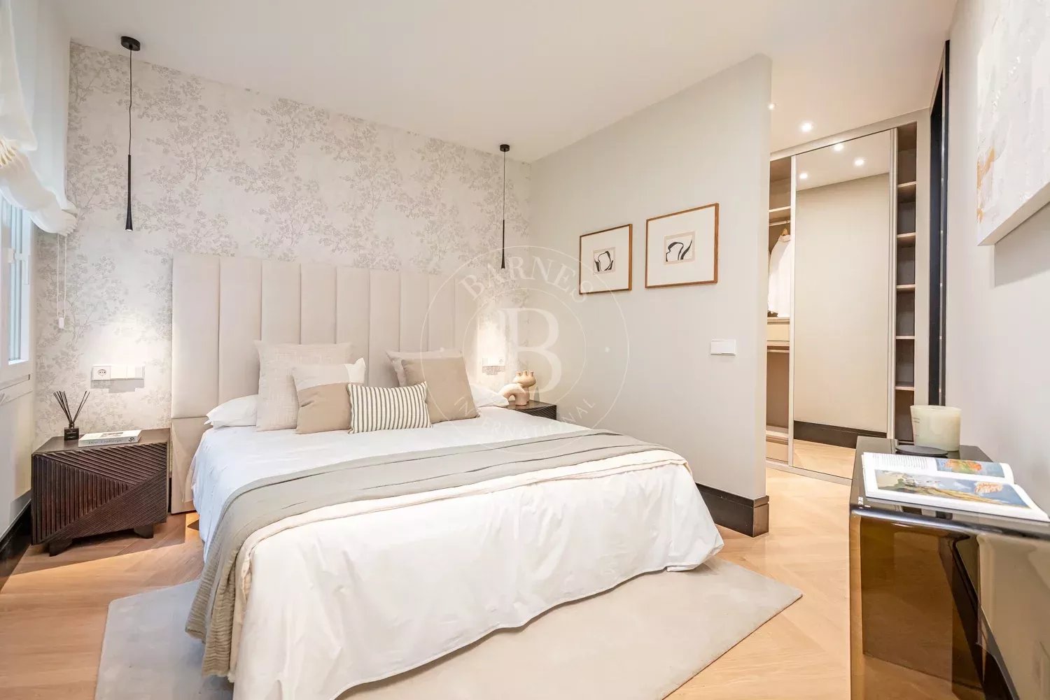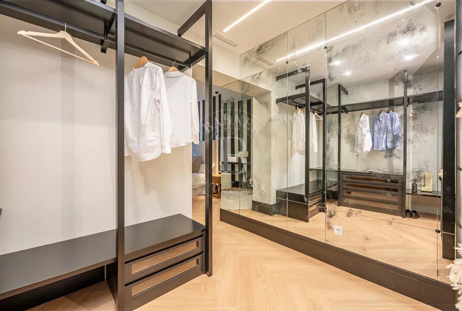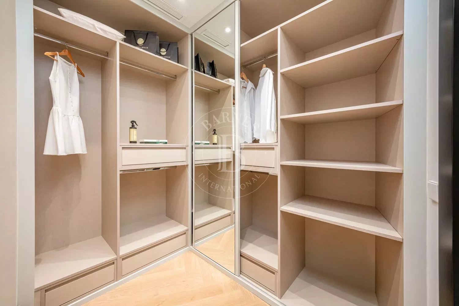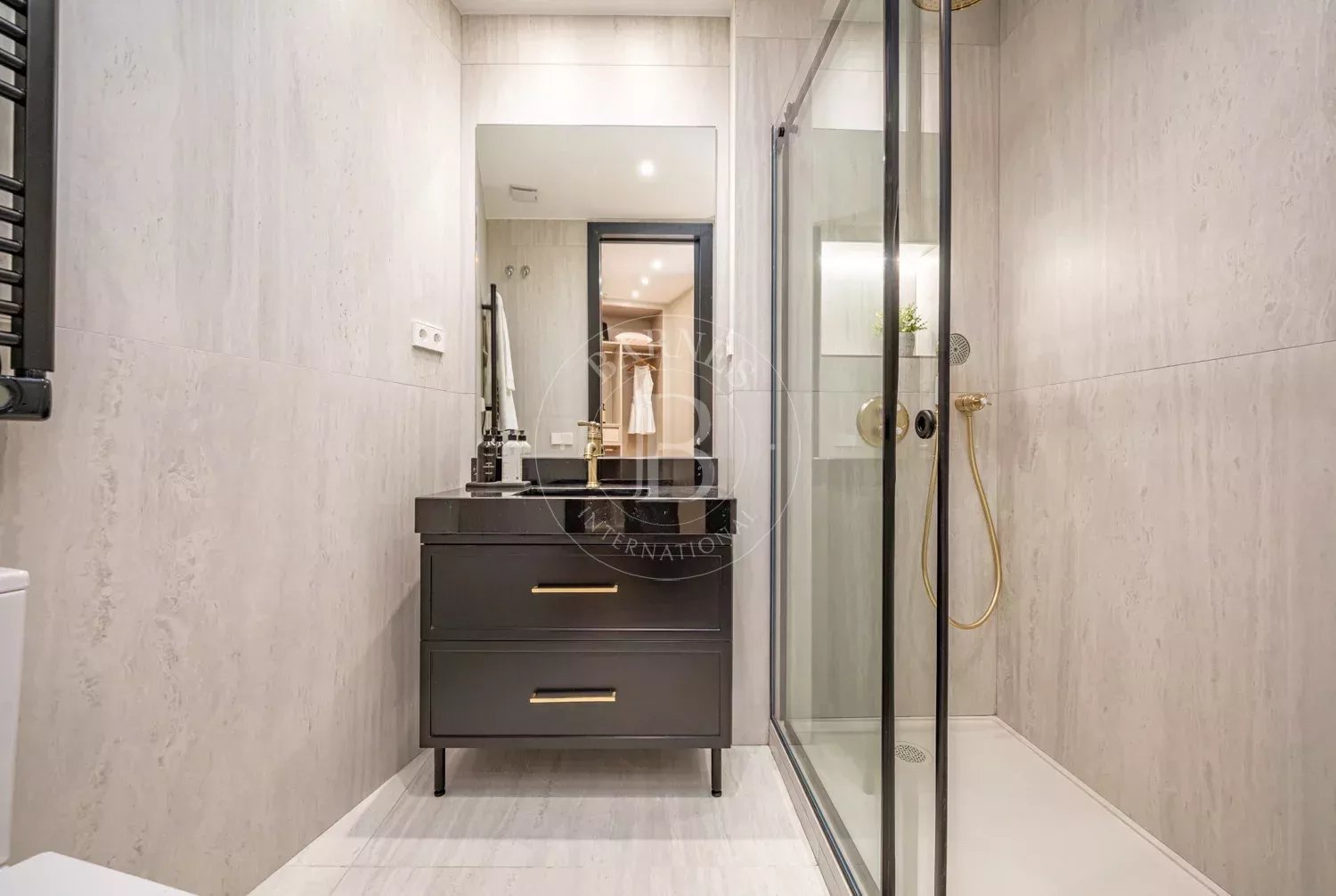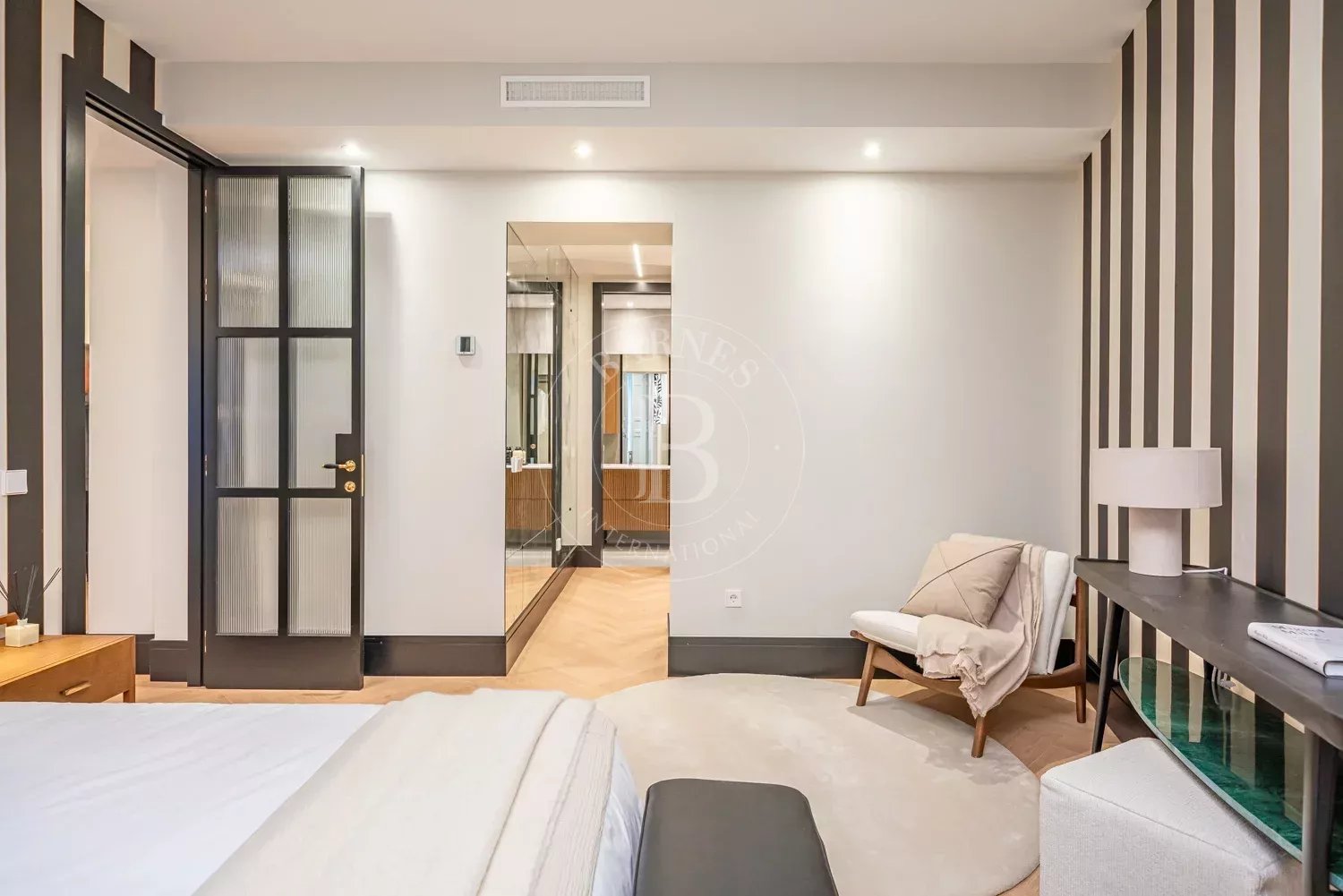 Le salon, spacieux et accueillant, est conçu pour profiter aussi bien de moments de détente que de réunions sociales, grâce à son équilibre entre confort et style contemporain. La zone privée comprend des chambres équipées d'armoires encastrées et de solutions de rangement sur mesure, qui optimisent l'espace sans renoncer à l'esthétique. Les salles de bains, au design impeccable, intègrent des matériaux nobles et un éclairage soigné qui rehausse leur caractère exclusif.