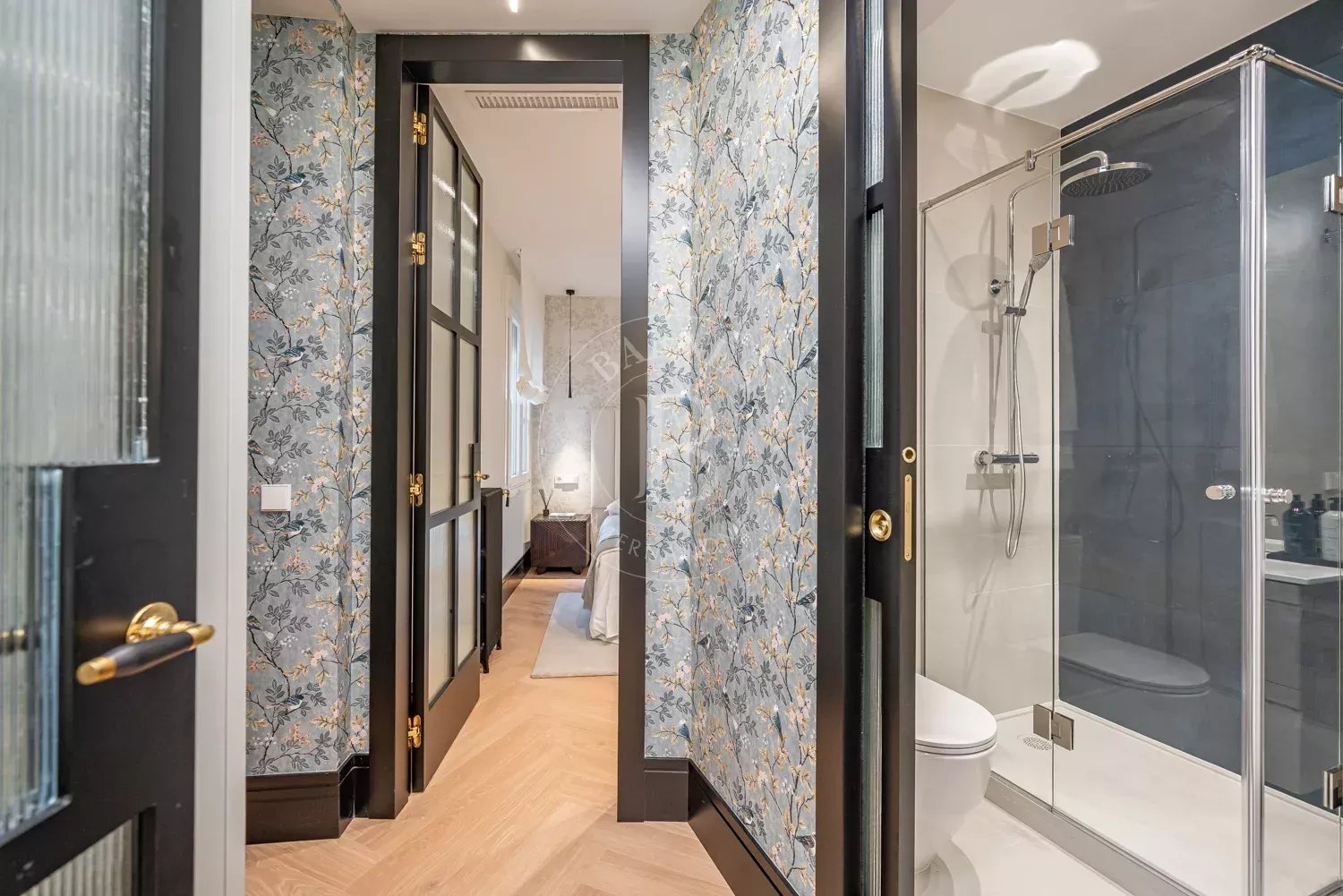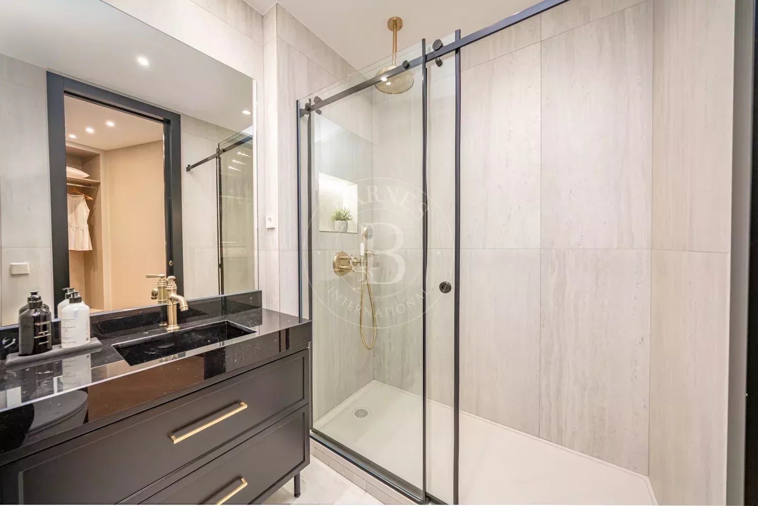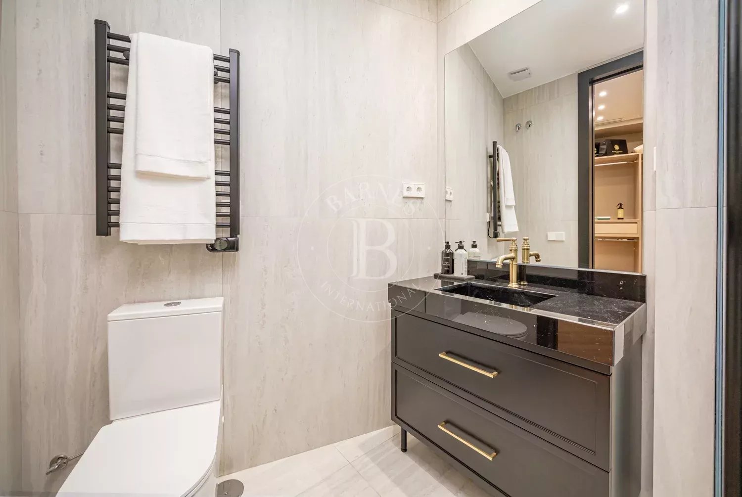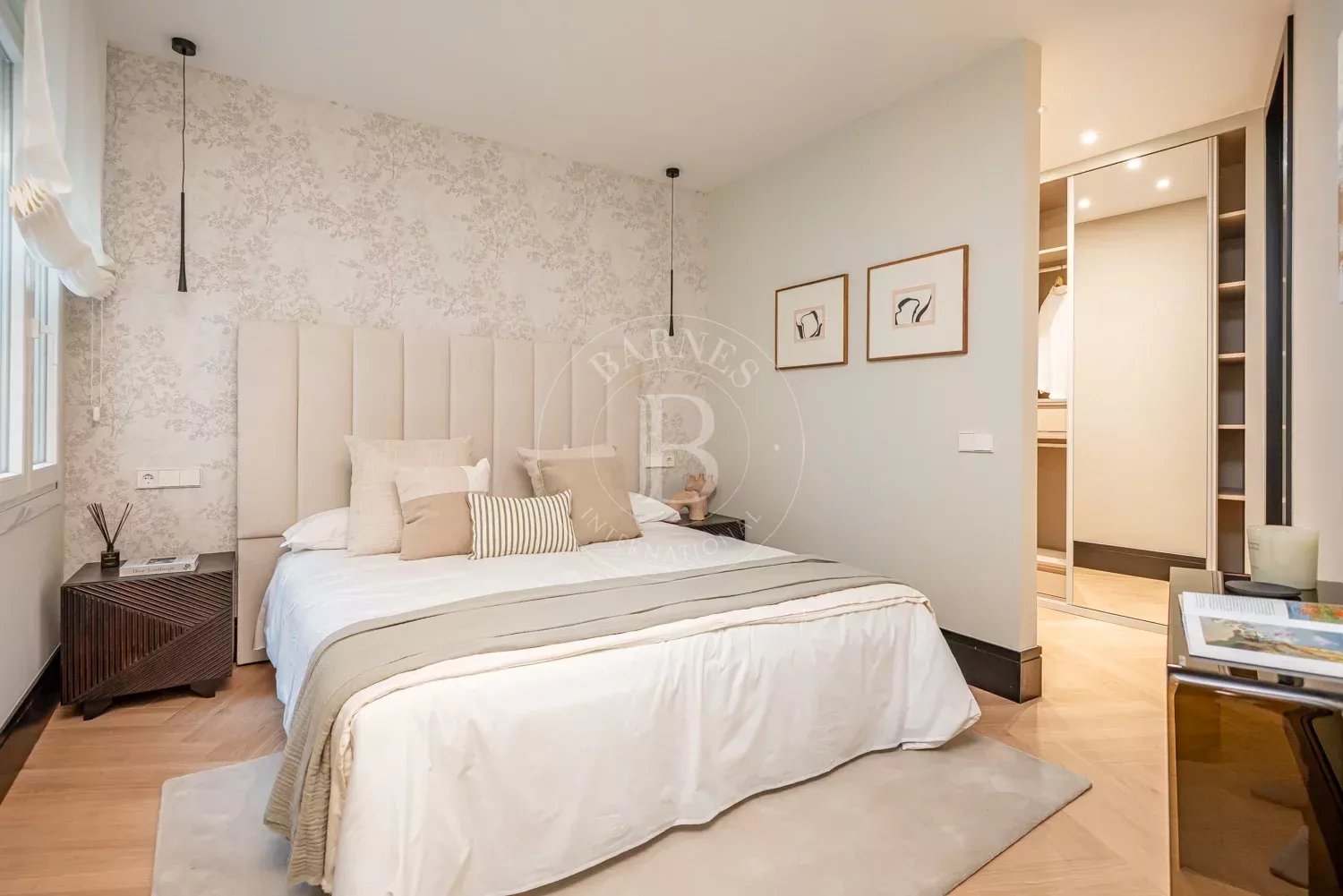 Le salon, spacieux et accueillant, est conçu pour profiter aussi bien de moments de détente que de réunions sociales, grâce à son équilibre entre confort et style contemporain. La zone privée comprend des chambres équipées d'armoires encastrées et de solutions de rangement sur mesure, qui optimisent l'espace sans renoncer à l'esthétique. Les salles de bains, au design impeccable, intègrent des matériaux nobles et un éclairage soigné qui rehausse leur caractère exclusif.