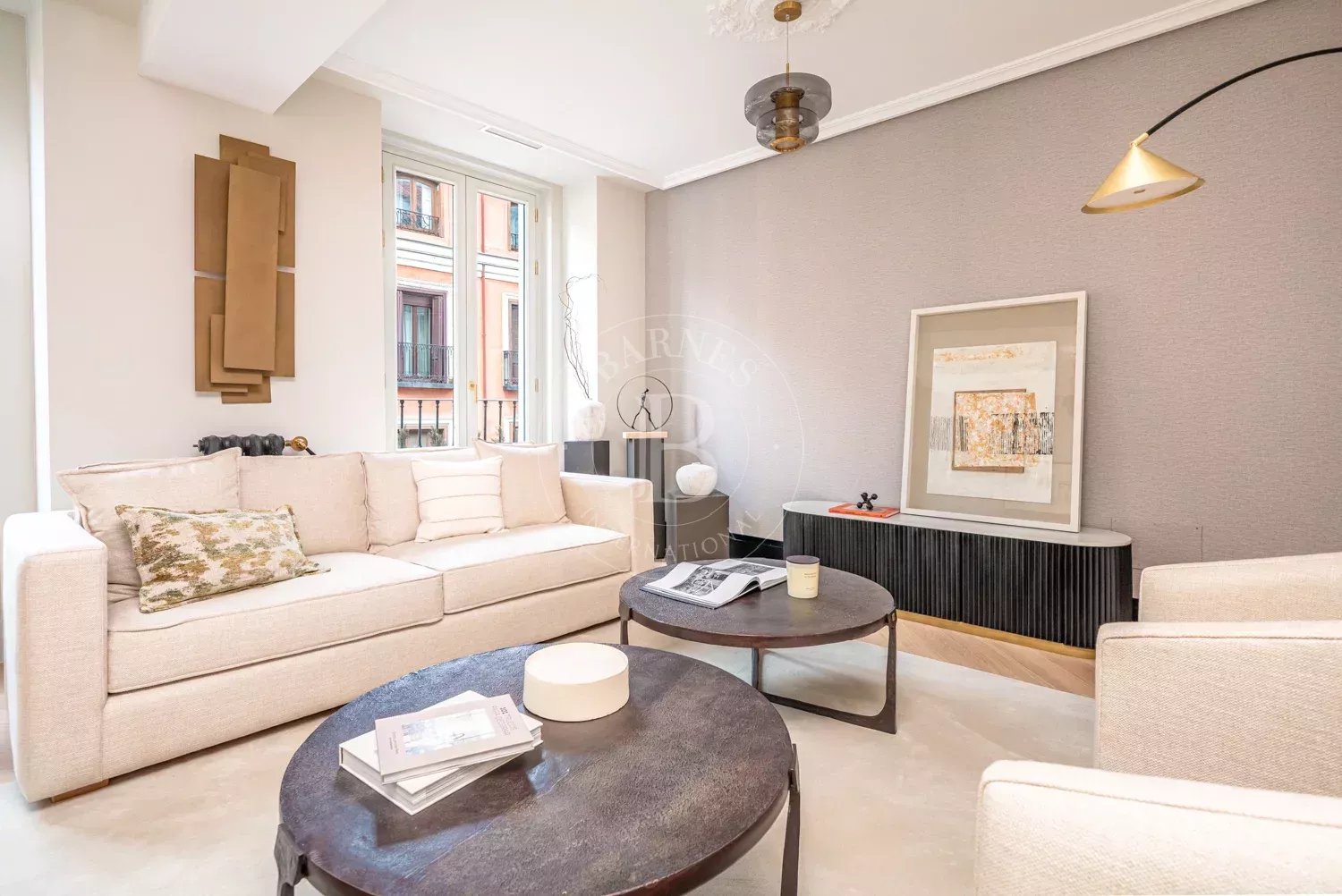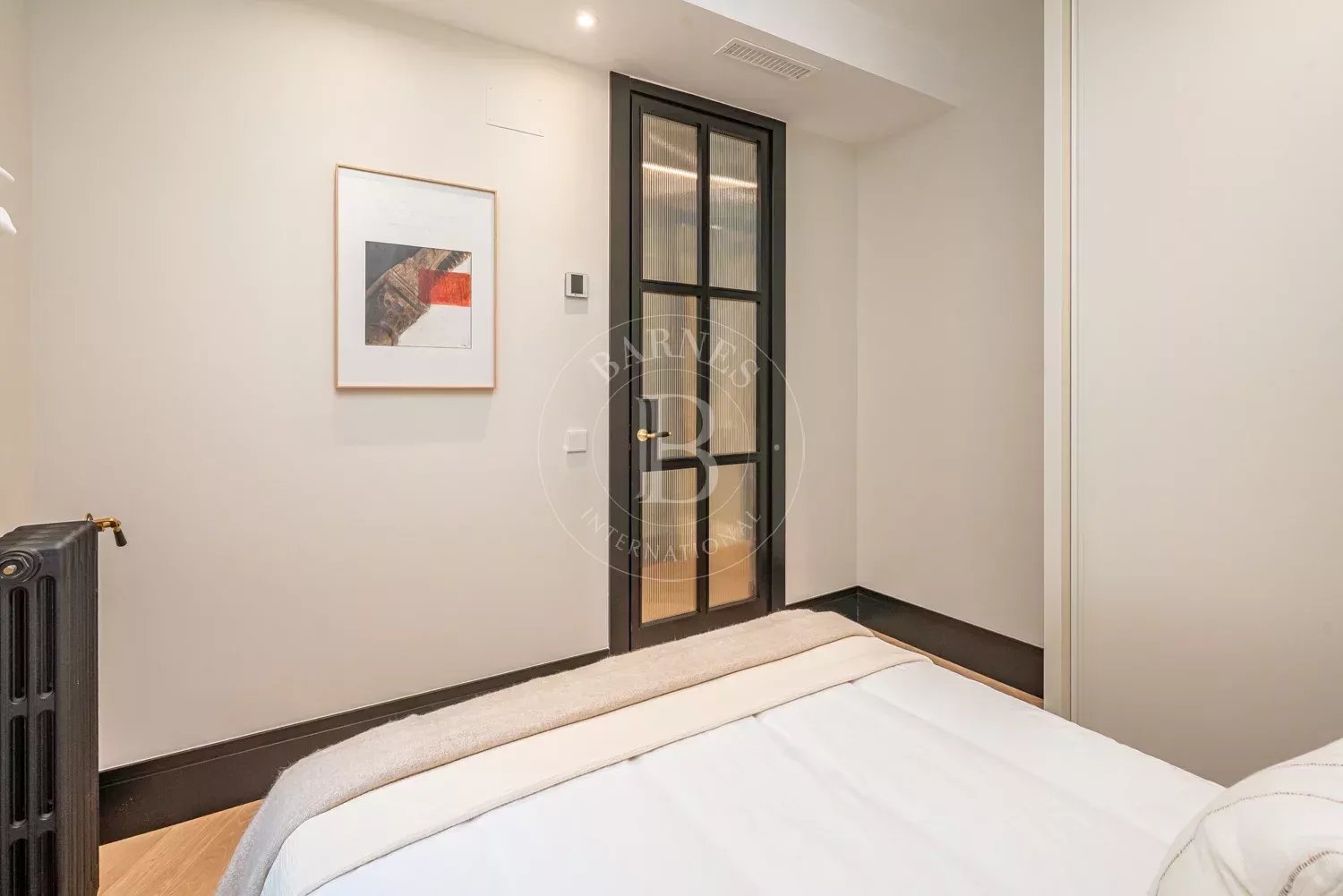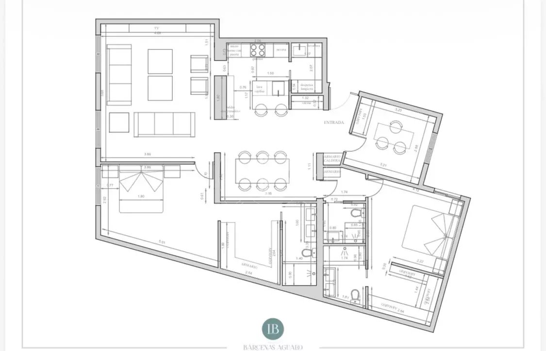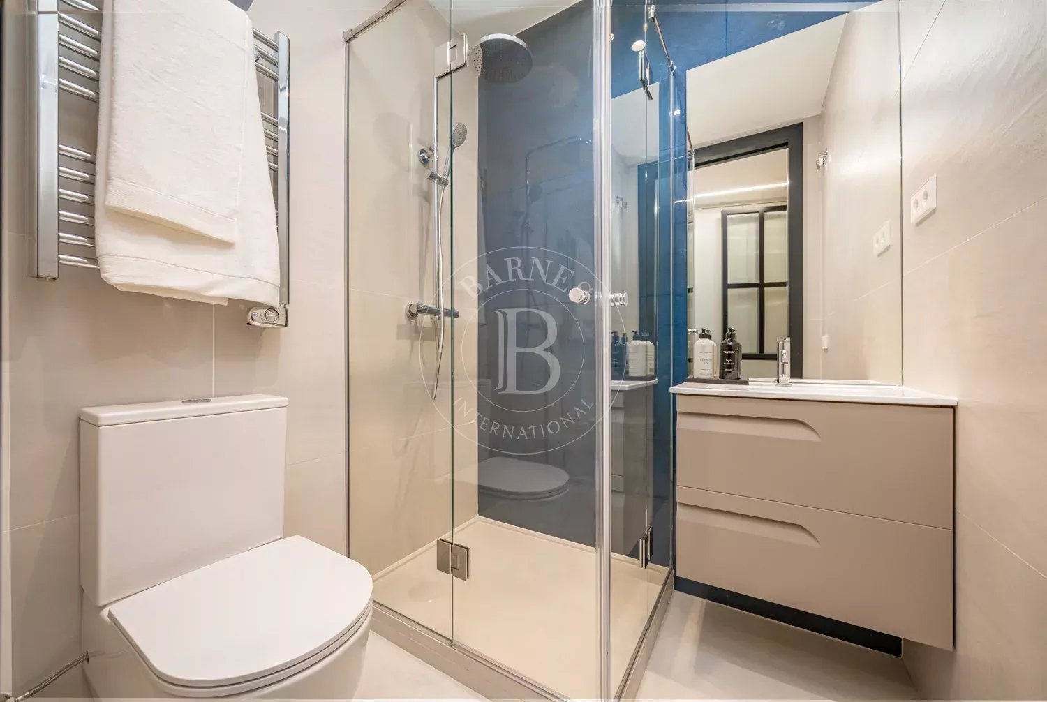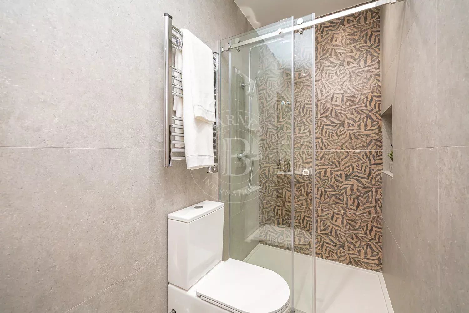 Le salon, spacieux et accueillant, est conçu pour profiter aussi bien de moments de détente que de réunions sociales, grâce à son équilibre entre confort et style contemporain. La zone privée comprend des chambres équipées d'armoires encastrées et de solutions de rangement sur mesure, qui optimisent l'espace sans renoncer à l'esthétique. Les salles de bains, au design impeccable, intègrent des matériaux nobles et un éclairage soigné qui rehausse leur caractère exclusif.