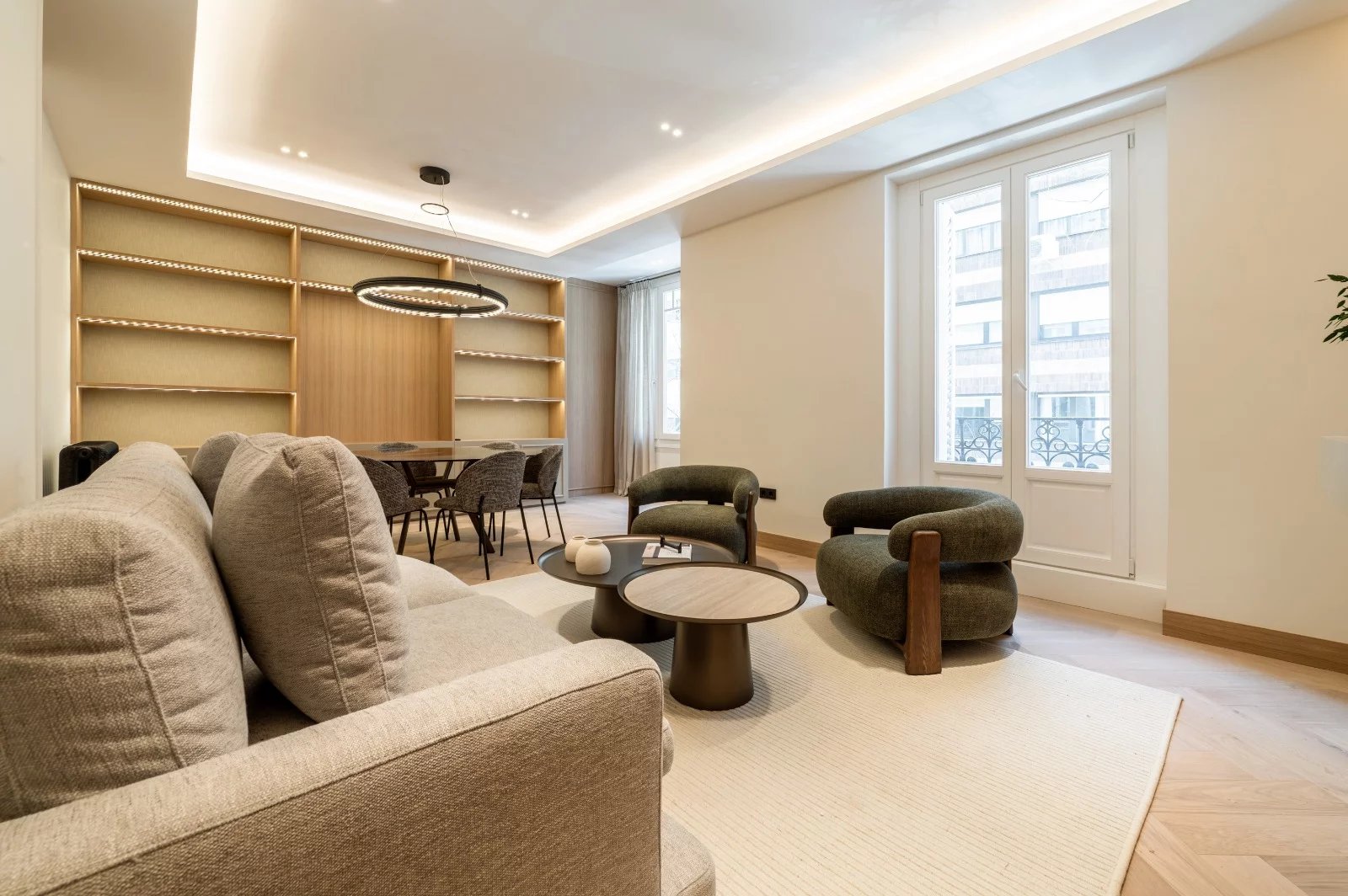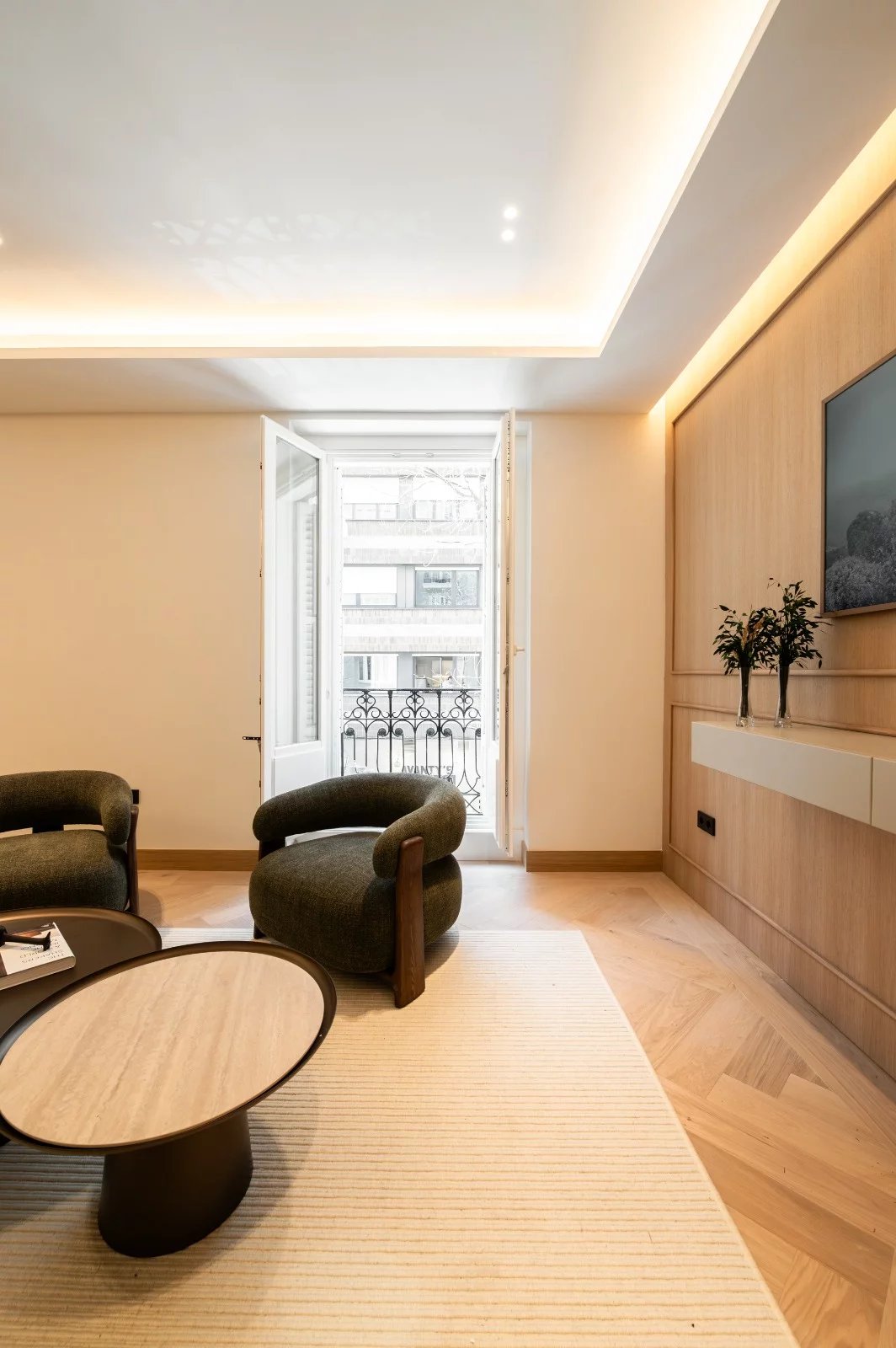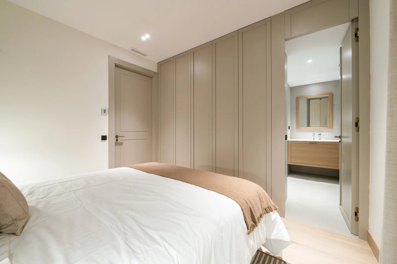 Appartement de 167 m² entièrement rénové avec une qualité exceptionnelle, situé au premier étage élevé, côté rue, d'un immeuble distingué du quartier de Salamanque. Le bien a été conçu avec une philosophie de vie moderne et sophistiquée, en accordant une attention particulière aux matériaux, à la lumière et à la fonctionnalité de chaque espace. Il comprend trois chambres en suite, chacune avec sa propre salle de bain privée, ainsi qu'un WC visiteurs. La chambre principale se distingue par son élégant dressing intégré, transformant la zone de repos en un véritable espace de bien-être. La zone de vie, composée d'un lumineux salon-salle à manger orienté sur la rue, est complétée par une cuisine design ouverte, équipée d'un îlot central en bois naturel et d'un plan de travail en marbre — des finitions qui associent l'esthétique contemporaine à la chaleur des matériaux naturels. Le parquet en chevrons, l'éclairage indirect périphérique et la menuiserie laquée sur mesure confèrent à l'ensemble une élégance sobre et intemporelle. L'appartement dispose également de la climatisation, du double vitrage, de volets électriques et d'un visiophone.