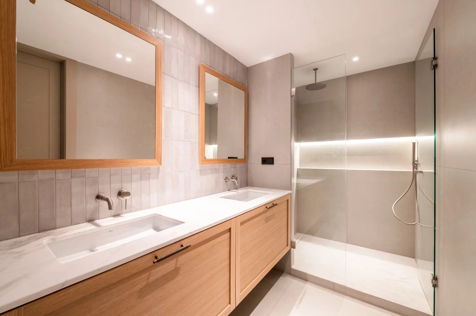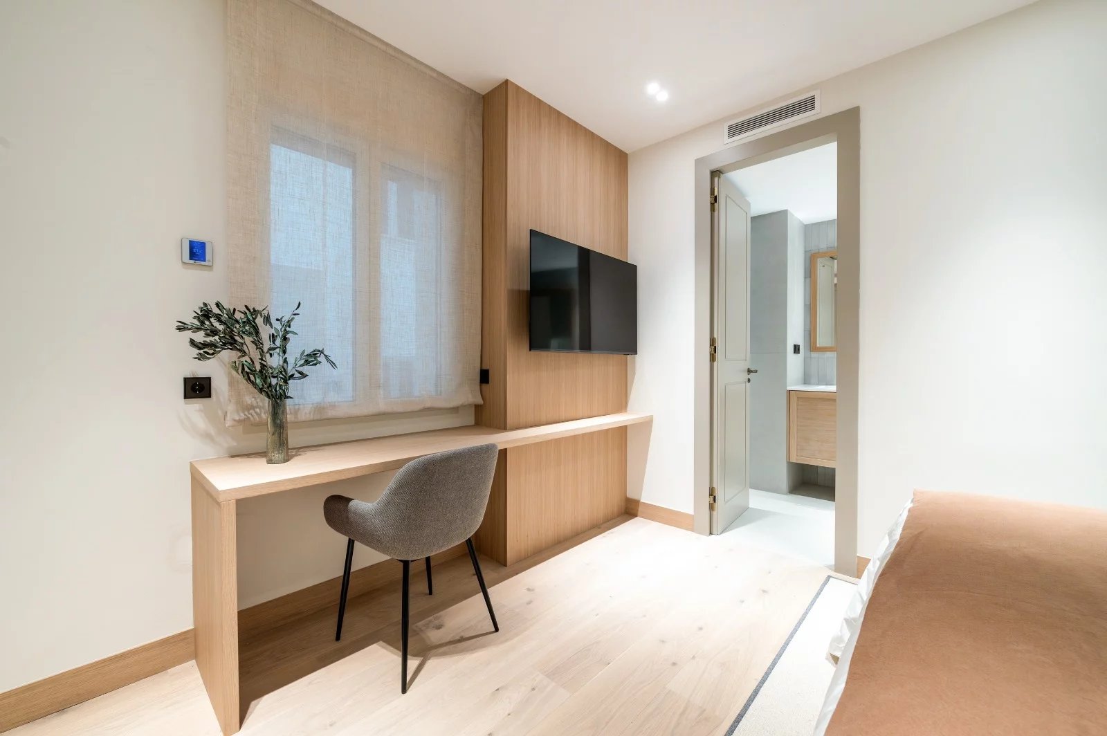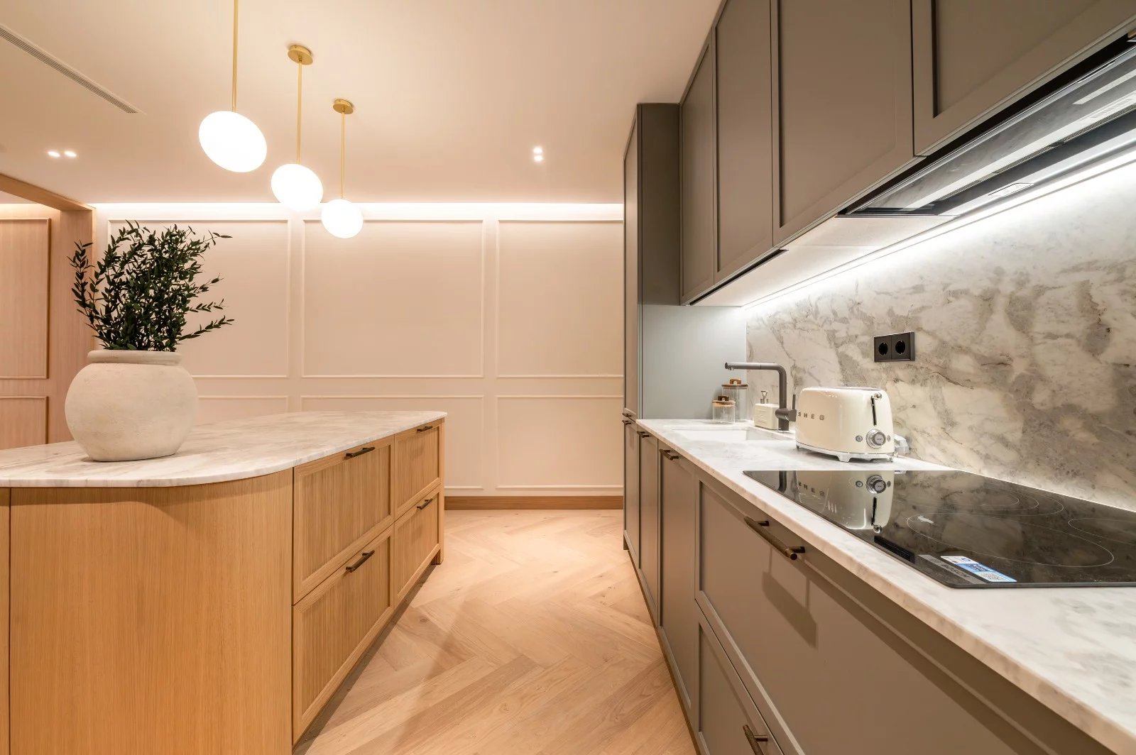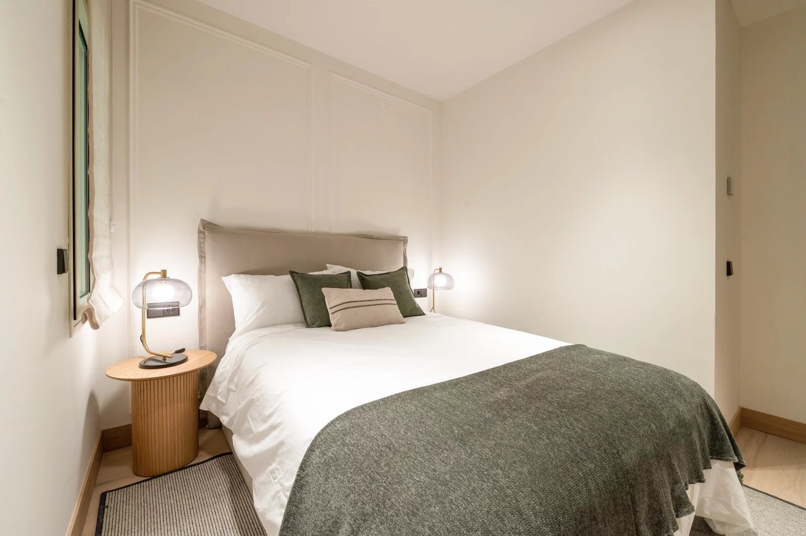 Appartement de 167 m² entièrement rénové avec une qualité exceptionnelle, situé au premier étage élevé, côté rue, d'un immeuble distingué du quartier de Salamanque. Le bien a été conçu avec une philosophie de vie moderne et sophistiquée, en accordant une attention particulière aux matériaux, à la lumière et à la fonctionnalité de chaque espace. Il comprend trois chambres en suite, chacune avec sa propre salle de bain privée, ainsi qu'un WC visiteurs. La chambre principale se distingue par son élégant dressing intégré, transformant la zone de repos en un véritable espace de bien-être. La zone de vie, composée d'un lumineux salon-salle à manger orienté sur la rue, est complétée par une cuisine design ouverte, équipée d'un îlot central en bois naturel et d'un plan de travail en marbre — des finitions qui associent l'esthétique contemporaine à la chaleur des matériaux naturels. Le parquet en chevrons, l'éclairage indirect périphérique et la menuiserie laquée sur mesure confèrent à l'ensemble une élégance sobre et intemporelle. L'appartement dispose également de la climatisation, du double vitrage, de volets électriques et d'un visiophone.