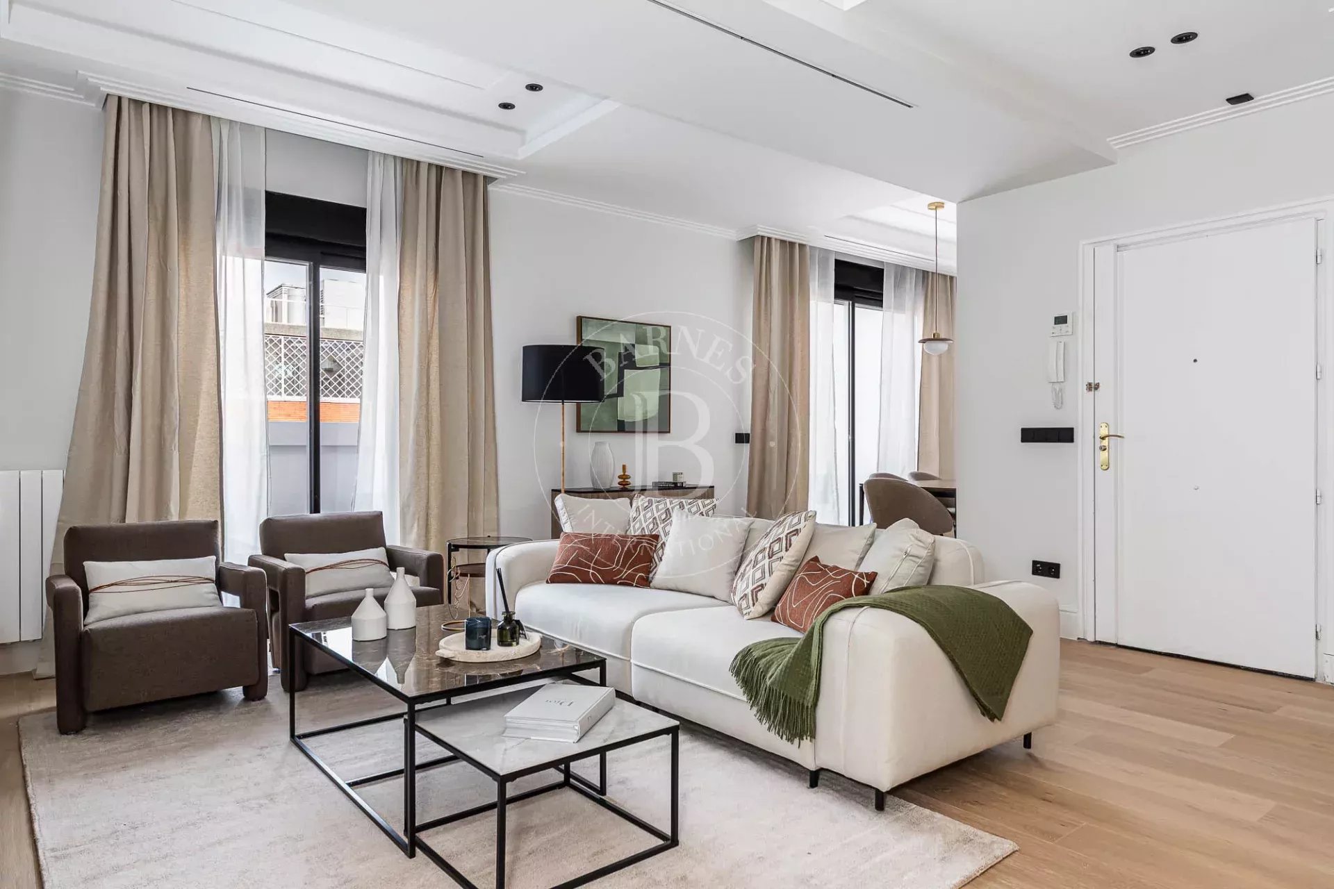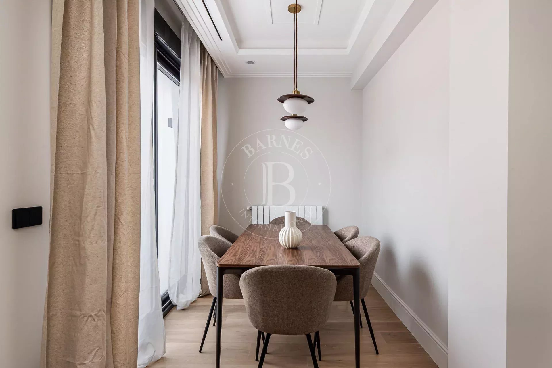 BARNES Madrid présente ce superbe penthouse avec terrasse, entièrement rénové, meublé et équipé, situé au sixième étage d’un élégant immeuble du prestigieux quartier d’Almagro, dans le district de Chamberí.