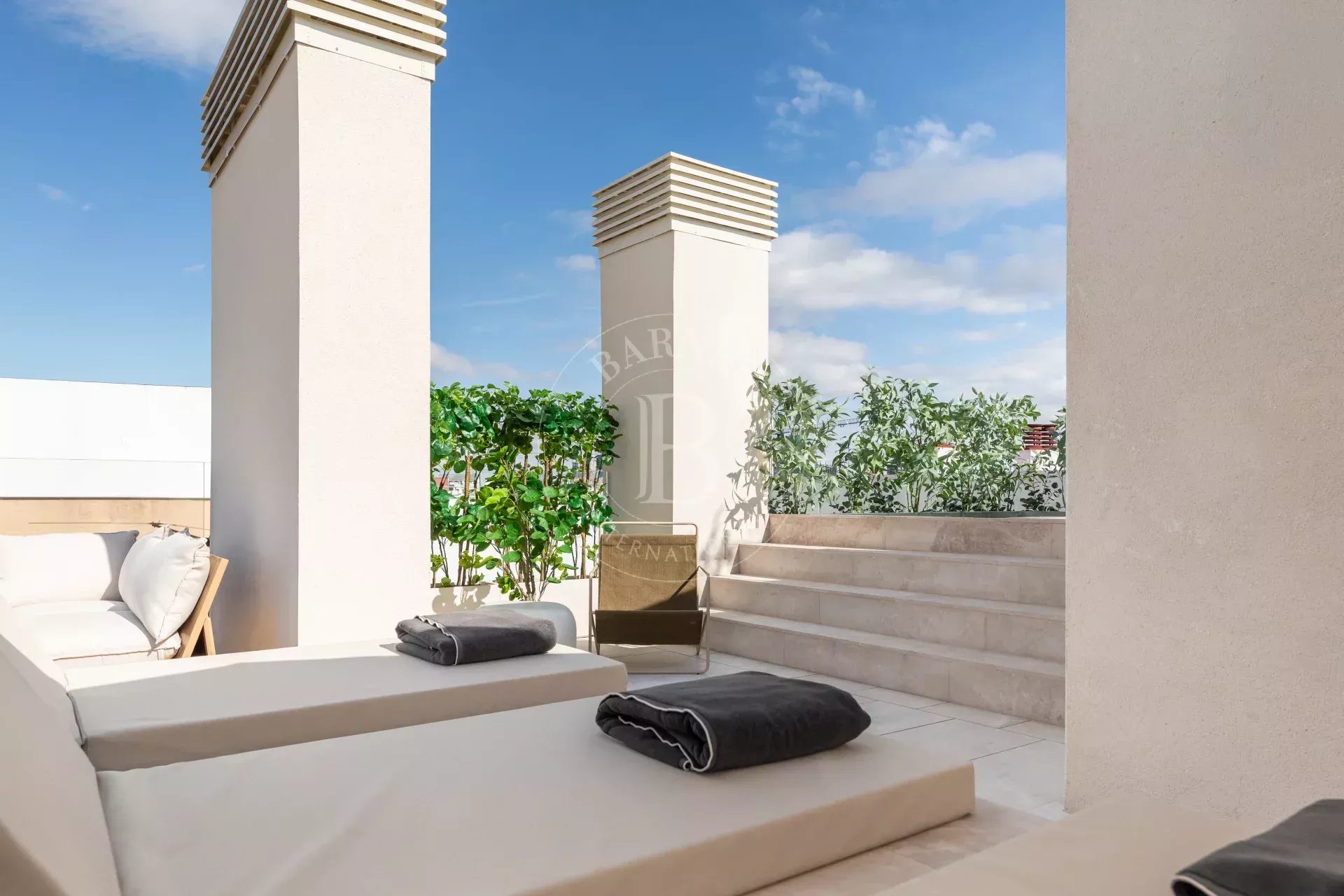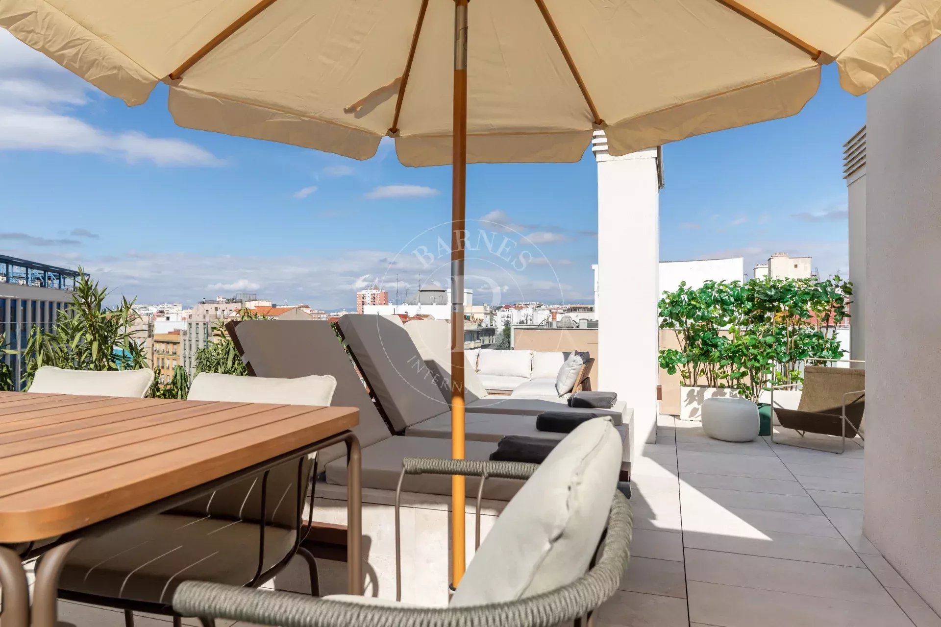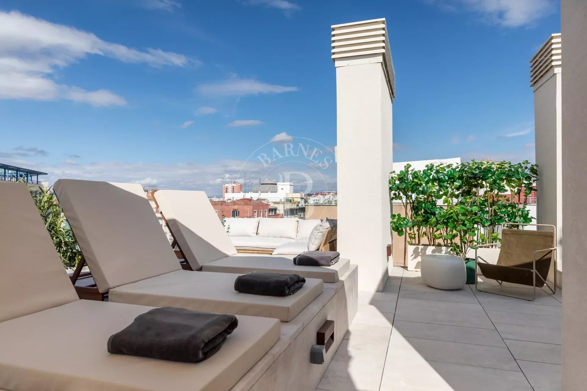 BARNES Madrid vend ce penthouse duplex neuf et exclusif de 175 m² avec piscine privée et deux terrasses, situé dans le district de Chamberí, dans le quartier prisé d’Almagro.