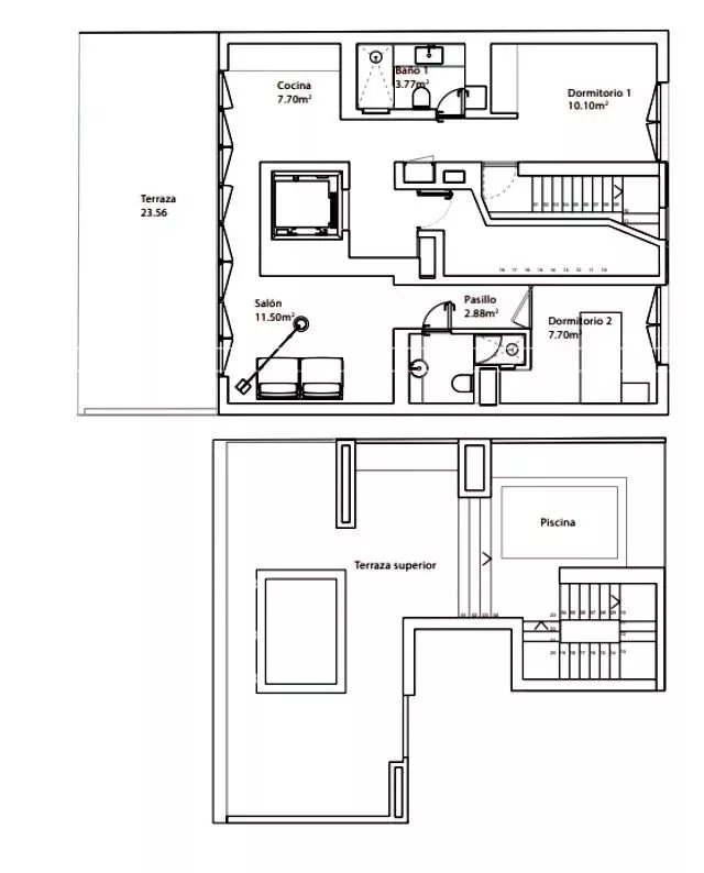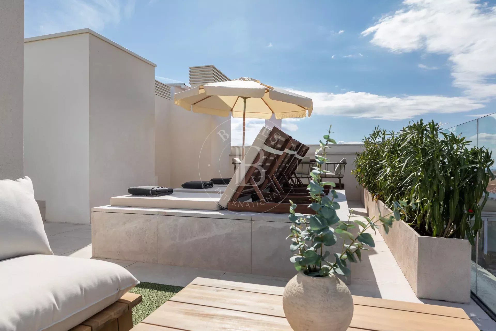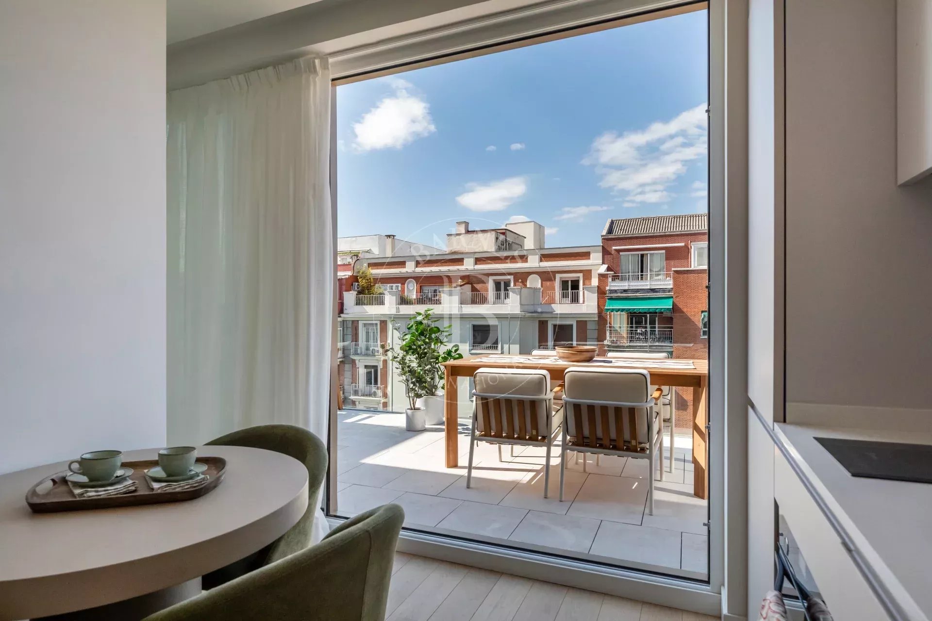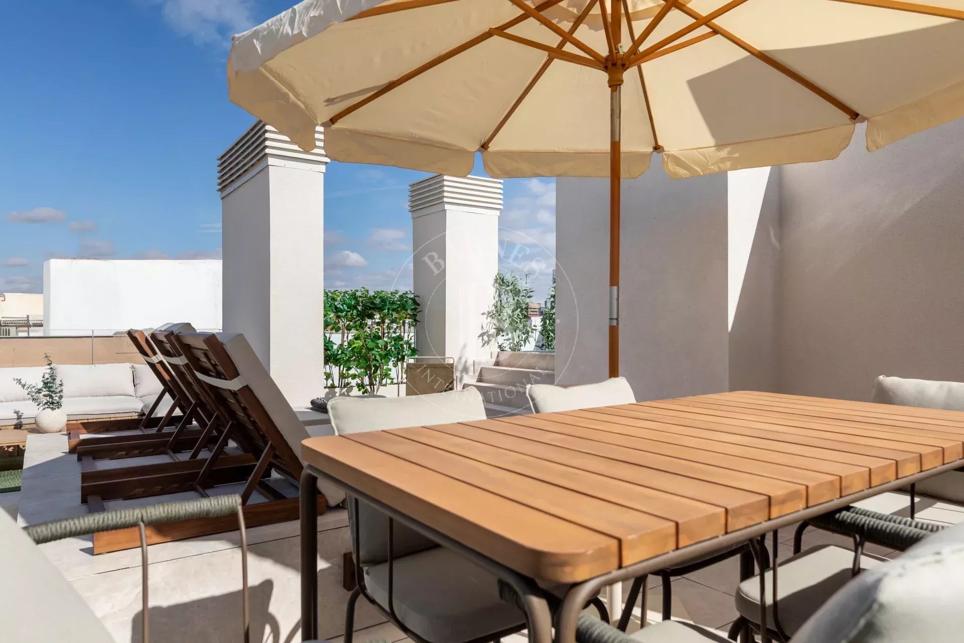 BARNES Madrid vend ce penthouse duplex neuf et exclusif de 175 m² avec piscine privée et deux terrasses, situé dans le district de Chamberí, dans le quartier prisé d’Almagro.