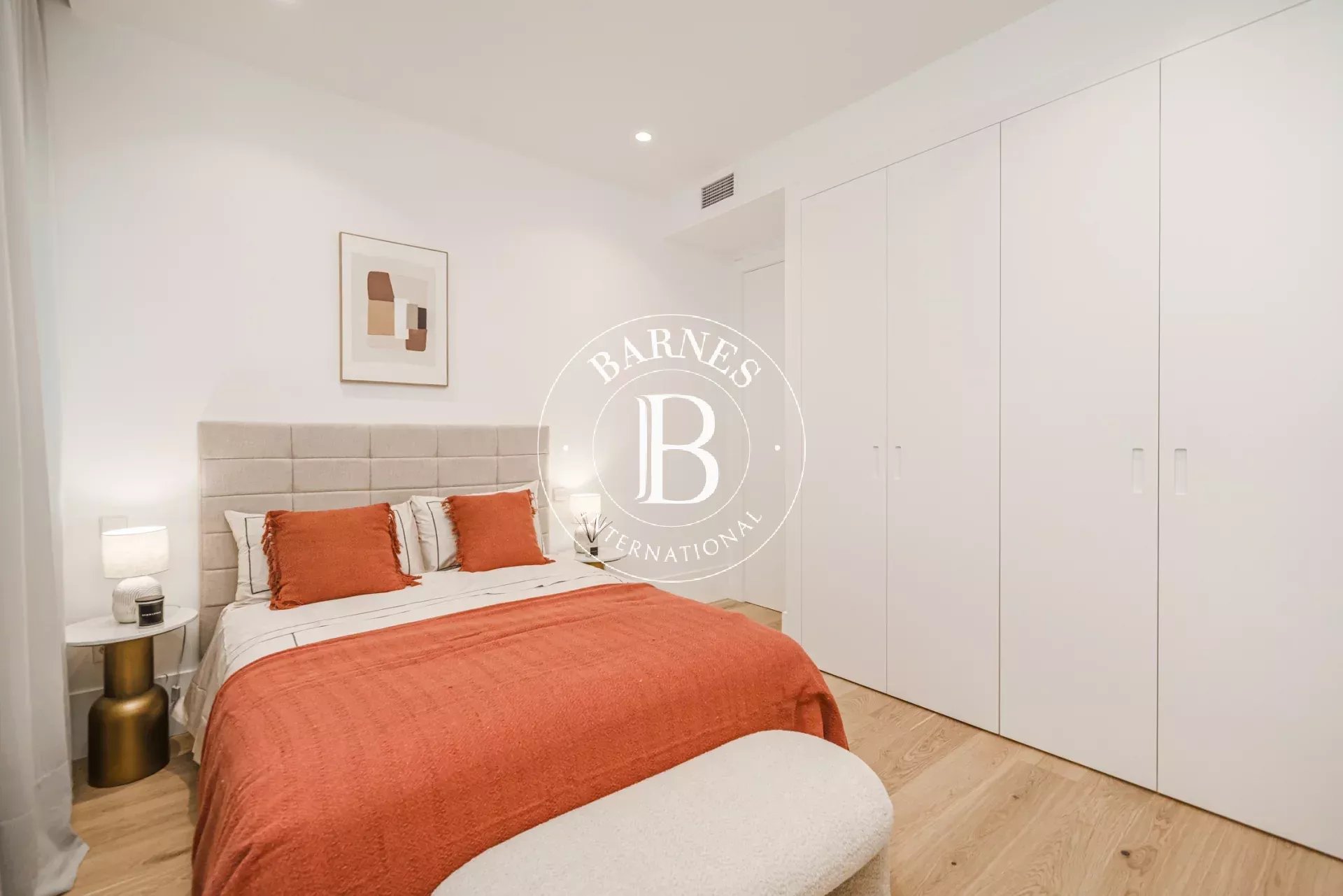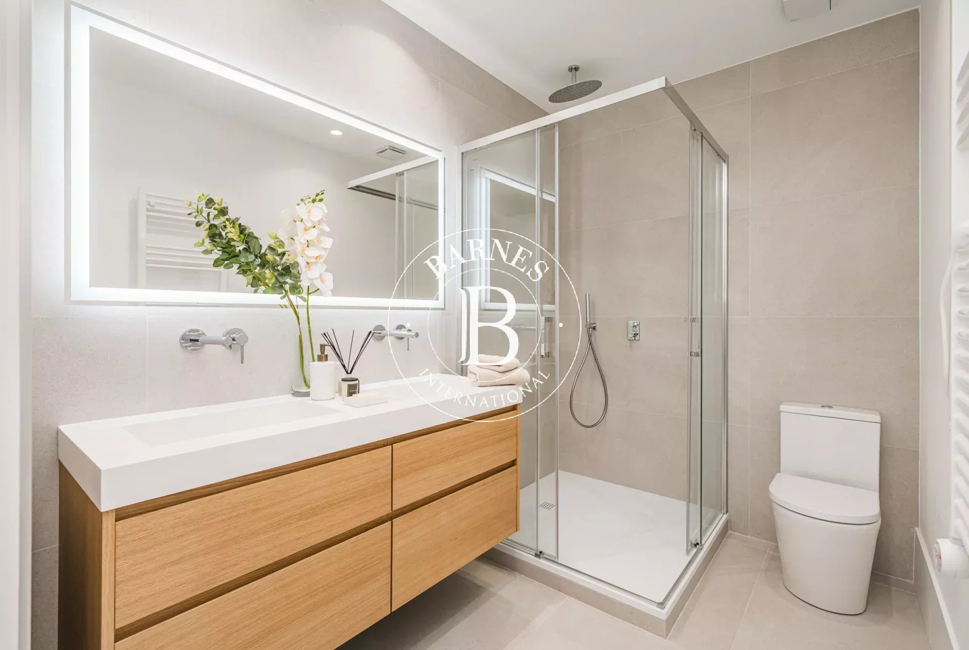 L’appartement dispose de trois grandes chambres, dont deux avec salle de bain en suite, assurant un haut niveau d’intimité. Chaque pièce a été pensée avec soin, utilisant des matériaux de qualité qui apportent chaleur et raffinement.