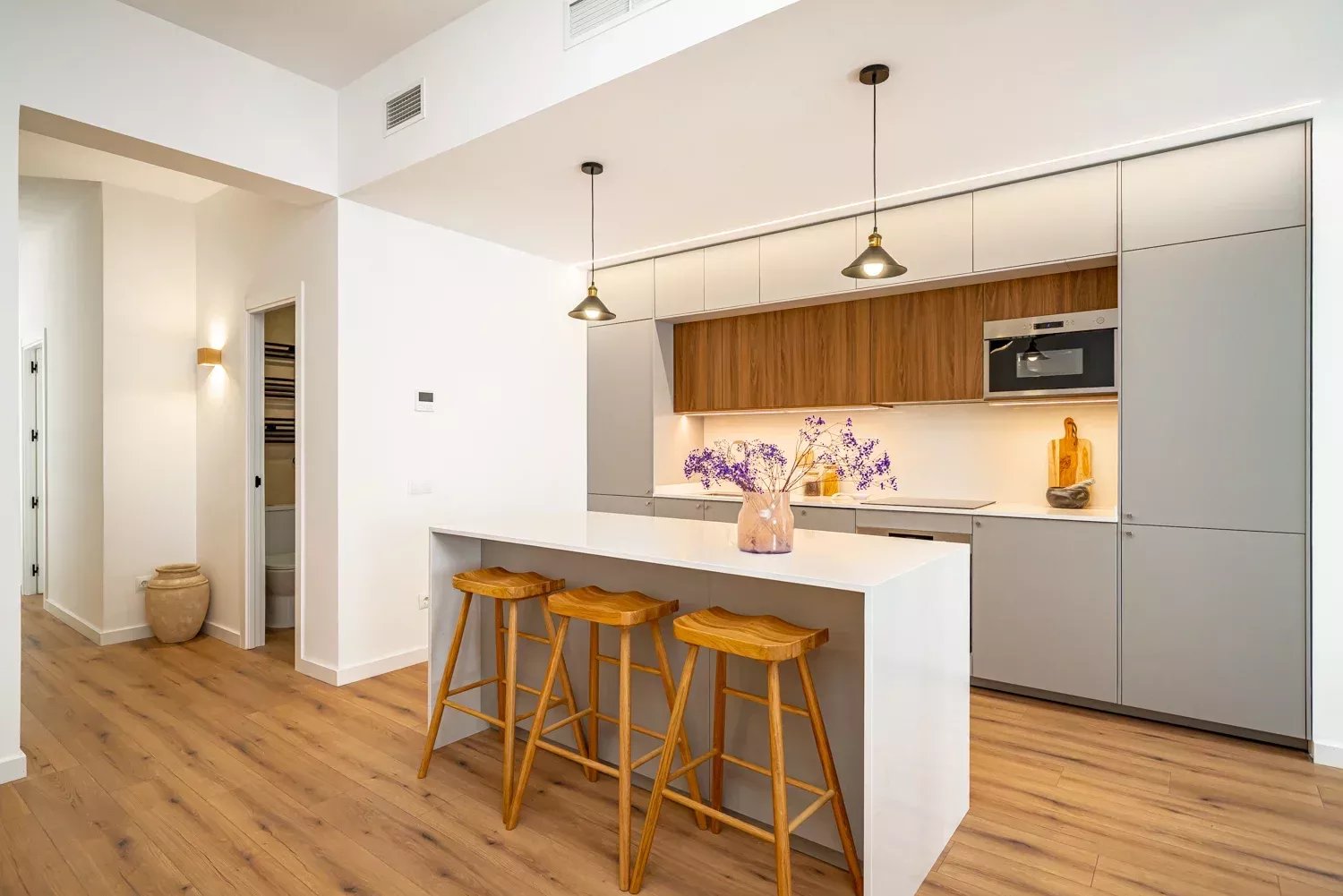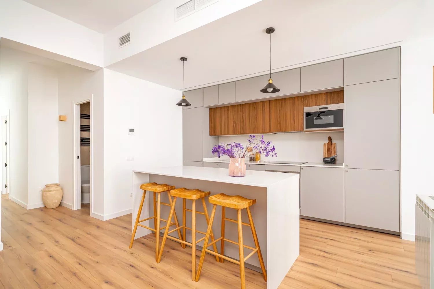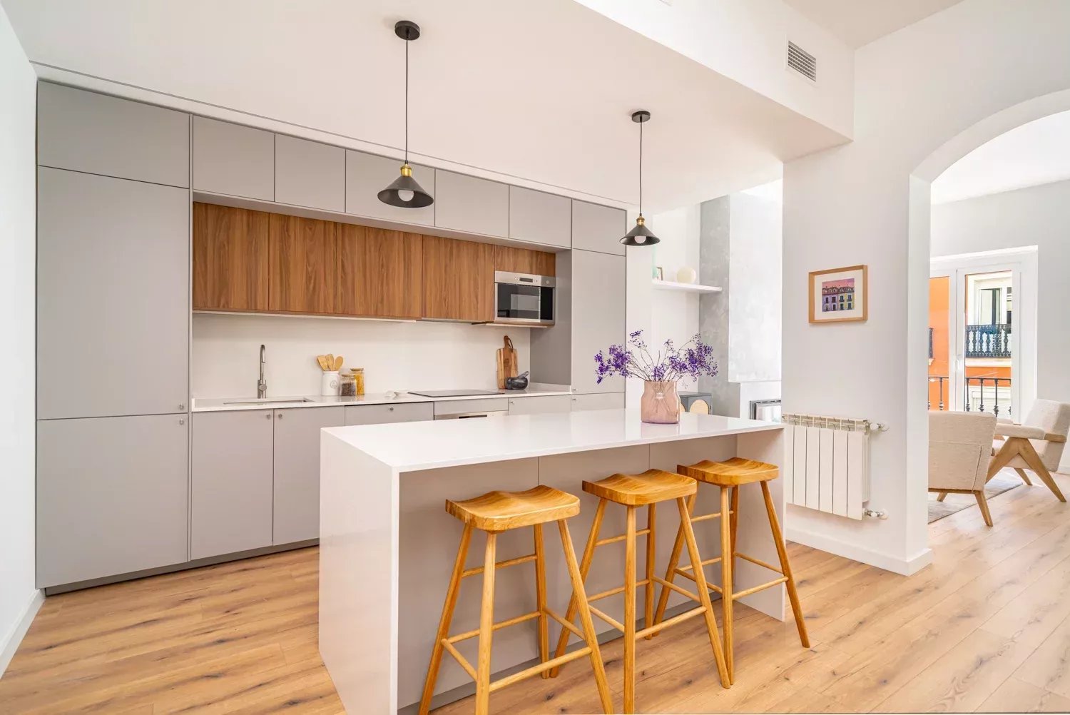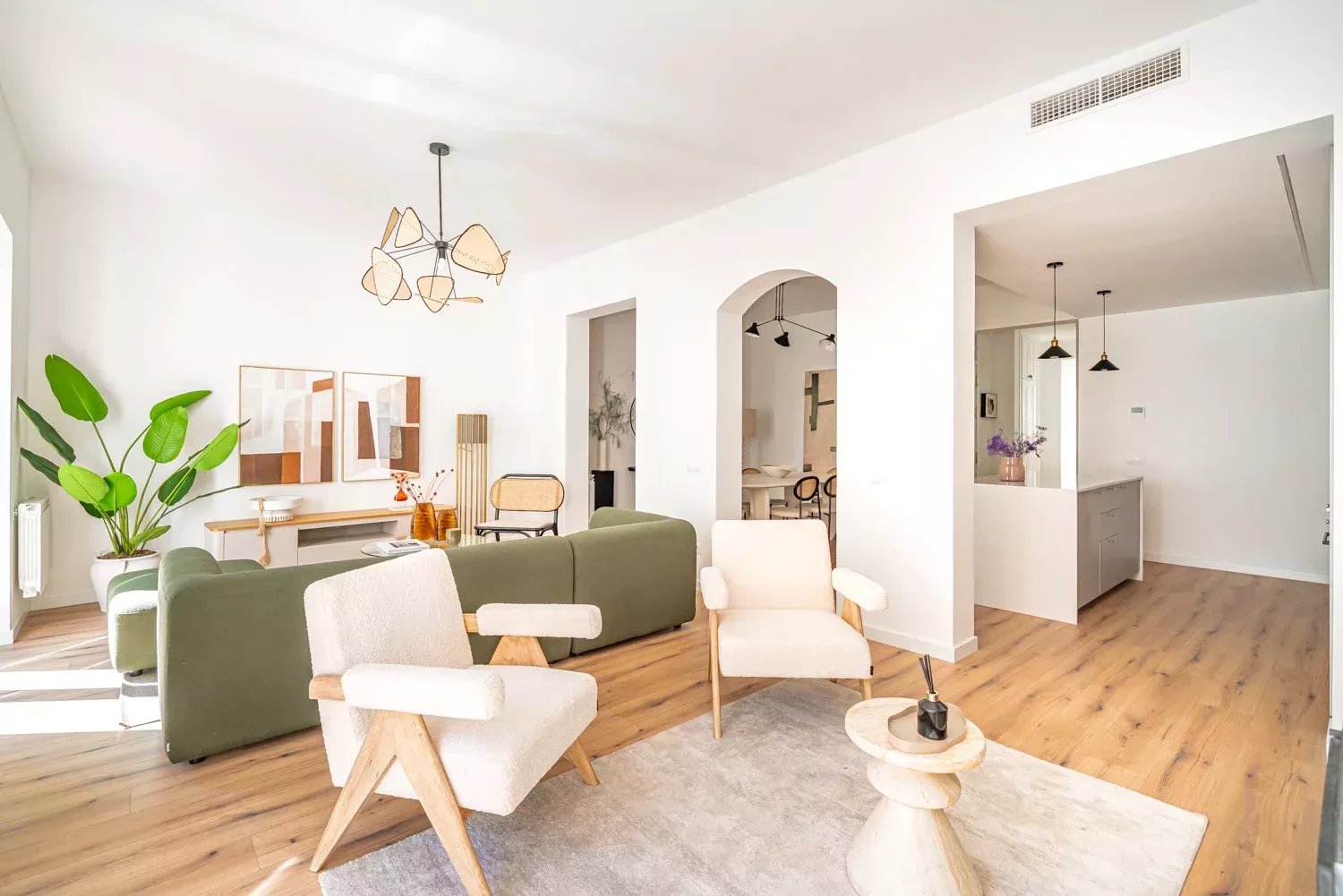 Situé au troisième étage d'un immeuble classique rénové, le bien se distingue par son élégance et la luminosité apportée par ses deux balcons donnant sur la rue. L'appartement a été rénové avec des matériaux de première qualité, en soignant chaque détail pour garantir fonctionnalité et confort. Il dispose d'un grand salon avec une cuisine design intégrée, de quatre chambres aux dimensions généreuses, de quatre salles de bains complètes en suite et d'un WC supplémentaire, ce qui lui confère une grande indépendance et un grand confort. La climatisation par conduits et les menuiseries haut de gamme garantissent une excellente performance énergétique et une atmosphère confortable tout au long de l'année.