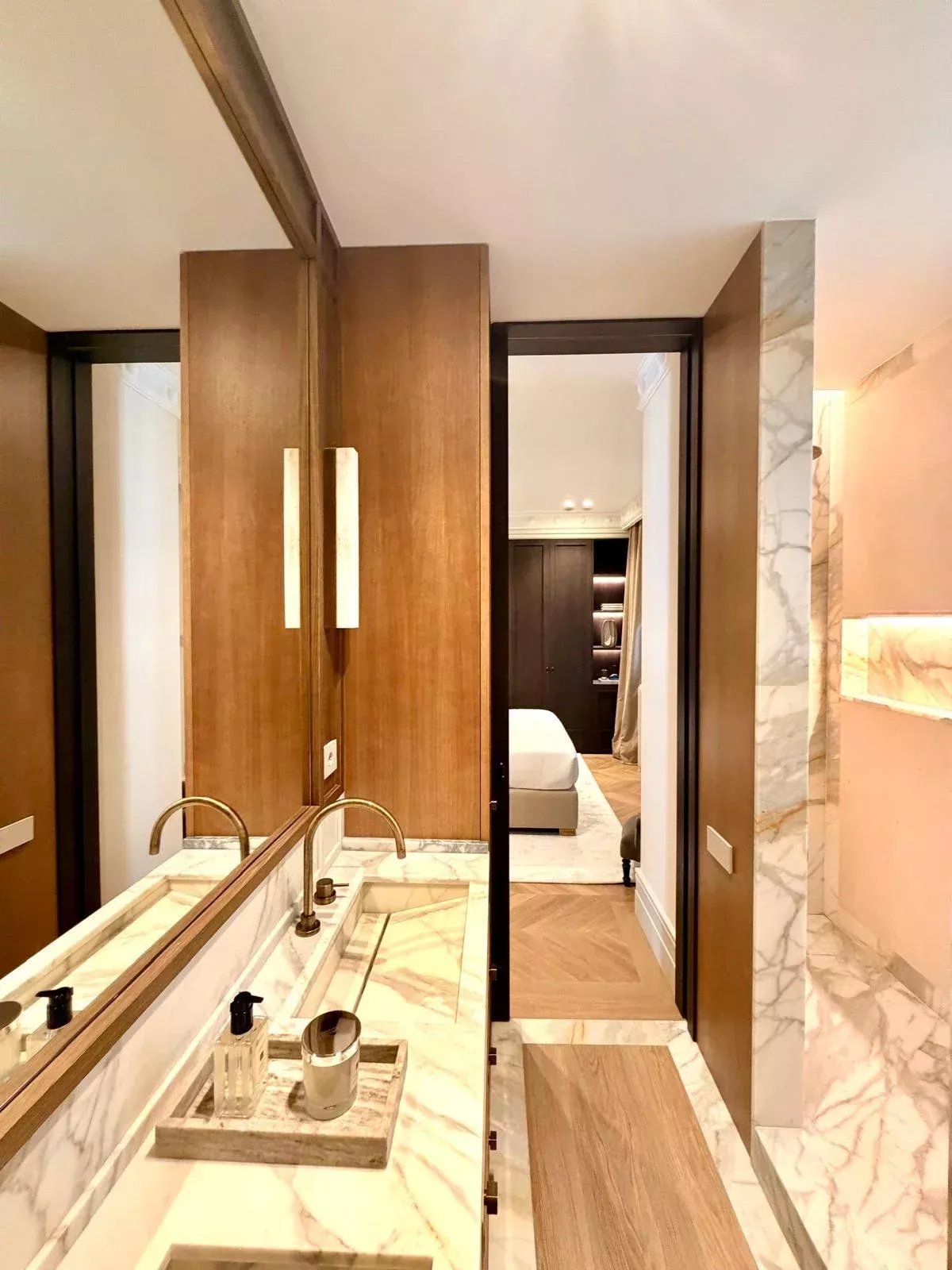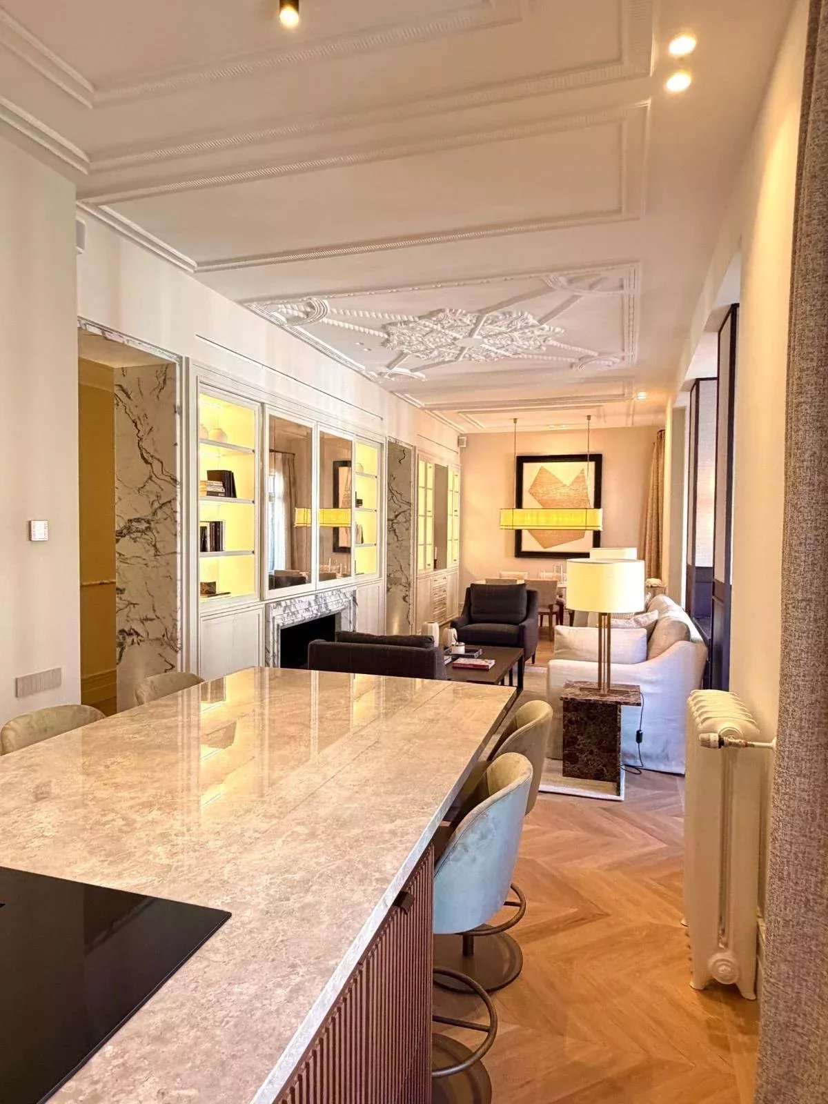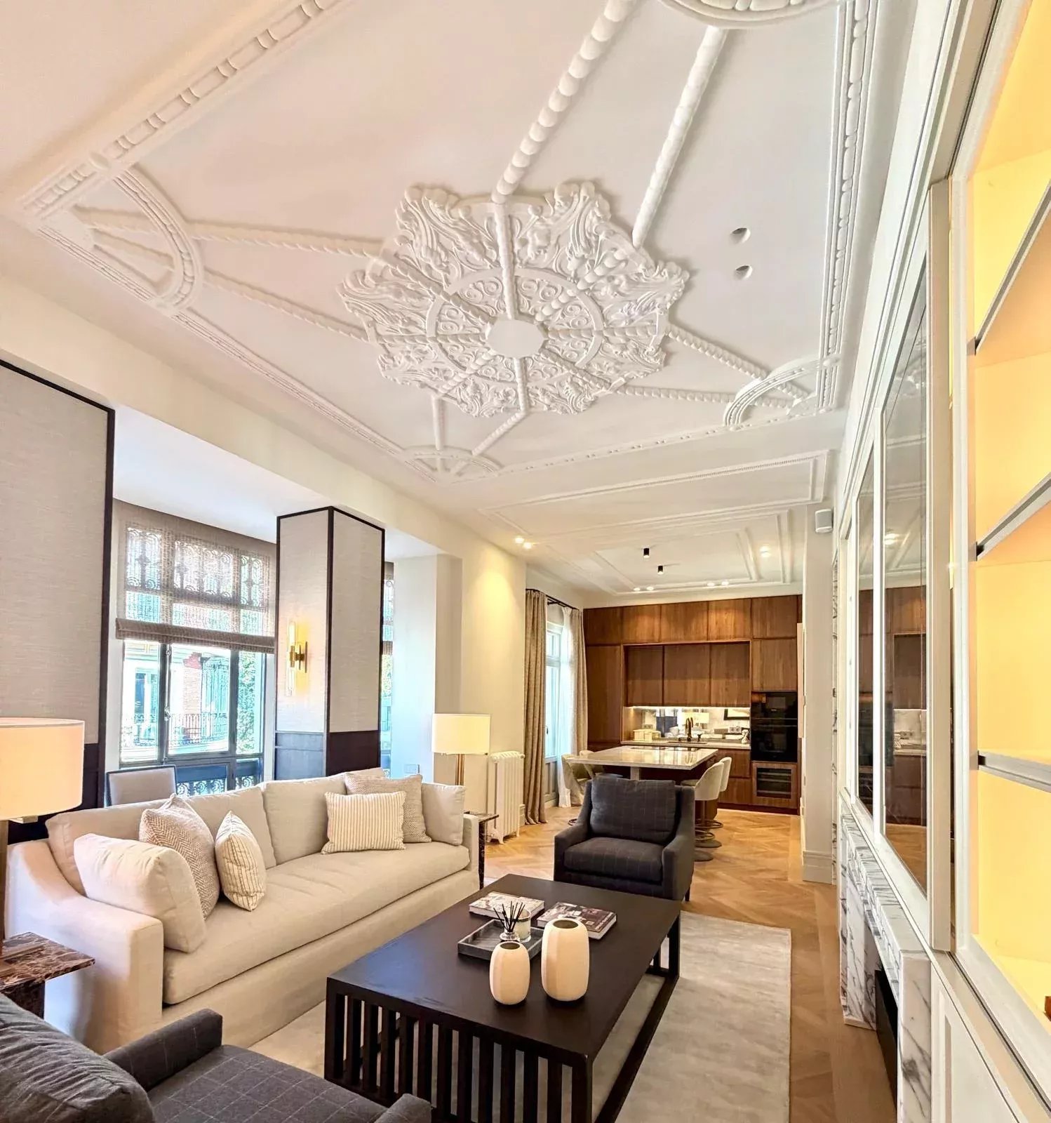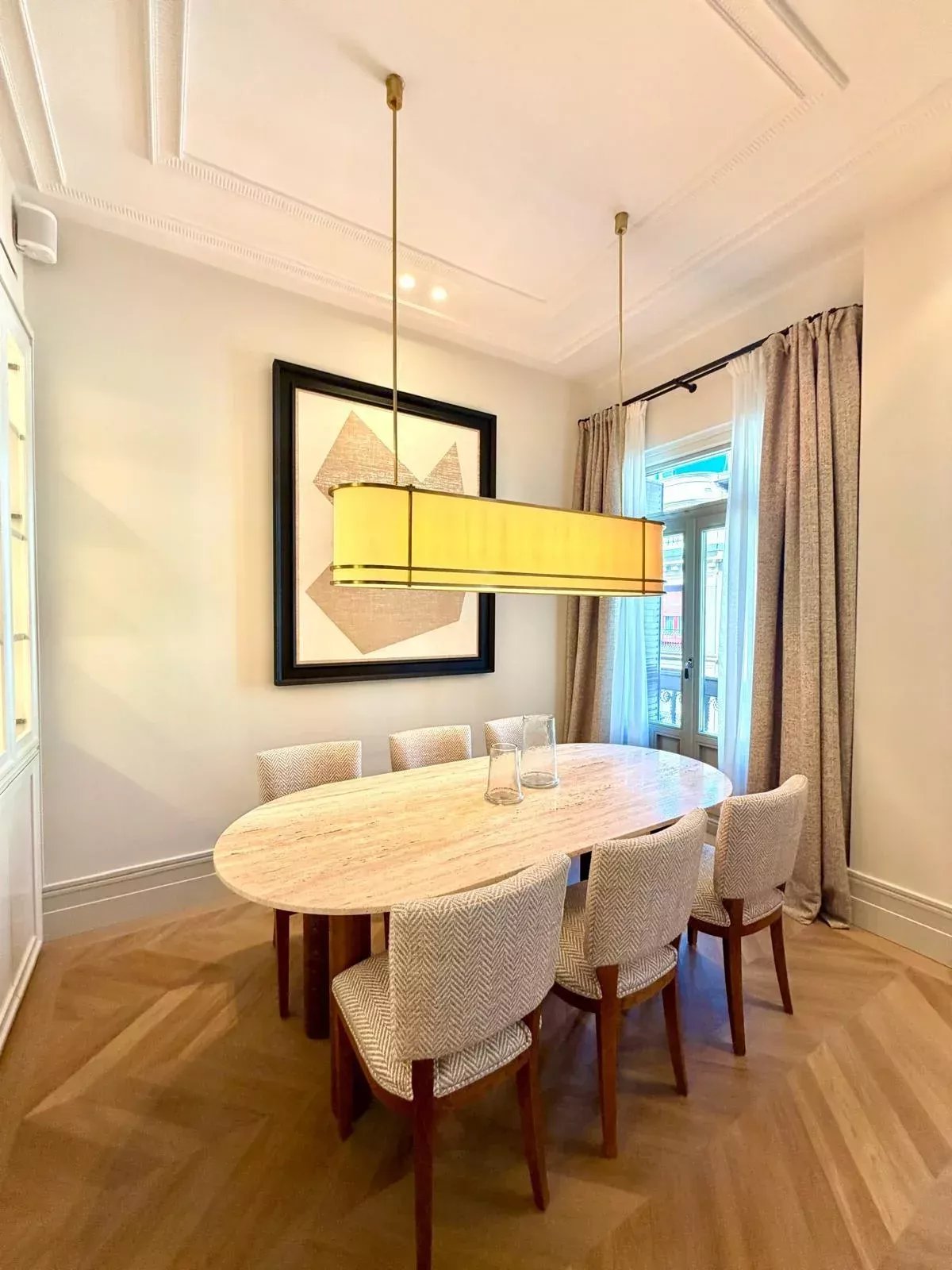 À un étage élevé d’un immeuble représentatif de style classique madrilène, se présente cet appartement à Recoletos, entièrement rénové et meublé avec des finitions premium. Le projet d’intérieur soigne chaque détail et marie une élégance contemporaine au caractère noble de l’immeuble—une proposition très appréciée dans l’immobilier de luxe à Madrid.