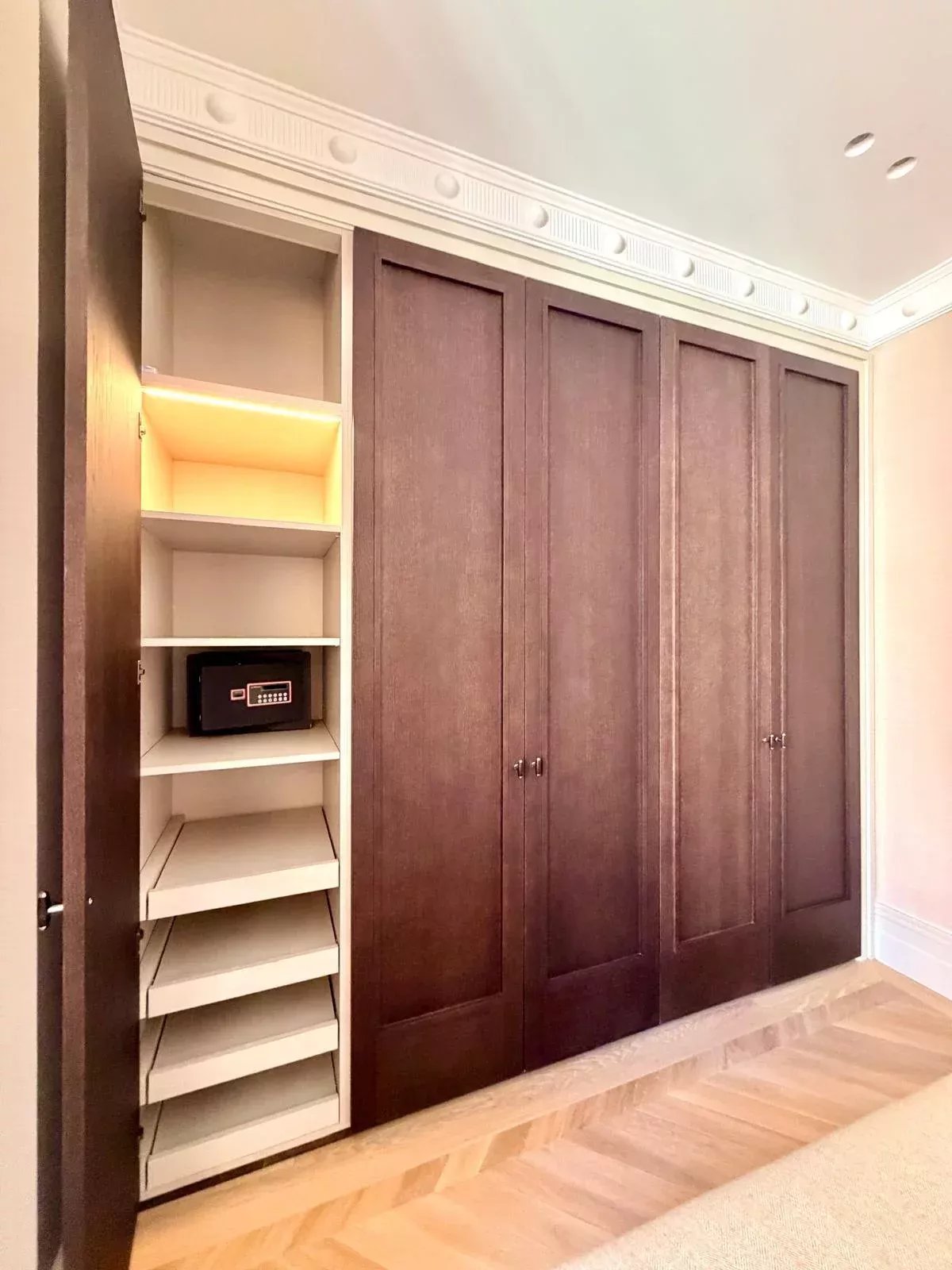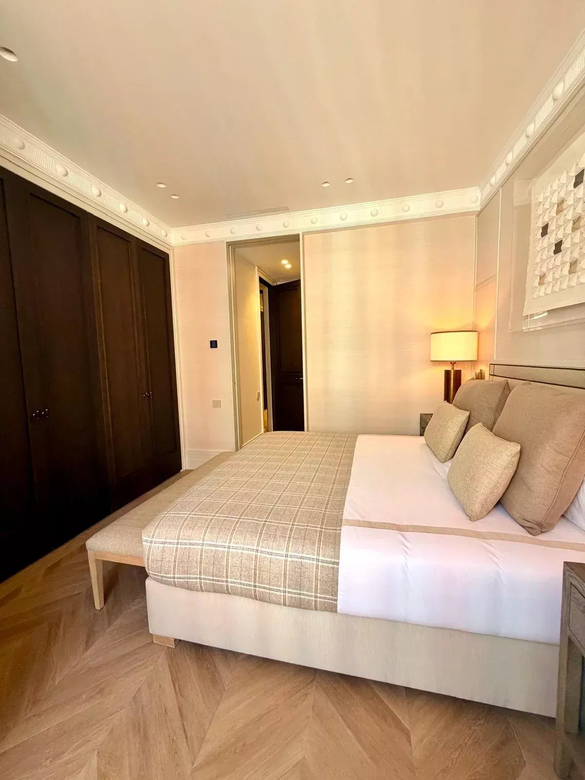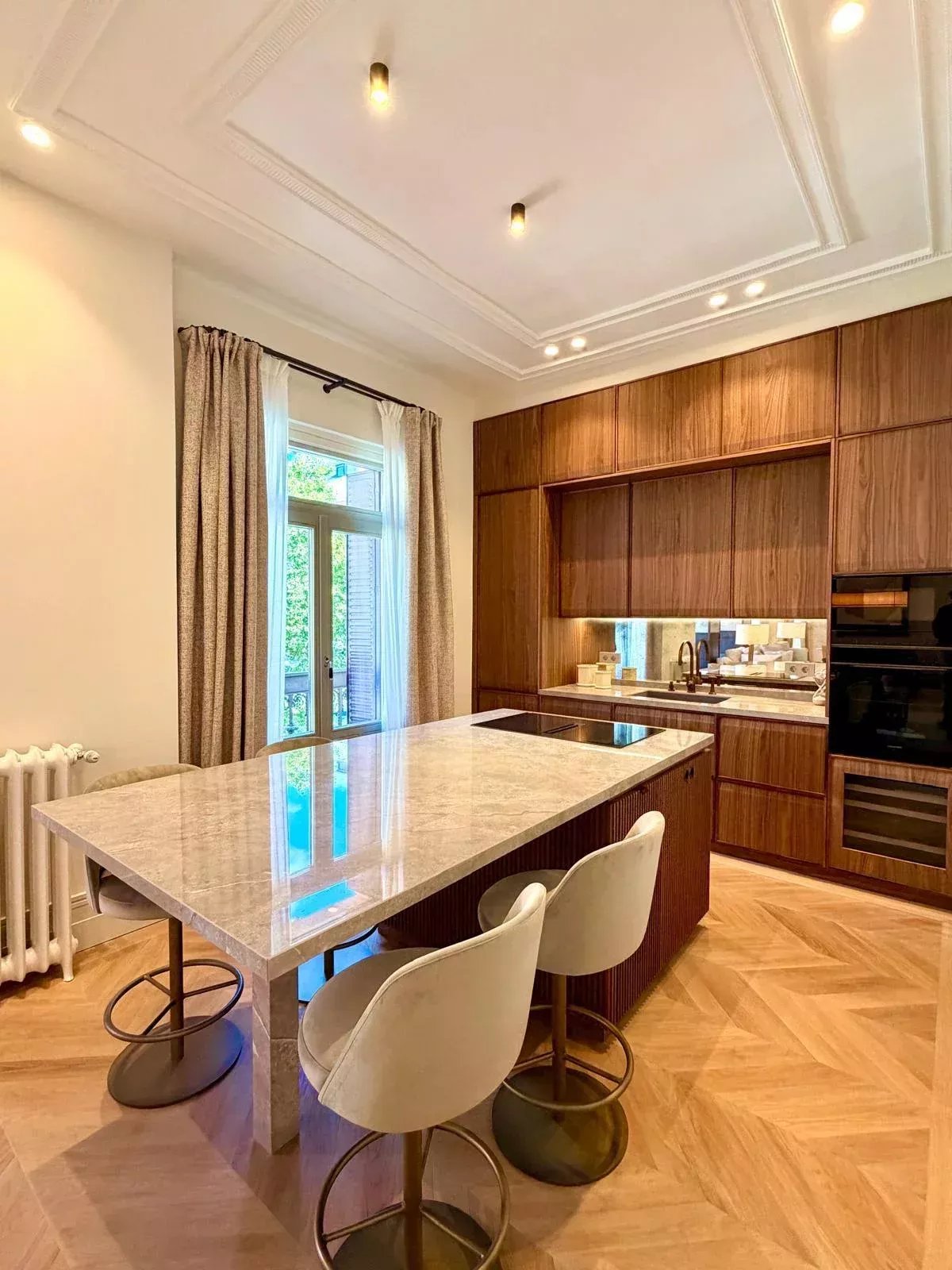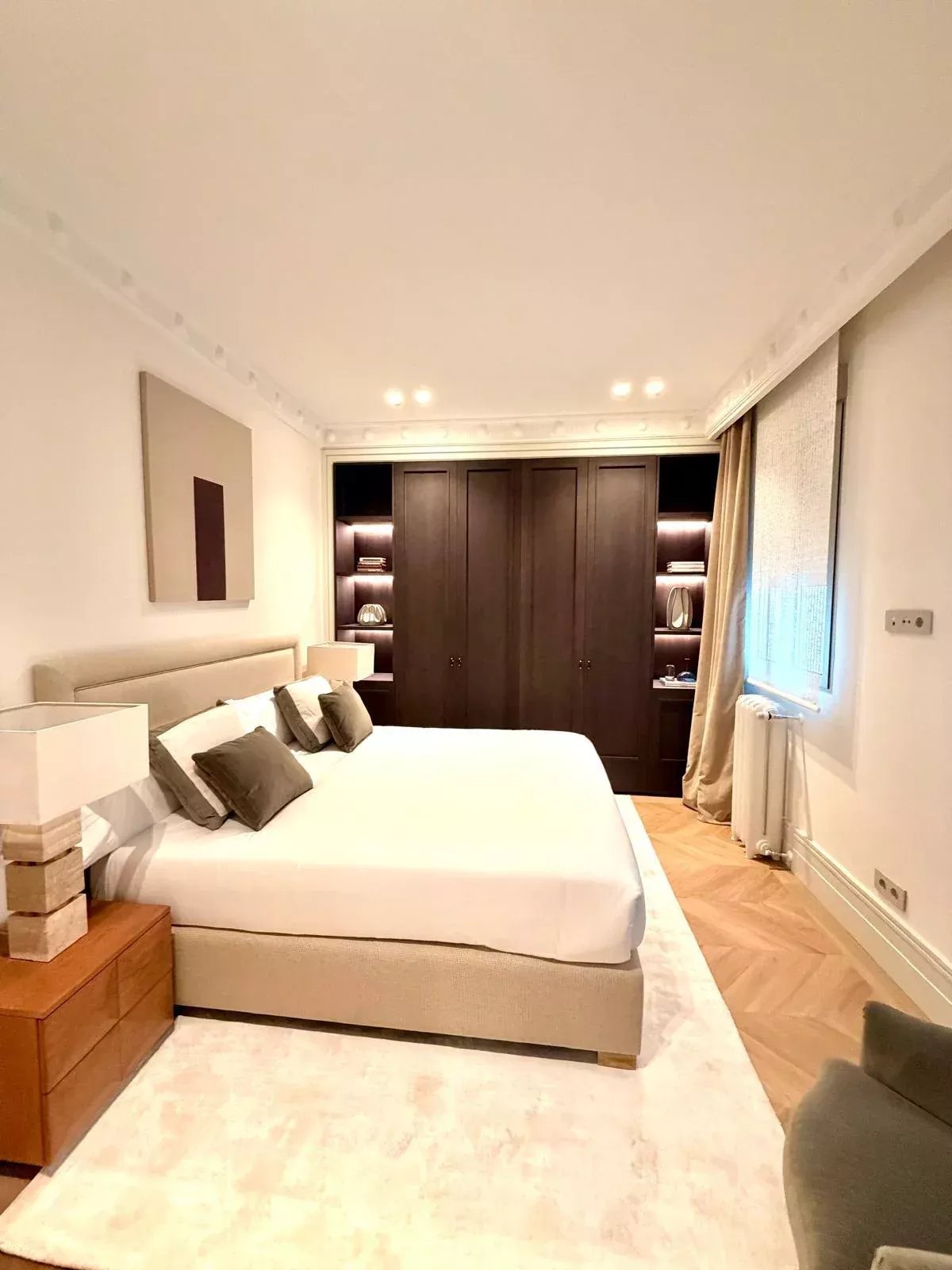 La distribution comprend trois grandes suites, chacune avec salle de bains privée et placards intégrés, ainsi qu’un WC invités. La cuisine ouverte s’intègre à l’espace de vie pour créer un ensemble lumineux et sophistiqué, parfait au quotidien comme pour recevoir. Cette configuration répond aux attentes de nombreux acquéreurs d’appartements de luxe à Madrid : design, fonctionnalité et confort à une adresse prime.