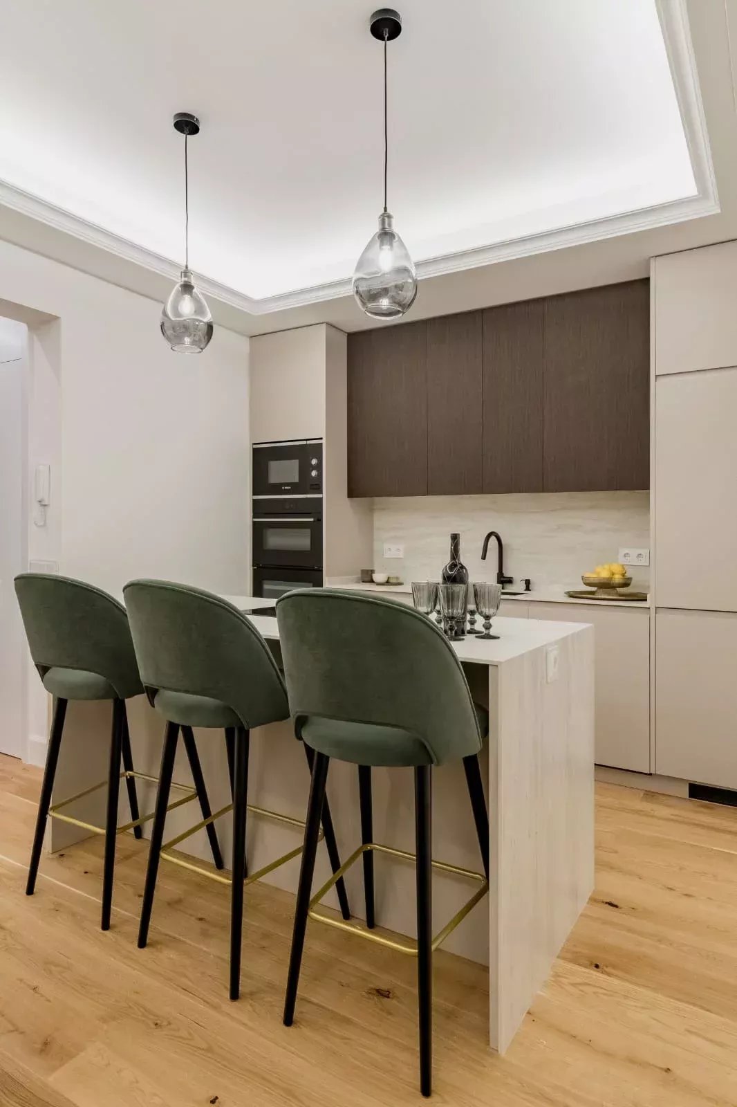 La rénovation a été réalisée avec des matériaux et des finitions haut de gamme. Elle comprend des appareils électroménagers intégrés haut de gamme, une climatisation canalisée avec Airzone, un chauffage individuel avec chaudière à gaz et des radiateurs de dernière génération. Des carreaux muraux en céramique rectifiée haut de gamme, des sanitaires suspendus Roca et un parquet en planches grand format apportent élégance et modernité.