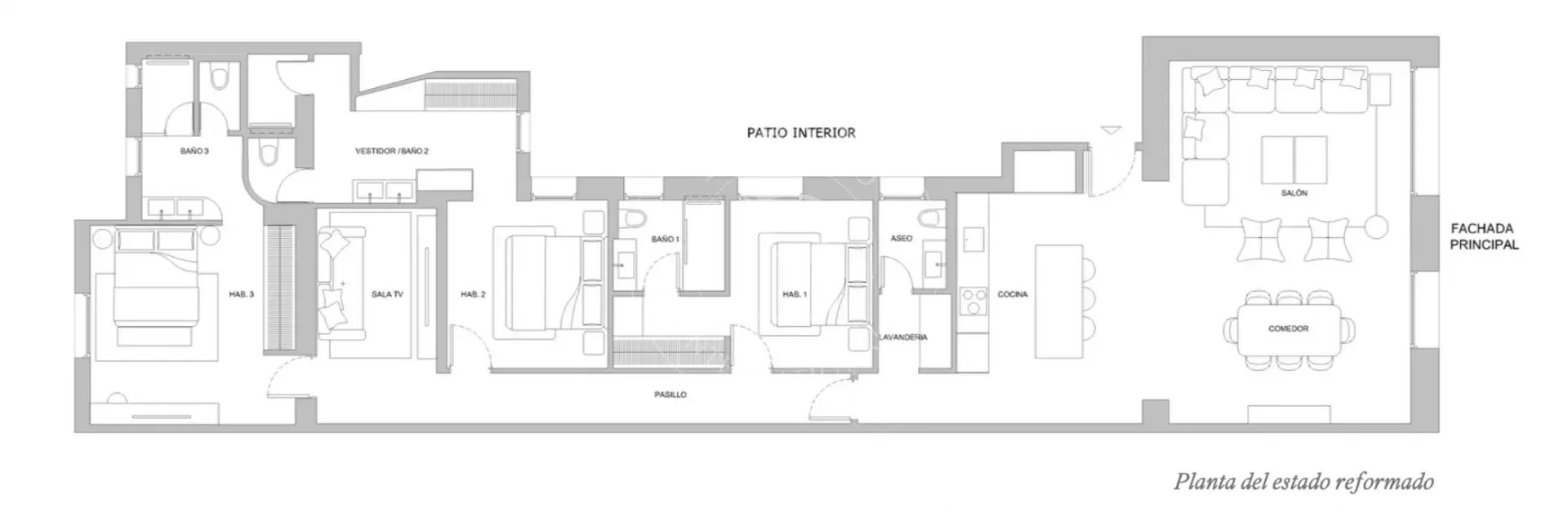 L'espace de vie se distingue par une vaste pièce ouverte qui intègre le salon, la salle à manger et une élégante cuisine ouverte équipée d'appareils électroménagers haut de gamme, créant un environnement moderne, fonctionnel et accueillant, idéal tant pour la vie quotidienne que pour recevoir des invités. L'espace nuit comprend trois chambres avec salle de bains attenante, conçues pour garantir un maximum de confort et d'intimité. De plus, la propriété disposera d'une agréable salle de télévision indépendante, de toilettes de courtoisie et d'un espace buanderie, apportant praticité et confort au quotidien. L'immeuble, de style classique et prestigieux, est équipé d'un ascenseur et présente d'excellentes qualités de construction.