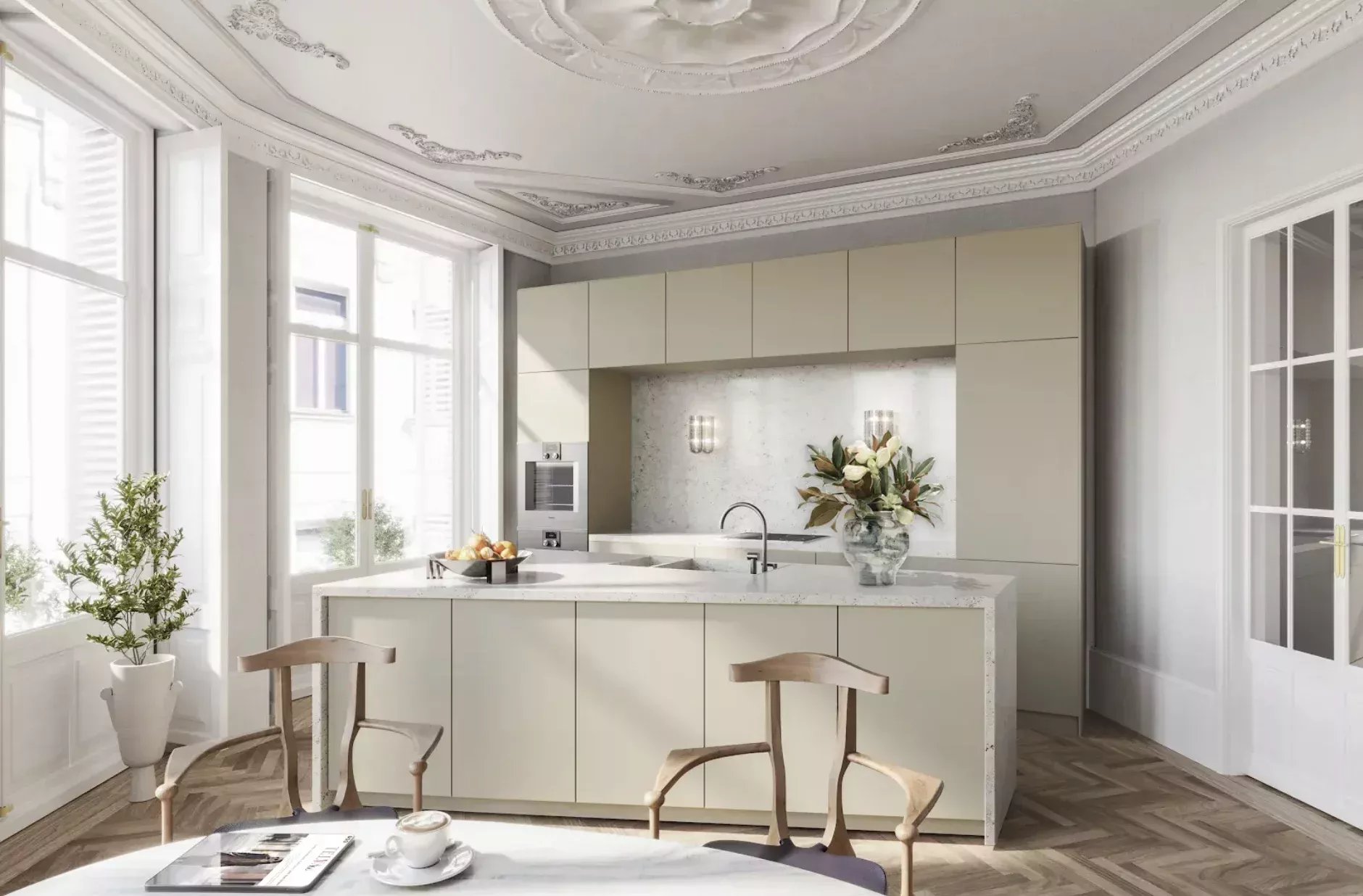 Ces résidences de luxe, conçues par le cabinet primé Studio Carter, séduisent par leur élégance intemporelle : parquet en chevrons, menuiserie traditionnelle, chauffage au sol et cuisines sur mesure équipées d’électroménagers Gaggenau.