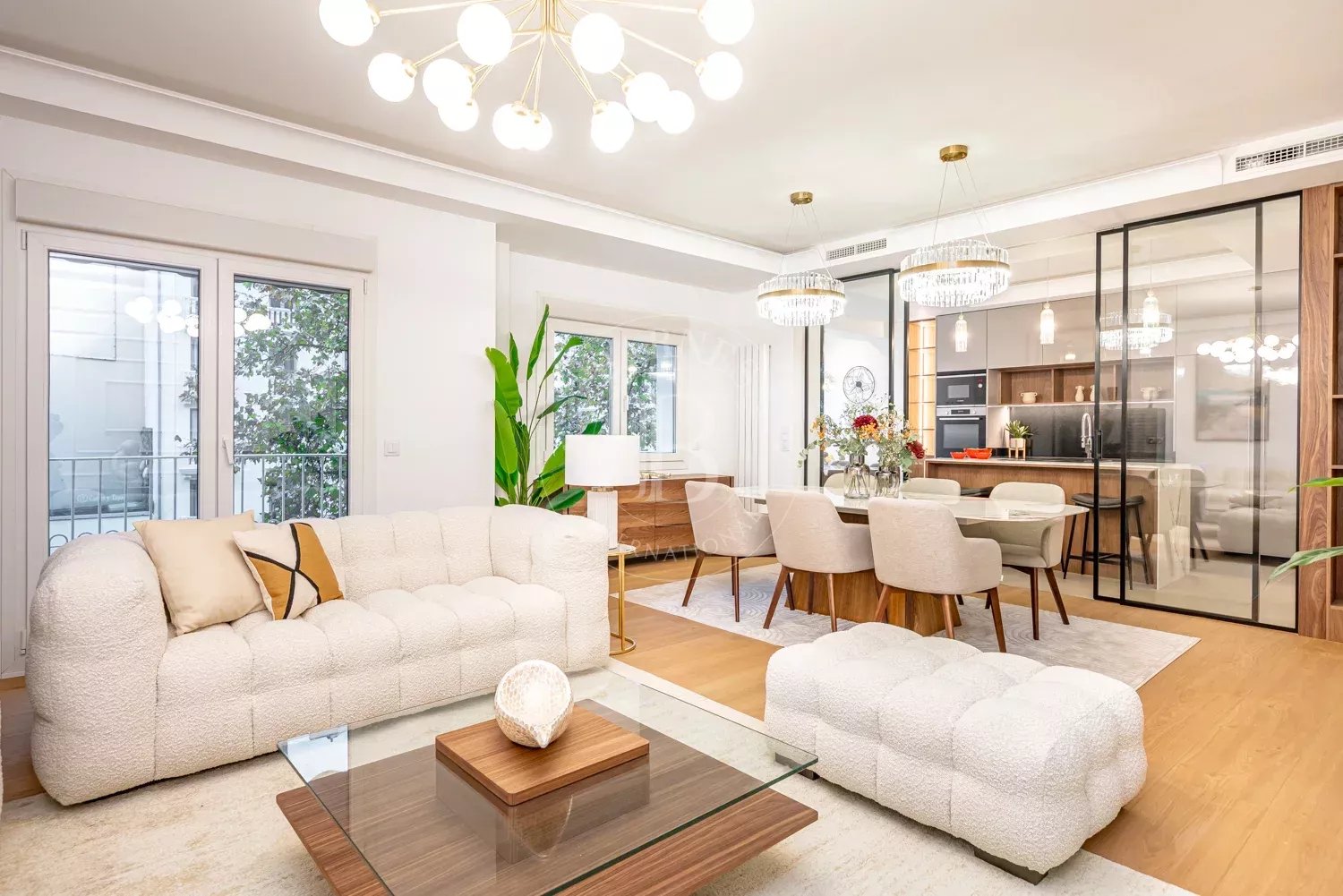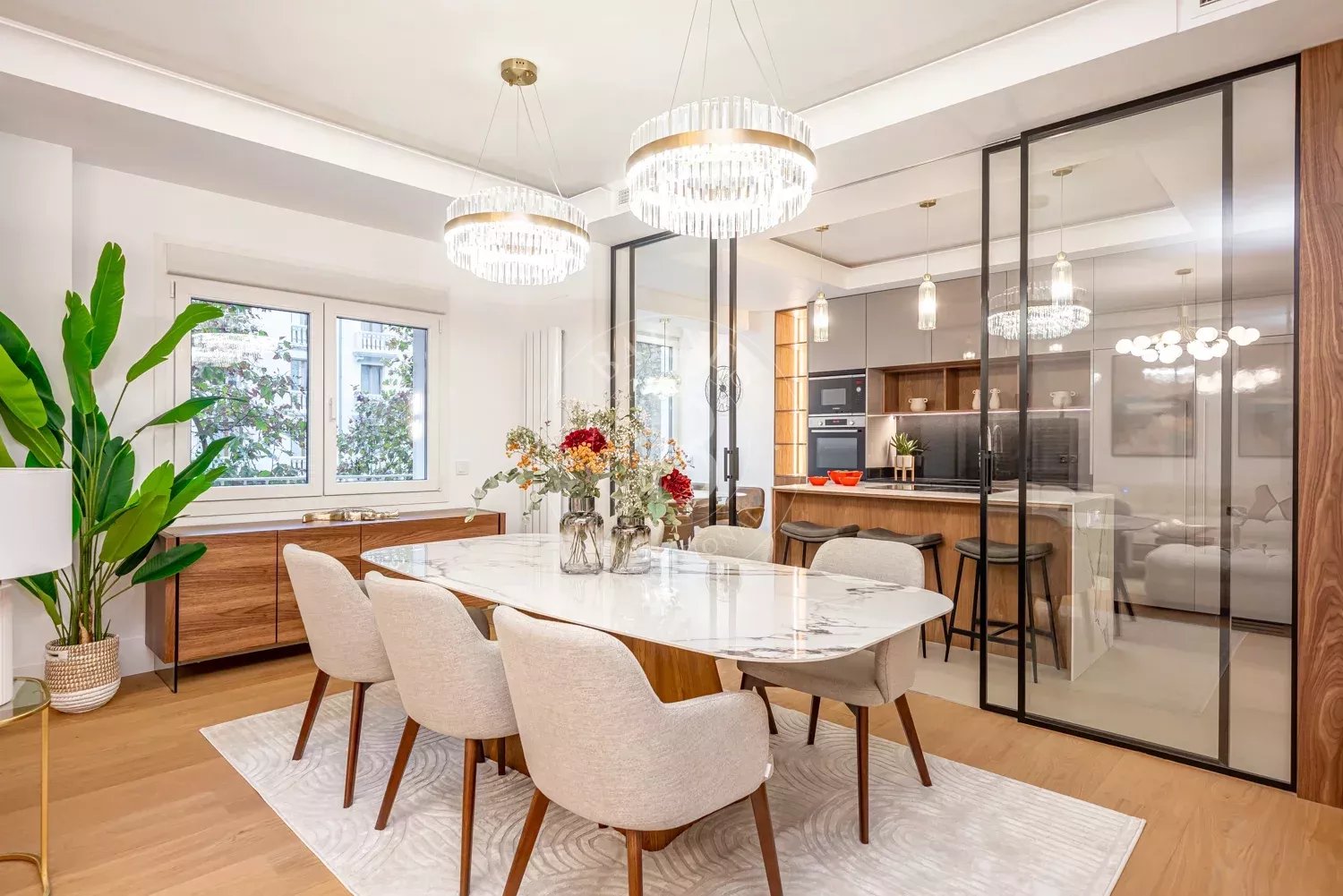 BARNES Madrid dévoile une résidence rare dans le très recherché quartier de Salamanca Goya : un appartement d’angle de 195 m² entièrement repensé, où les volumes classiques rencontrent une rénovation contemporaine subtile et lumineuse. Situé au deuxième étage noble d’un immeuble des années 50, sur la prestigieuse Calle de Alcalá, ce bien unique offre 3 suites avec salles de bains privatives, 4 salles d’eau au total, et une combinaison précieuse d’espace, de lumière naturelle et de design maîtrisé.