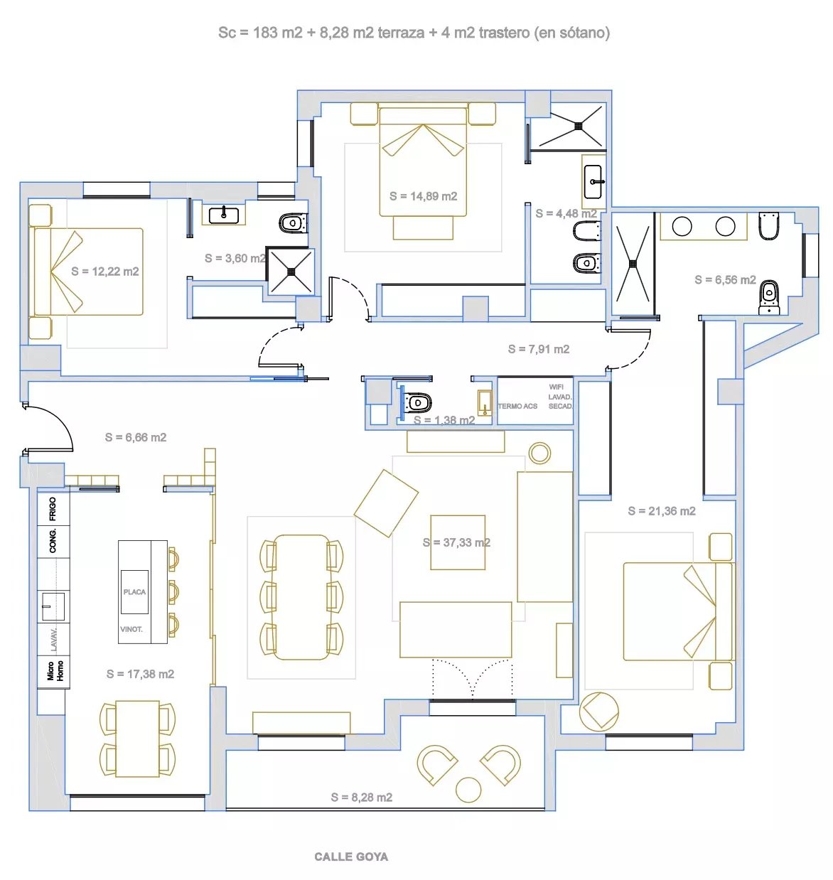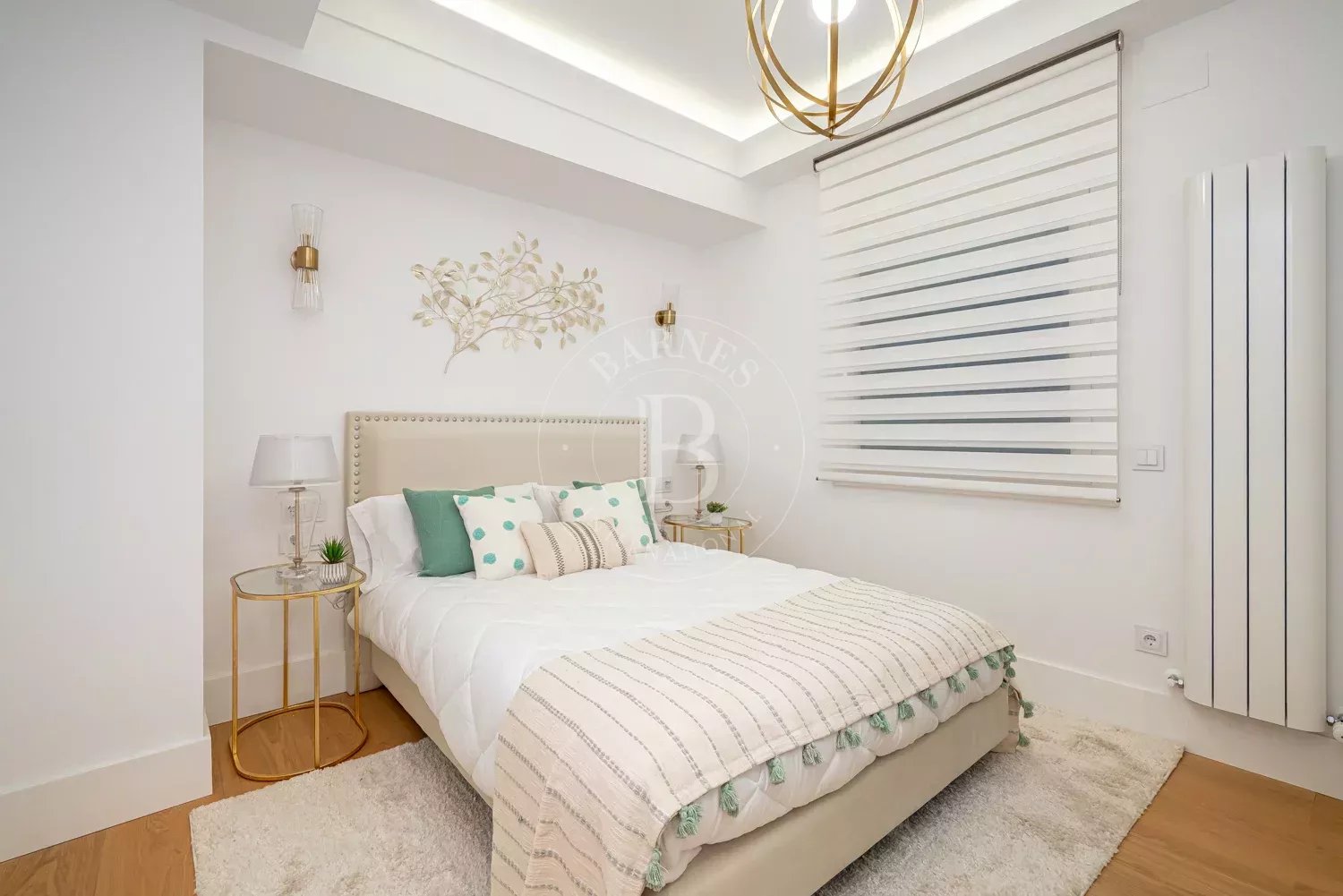 Les prestations techniques incluent une climatisation gainable, des fenêtres à double vitrage avec volets électriques, un éclairage LED intégré, la fibre optique, et un hall d’entrée élégant avec service de conciergerie. L’immeuble, très bien entretenu, est idéalement situé à deux pas de la Milla de Oro, du parc du Retiro, du marché d’Ibiza et de la meilleure gastronomie madrilène.