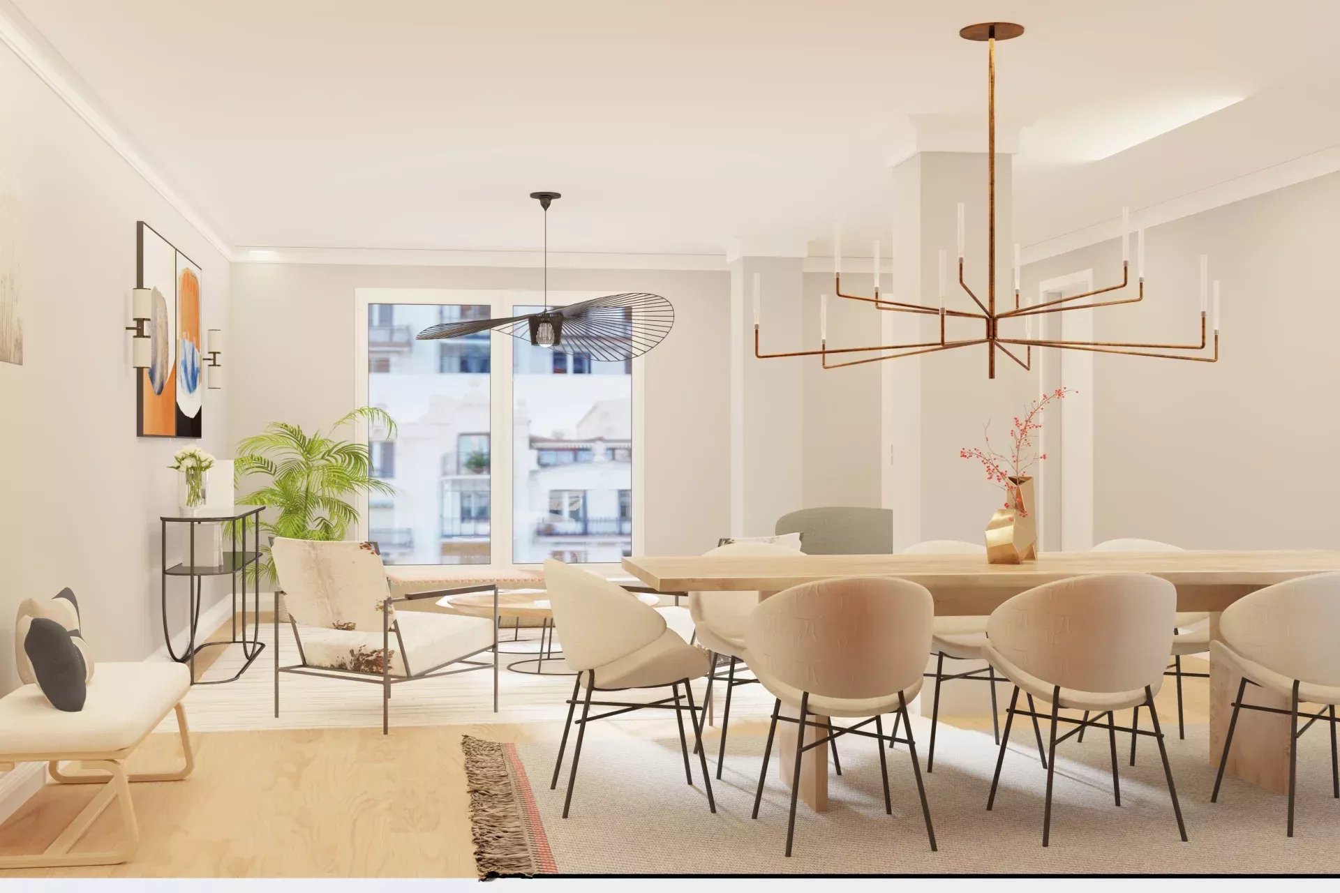 BARNES Madrid présente cette propriété exclusive avec terrasse dans le Barrio de Salamanca, une opportunité singulière pour ceux qui recherchent des appartements de luxe à vendre à Madrid avec projet de rénovation sur mesure. Avec 208 m² sur plan, des plafonds de plus de trois mètres et une orientation est, la résidence se distingue par sa luminosité et par une terrasse privée de 10 m²—un atout rare sur l’axe prime de la capitale.