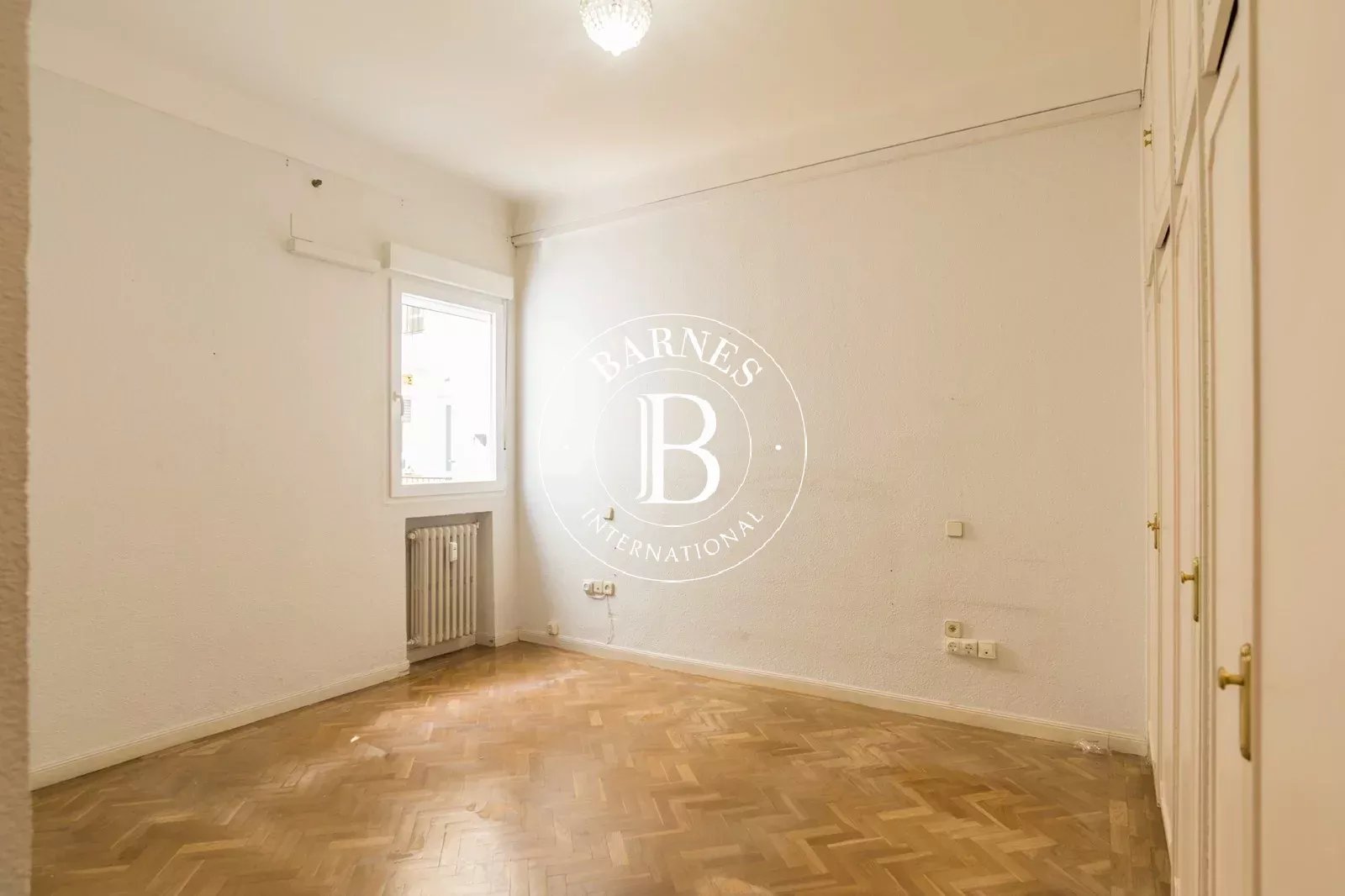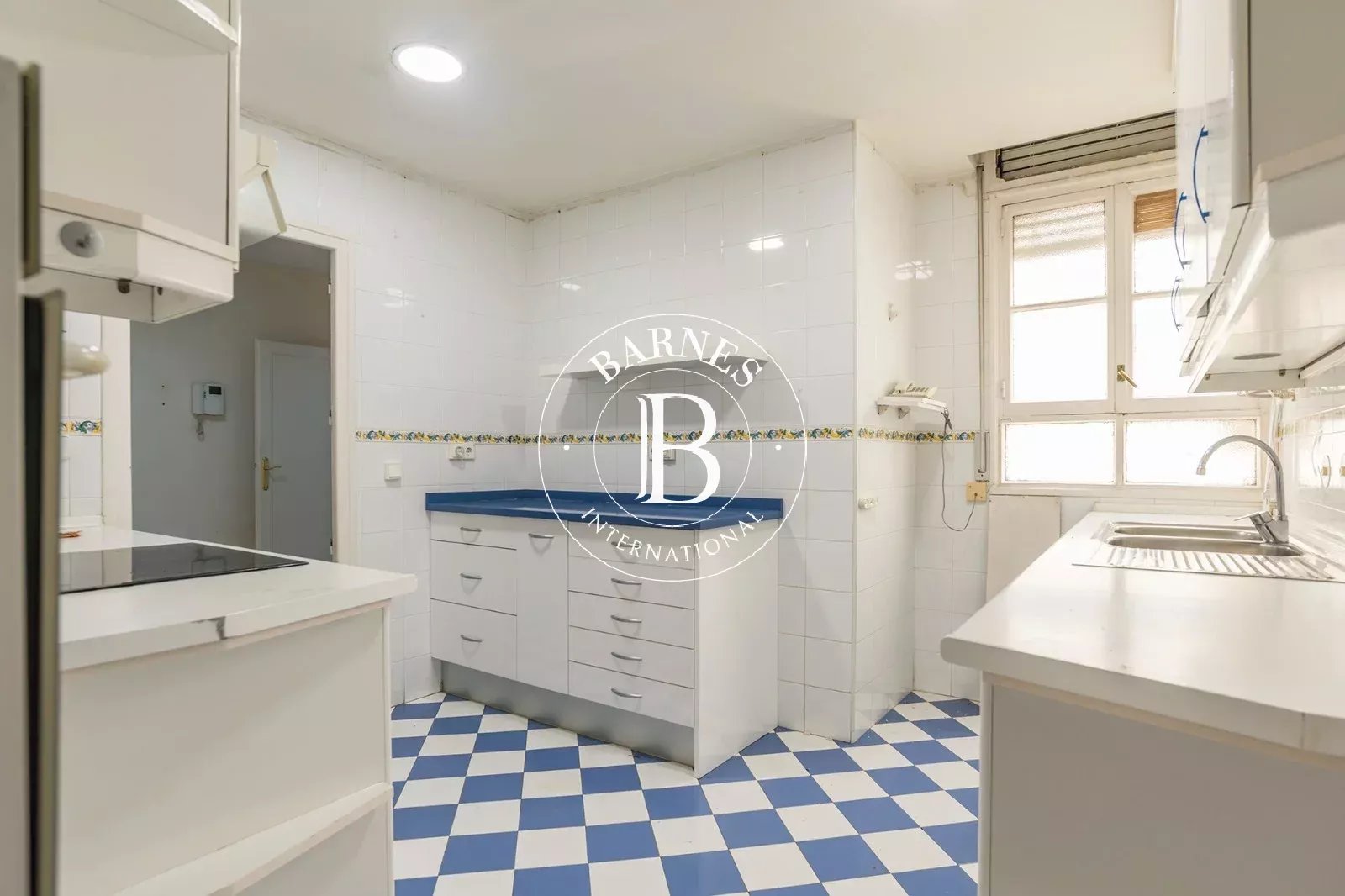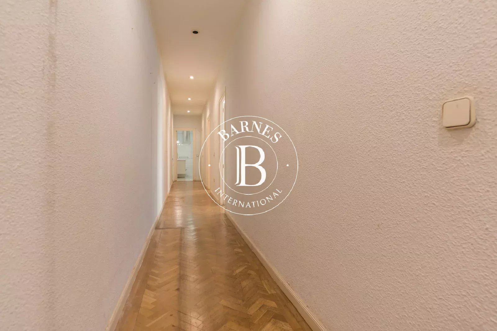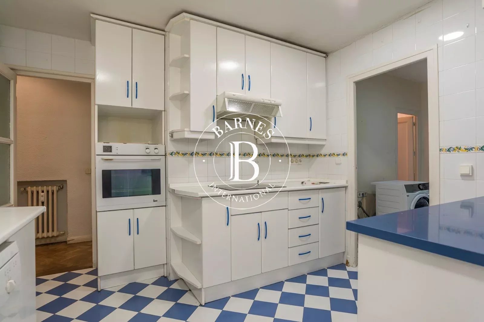 La distribution généreuse et fonctionnelle s'articule autour d'un grand hall central donnant accès au salon-salle à manger avec sa propre terrasse sur la Calle Núñez de Balboa, ainsi qu'à la chambre principale avec salle de bains privative. Une longue galerie relie les autres pièces : trois chambres supplémentaires, une grande cuisine et une zone de service indépendante avec entrée privée, office et buanderie. L'orientation ouest garantit une lumière naturelle tout l'après-midi. L'état actuel du bien permet d'entreprendre une rénovation complète sans contraintes, en adaptant chaque espace aux besoins et aux goûts du nouveau propriétaire.