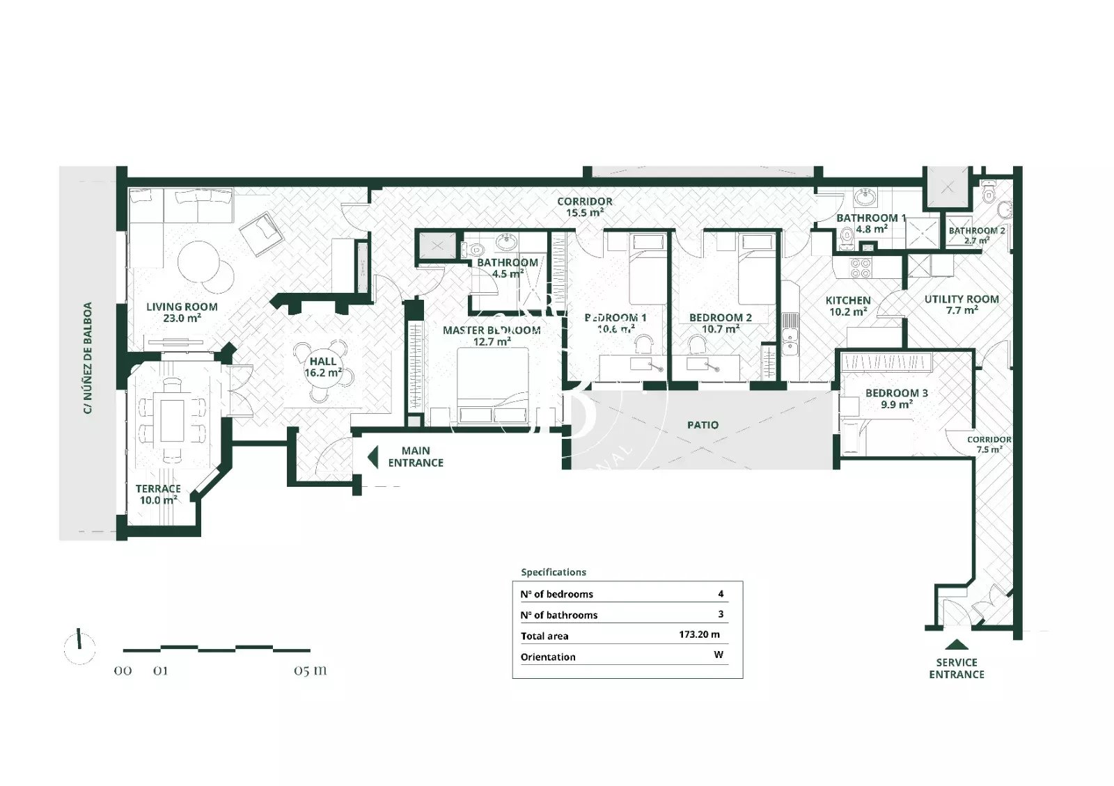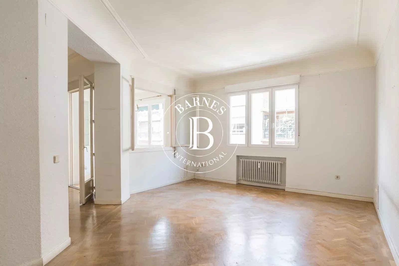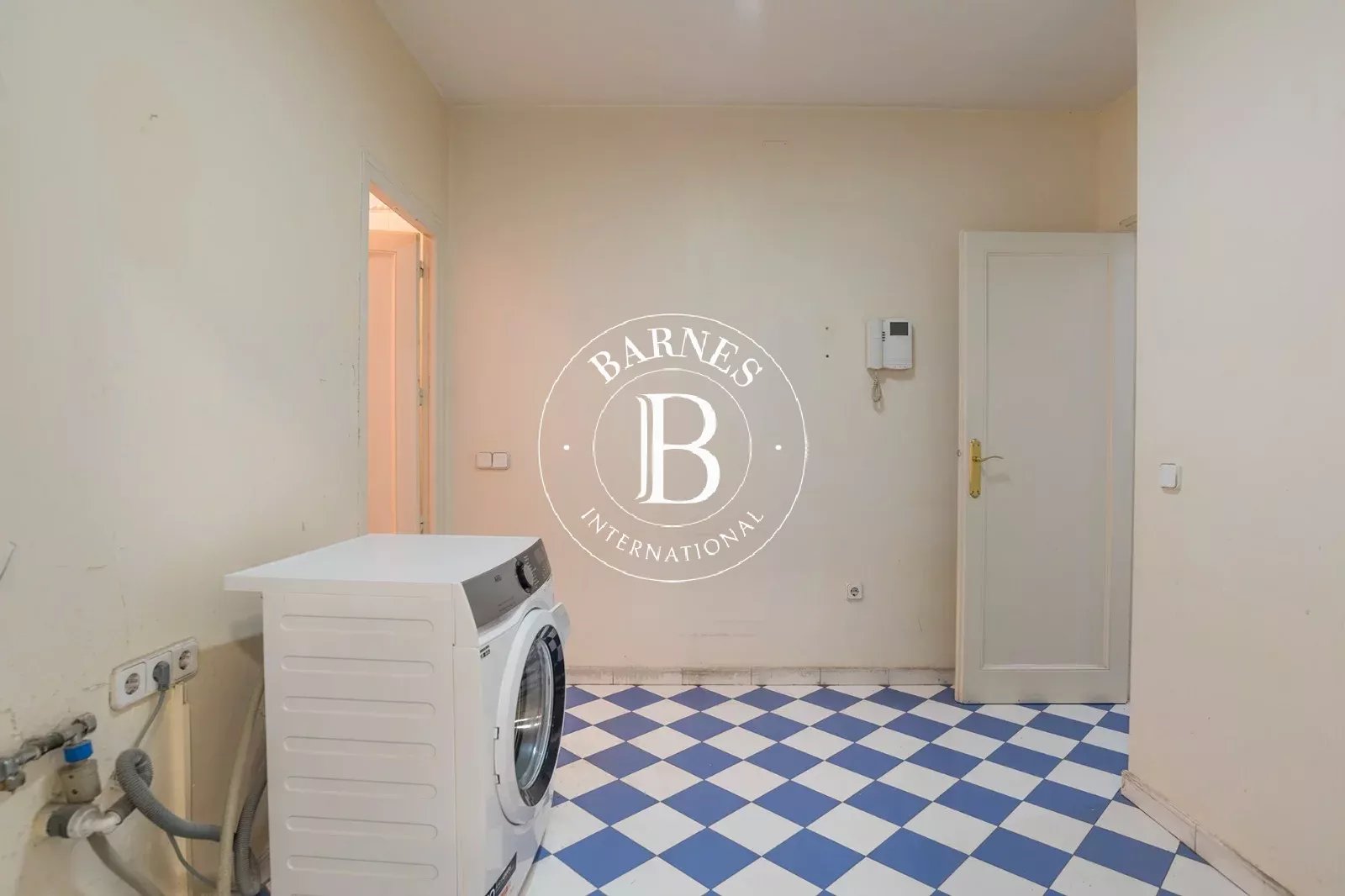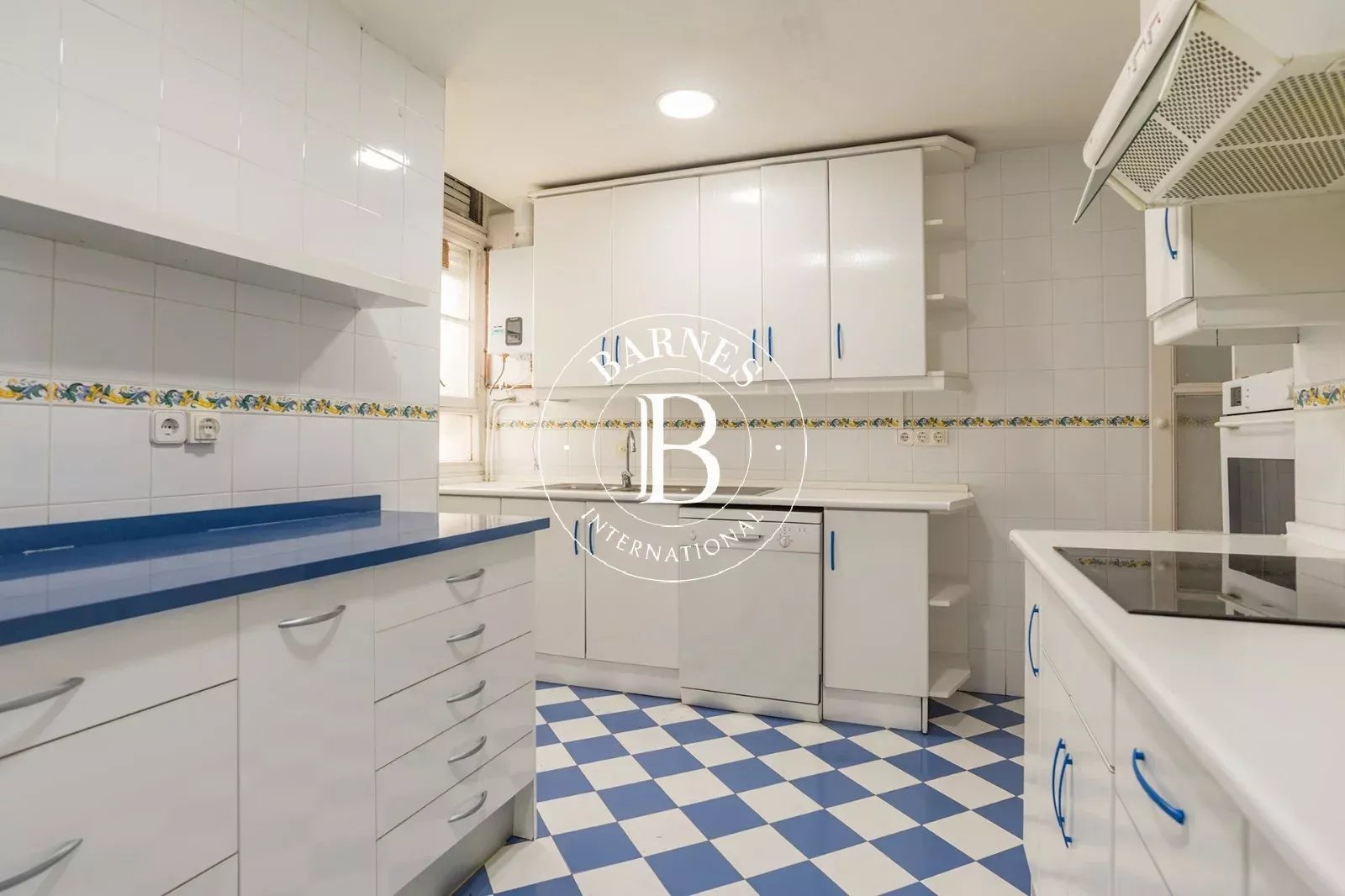 La distribution généreuse et fonctionnelle s'articule autour d'un grand hall central donnant accès au salon-salle à manger avec sa propre terrasse sur la Calle Núñez de Balboa, ainsi qu'à la chambre principale avec salle de bains privative. Une longue galerie relie les autres pièces : trois chambres supplémentaires, une grande cuisine et une zone de service indépendante avec entrée privée, office et buanderie. L'orientation ouest garantit une lumière naturelle tout l'après-midi. L'état actuel du bien permet d'entreprendre une rénovation complète sans contraintes, en adaptant chaque espace aux besoins et aux goûts du nouveau propriétaire.