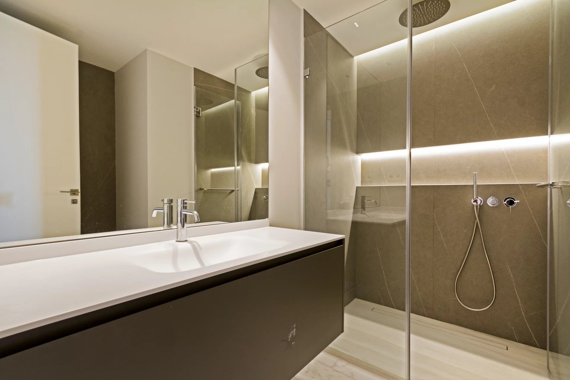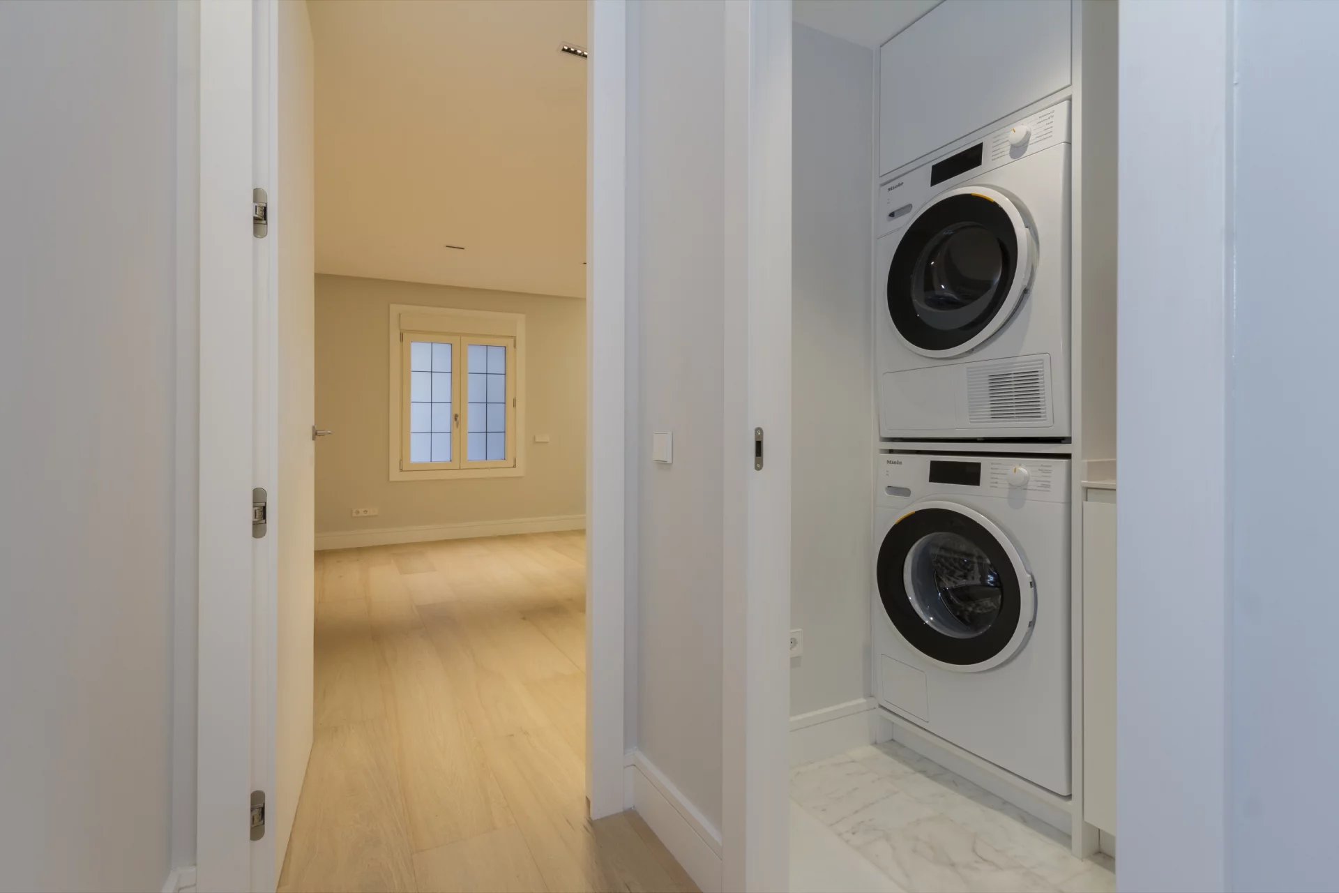 L’accès à l’immeuble se fait par un hall d’entrée majestueux avec un double escalier impérial. La copropriété comprend uniquement 12 logements exclusifs et propose des prestations haut de gamme telles que sécurité 24h/24, salle de sport, piscine chauffée, salle de réunion commune et systèmes domotiques de dernière génération, garantissant confort et sécurité de très haut niveau.