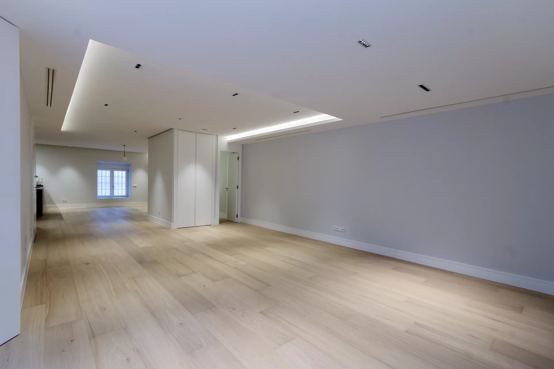 L’appartement (actuellement à usage de bureau) se distingue par sa belle hauteur sous plafond, la qualité remarquable de ses matériaux, une géométrie intérieure soigneusement étudiée et un design signé par le célèbre architecte d’intérieur Totón Sánchez, alliant élégance classique et sophistication contemporaine.