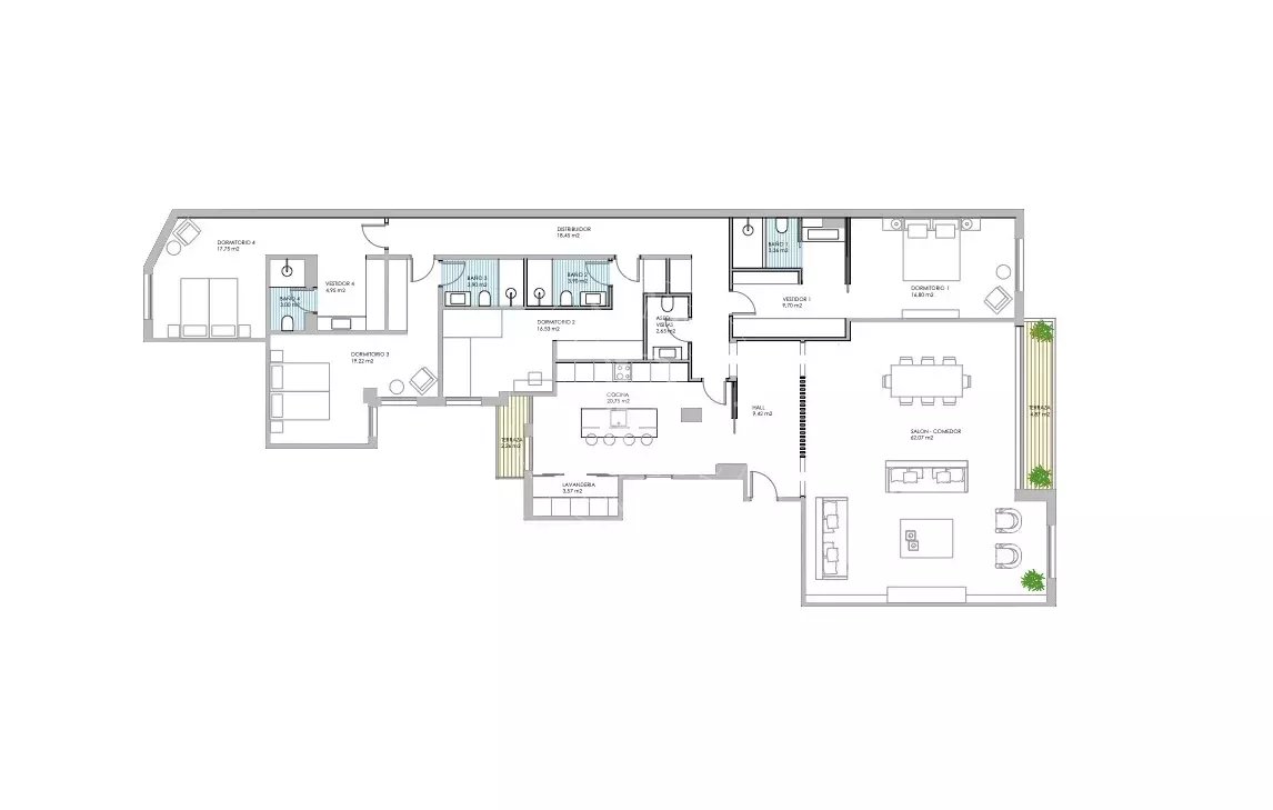 La partie jour se compose d'un salon-salle à manger spacieux et élégant avec accès direct à la terrasse extérieure, créant une atmosphère sophistiquée et accueillante. La cuisine indépendante, entièrement équipée d'appareils électroménagers haut de gamme, allie fonctionnalité et esthétique, et comprend un espace buanderie indépendant très pratique.