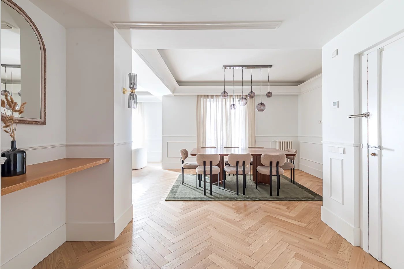 Barnes Madrid présente ce deuxième étage exclusif de 287 m² situé dans un immeuble classique avec service de conciergerie et un portail majestueux d'une grande beauté, en plein cœur du quartier de Salamanca. La propriété se distingue par sa magnifique luminosité et par une distribution équilibrée qui privilégie le confort et la fonctionnalité contemporaine.