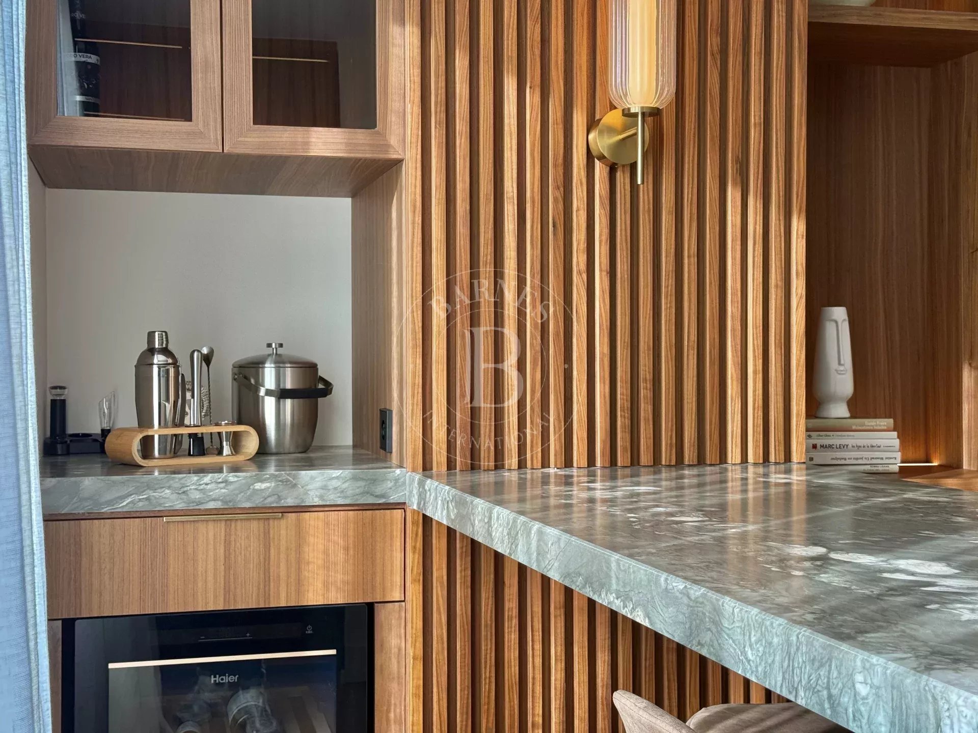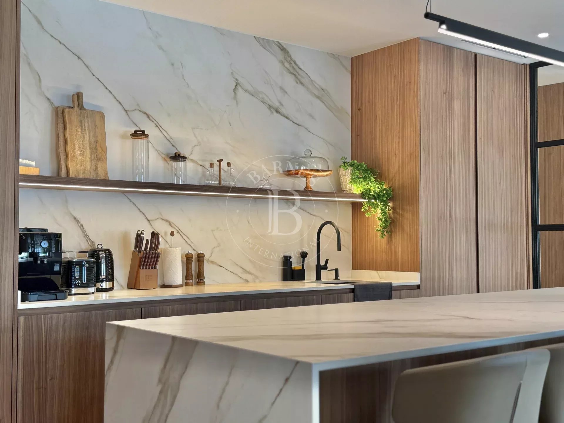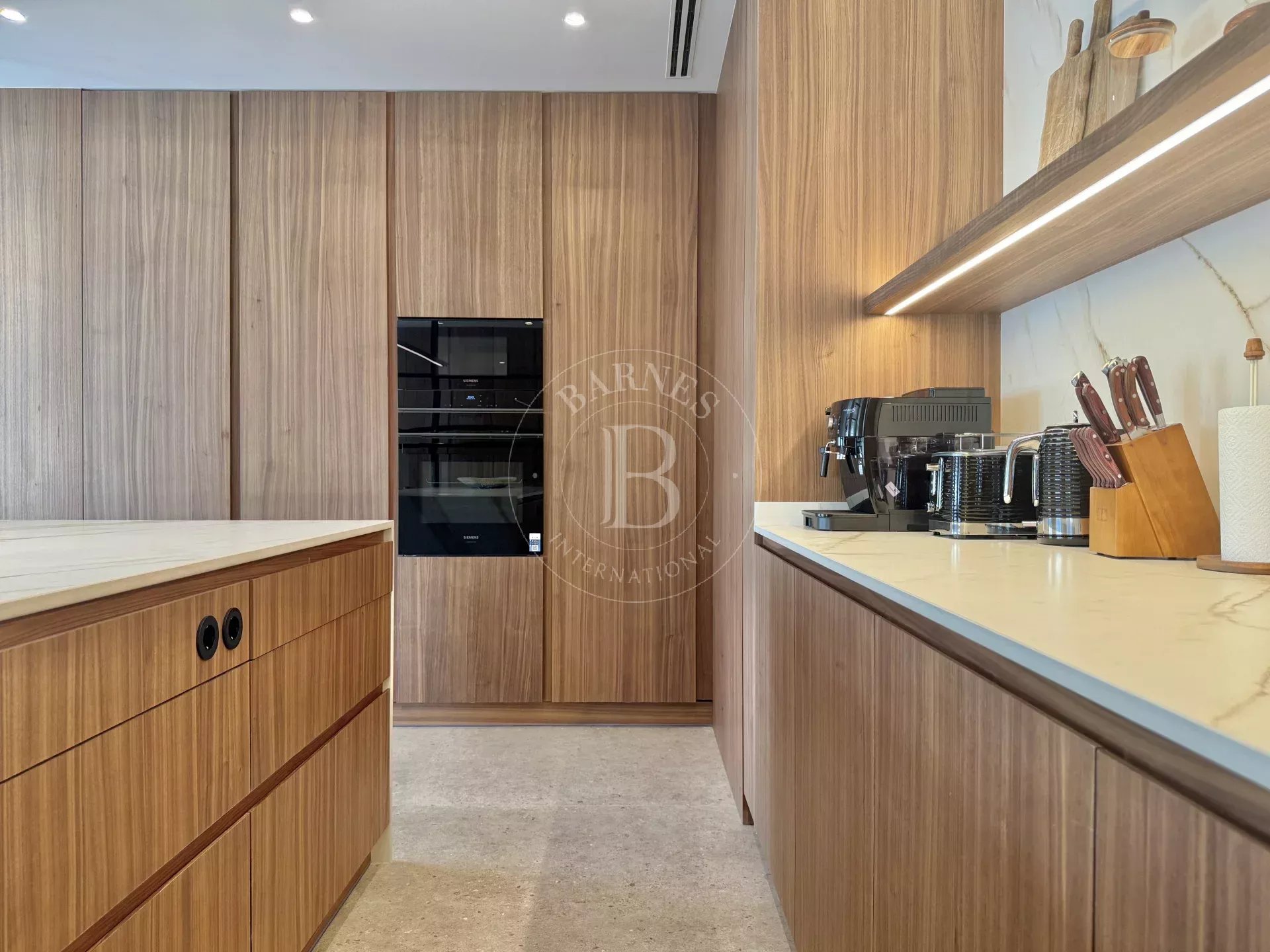 La cuisine est entièrement équipée, conçue pour une utilisation pratique et fonctionnelle. La propriété dispose également d'un débarras et d'un service de conciergerie, garantissant confort et sécurité.