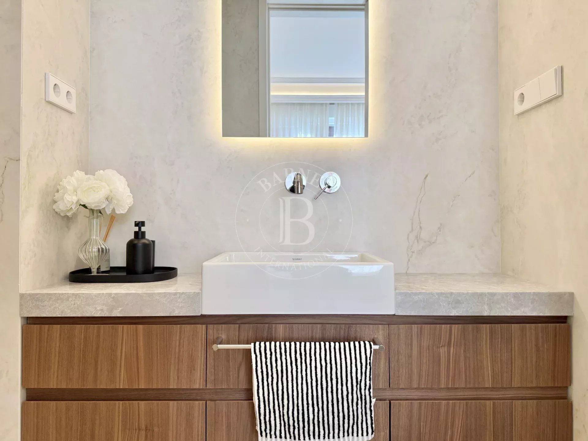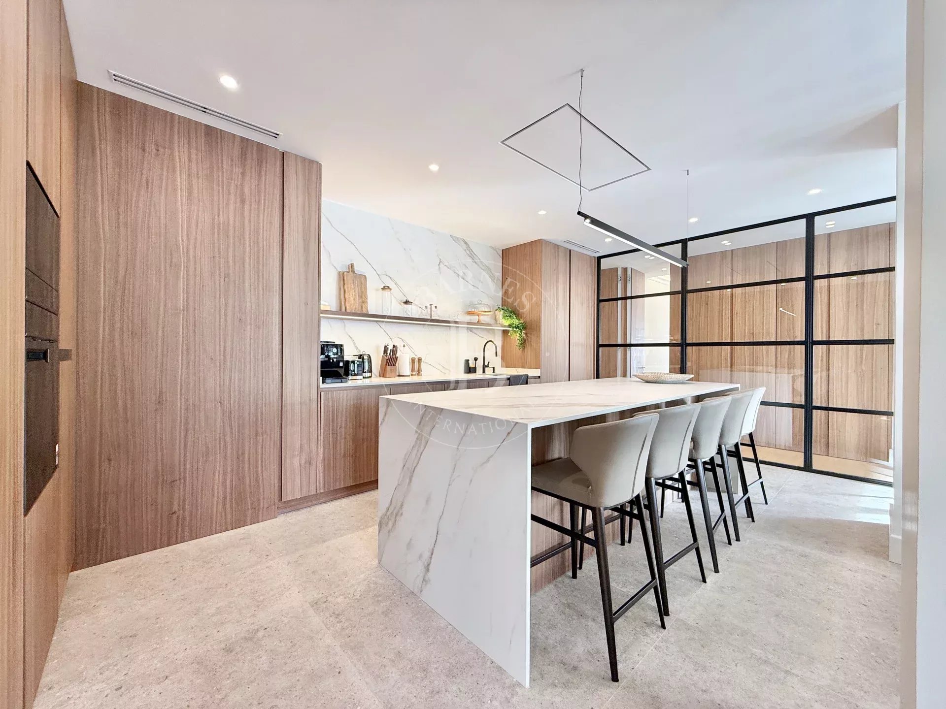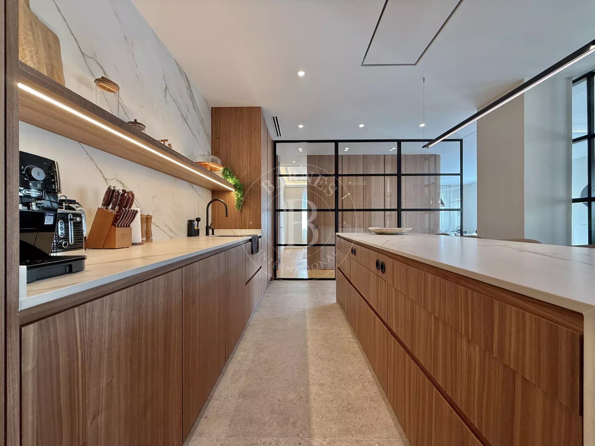 La cuisine est entièrement équipée, conçue pour une utilisation pratique et fonctionnelle. La propriété dispose également d'un débarras et d'un service de conciergerie, garantissant confort et sécurité.