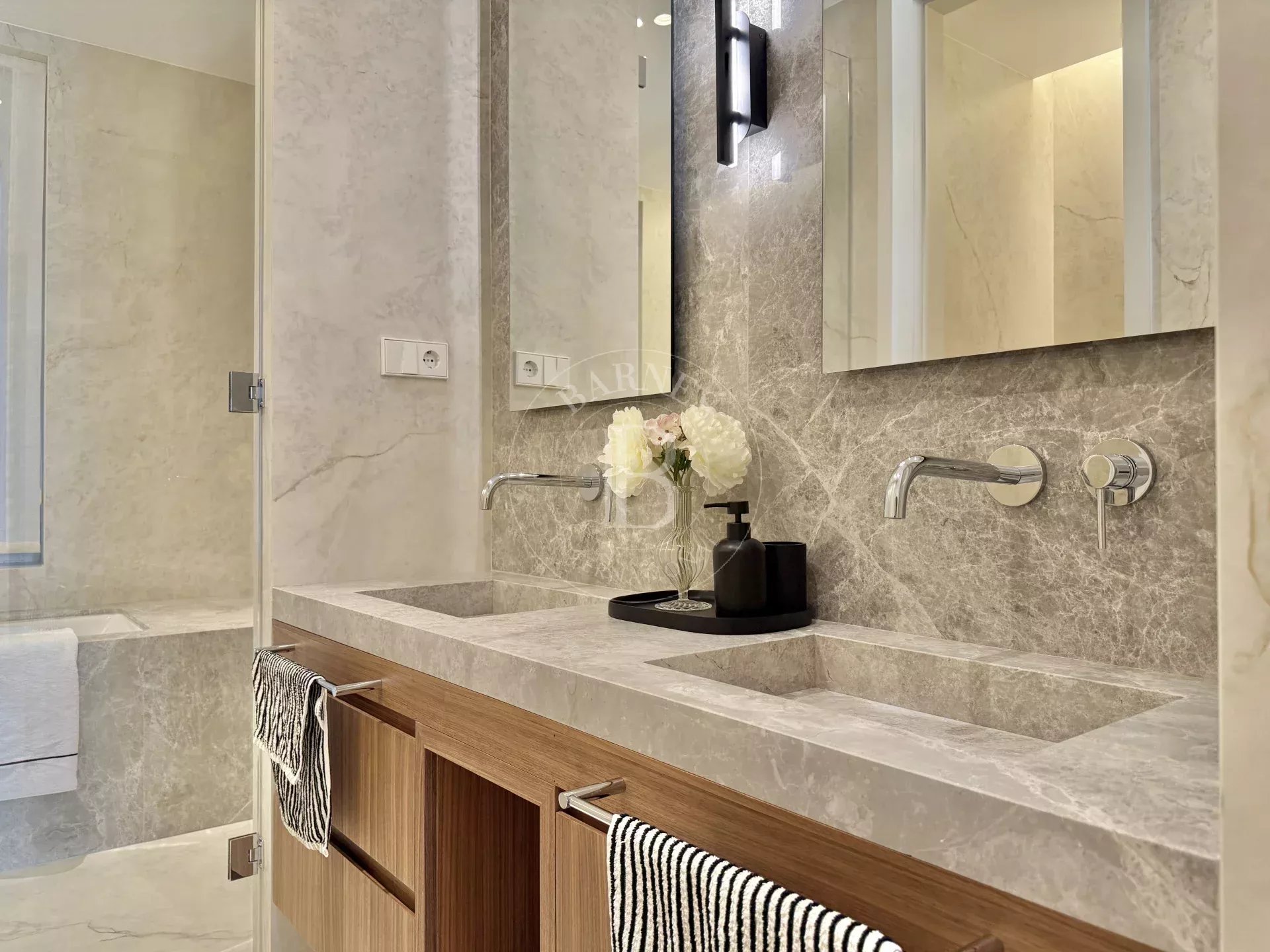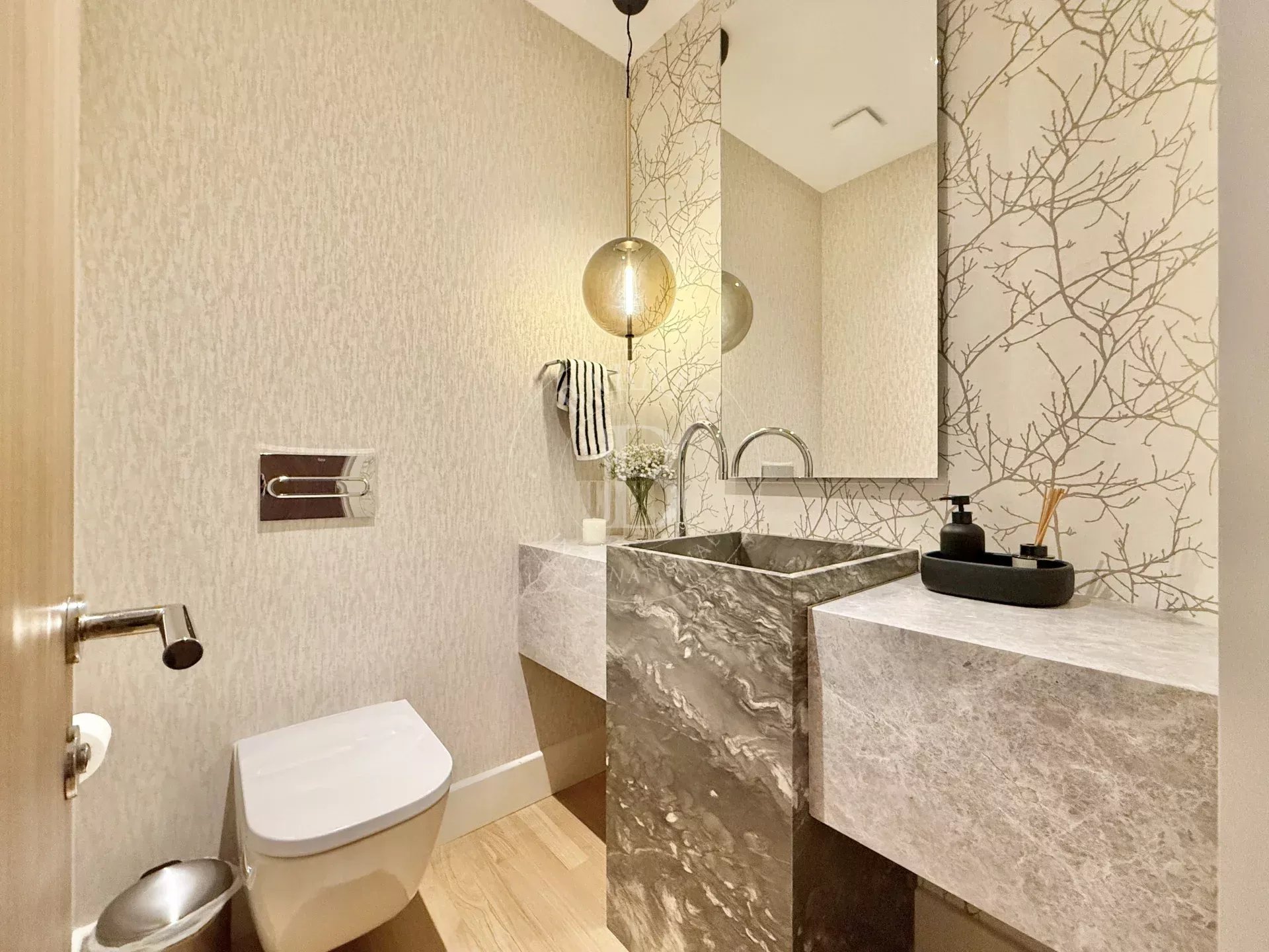 La maison offre une distribution spacieuse et équilibrée, avec quatre chambres en suite, toutes avec salle de bain privée, ainsi qu'un WC supplémentaire. Les espaces de vie sont articulés autour d'un salon principal spacieux, d'un salon TV indépendant et d'une élégante salle à manger, idéaux aussi bien pour la vie de famille que pour recevoir des invités.