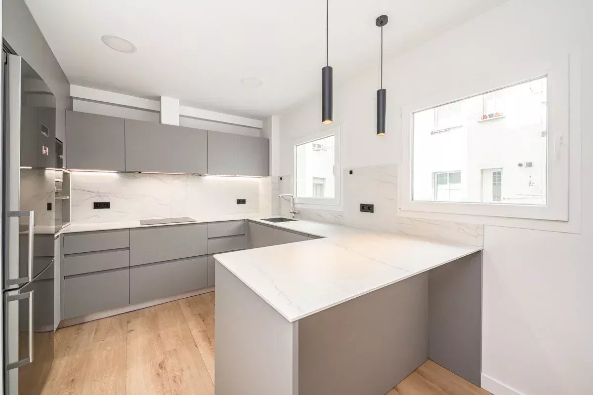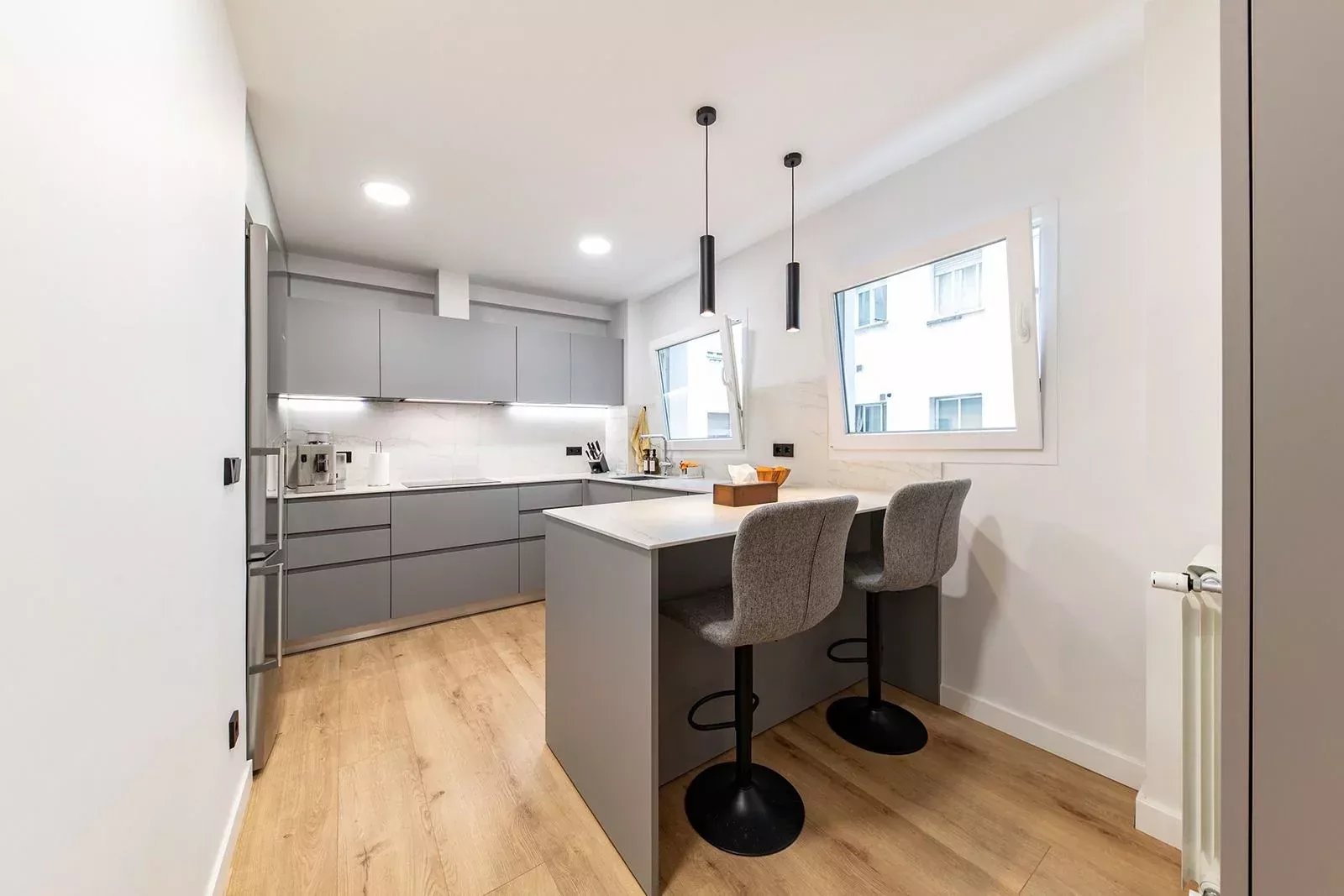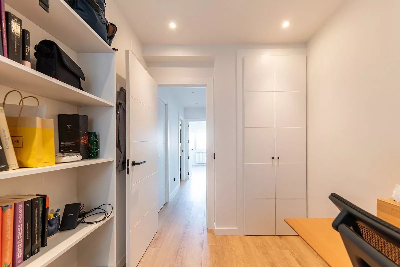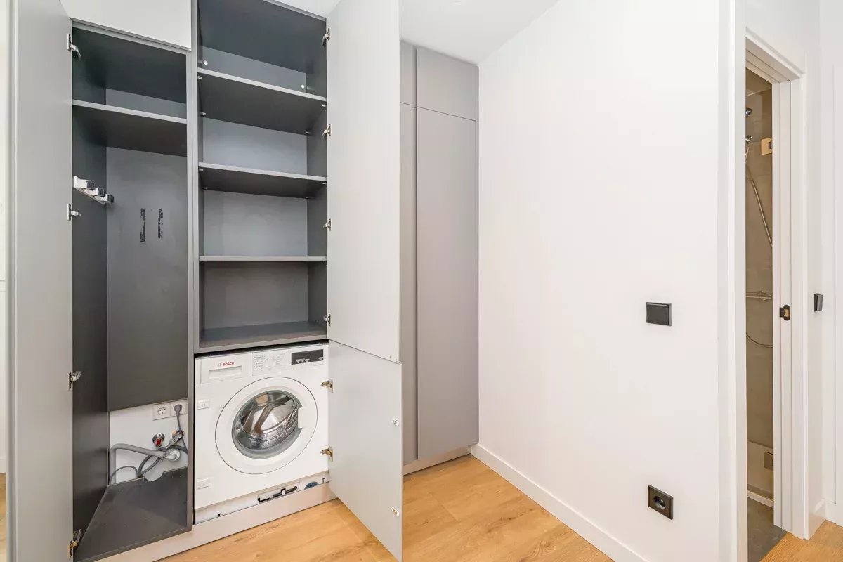 Cet appartement propose un style de vie sophistiqué dans un cadre urbain exclusif à Madrid. Il se caractérise par sa luminosité, sa distribution équilibrée et son attention aux détails. Un vaste hall d’entrée avec placard intégré mène à une cuisine moderne avec îlot, équipée d’appareils électroménagers haut de gamme (Siemens et Bosch) et de robinets Grohe avec système de filtration d’eau. Le salon-salle à manger, baigné de lumière naturelle, s’ouvre sur une agréable terrasse idéale pour profiter de l’extérieur.