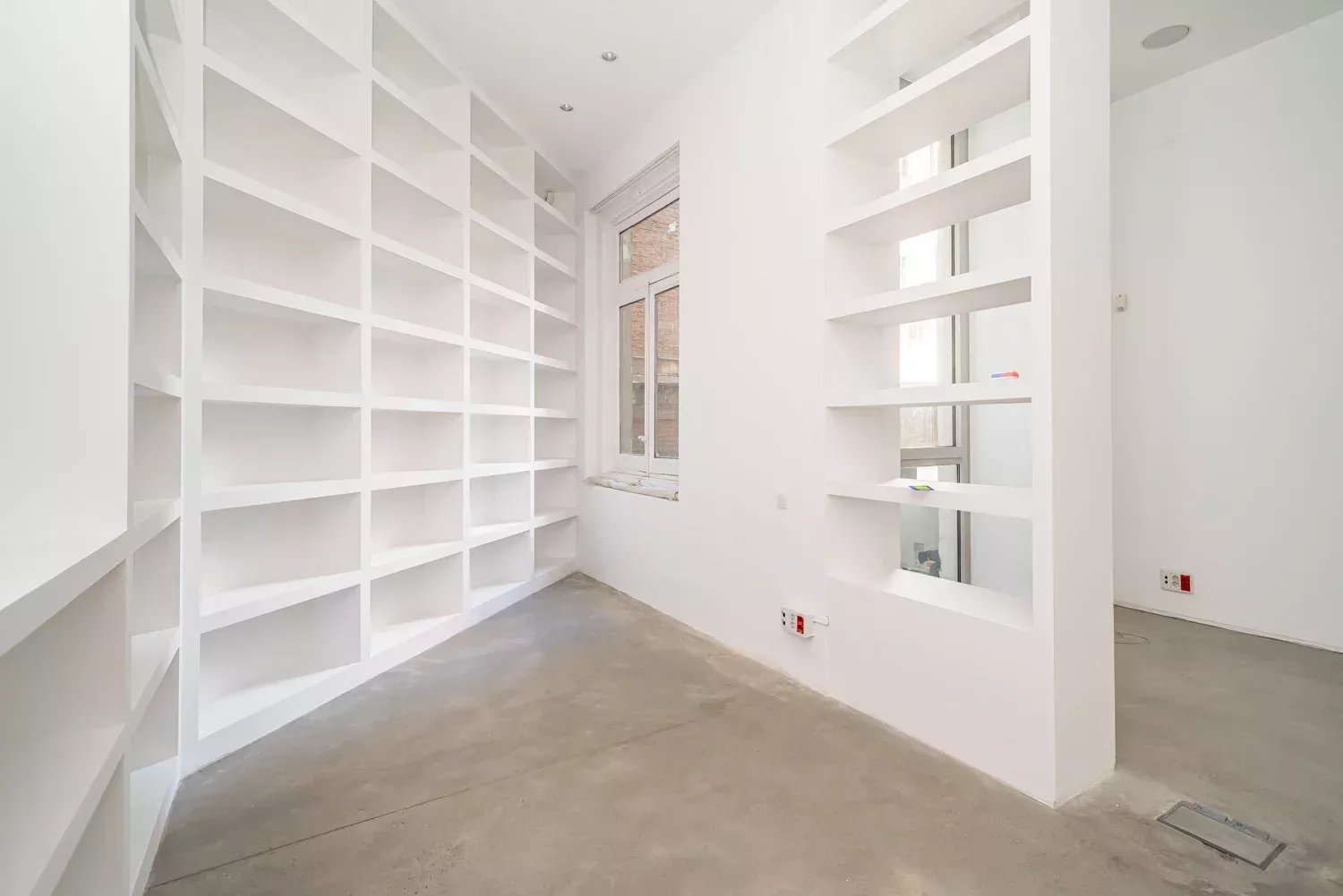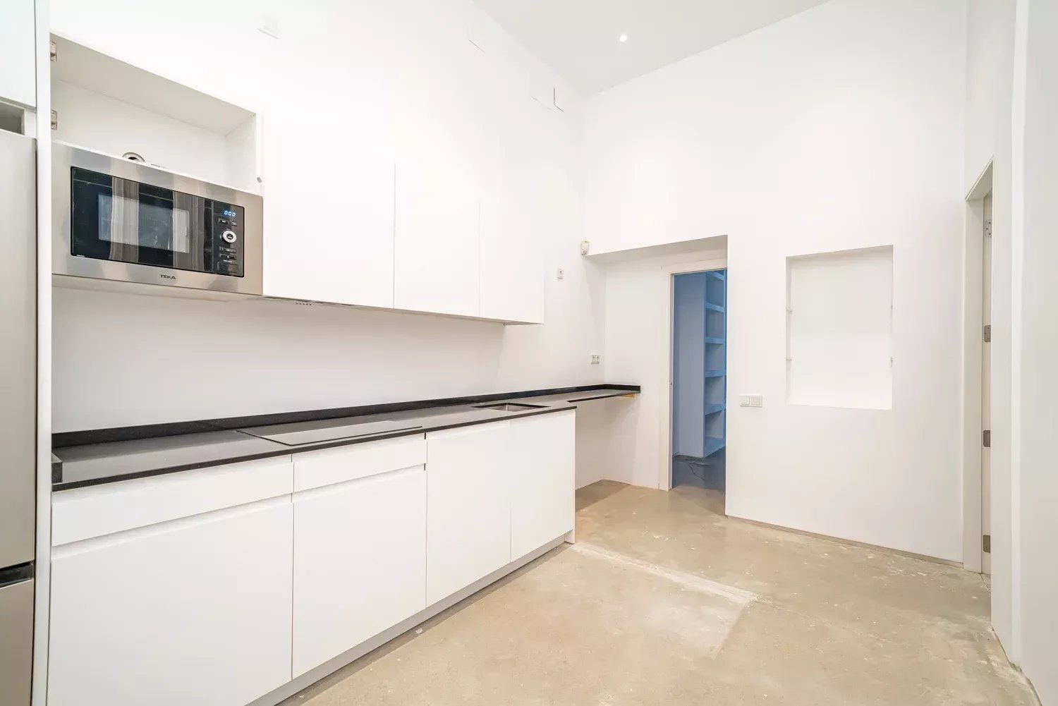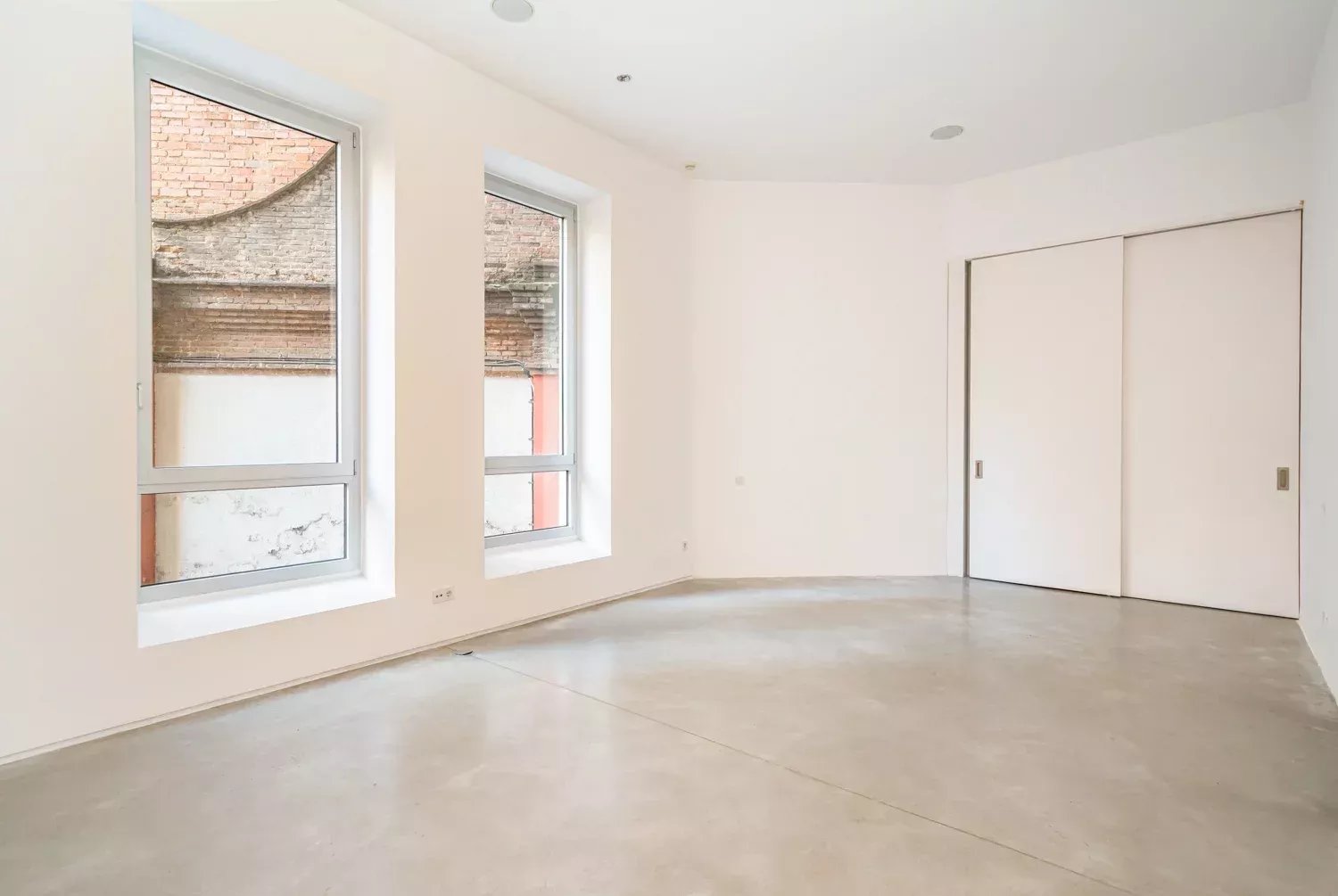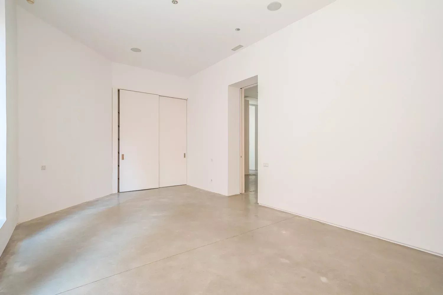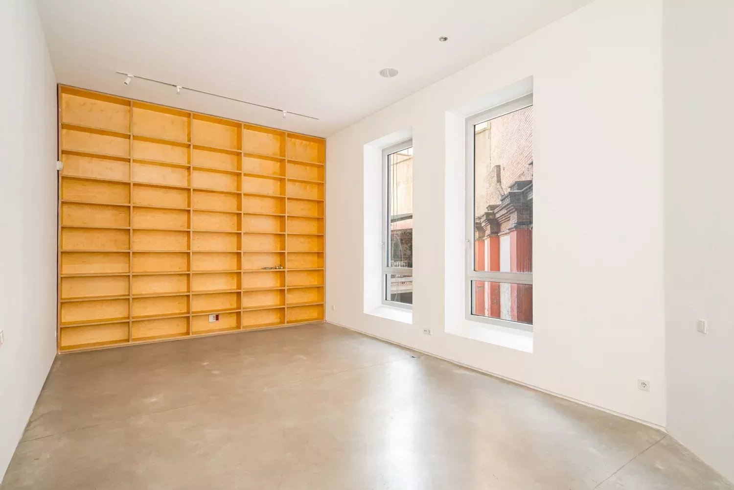 Dès l'entrée, la sensation est d'élévation et de calme. Malgré sa localisation au niveau de la rue, il n'y a absolument aucune trace visuelle ou acoustique du monde extérieur. Chaque ouverture architecturale — des fenêtres aux seuils en passant par les portes intérieures — est de pleine hauteur, créant un rythme vertical continu qui préserve l'essence de la vie antérieure de l'espace en tant que galerie. Le résultat est une sensation spatiale plus proche d'un loft penthouse que d'un appartement traditionnel, avec des intérieurs qui semblent suspendus au-dessus de la ville.