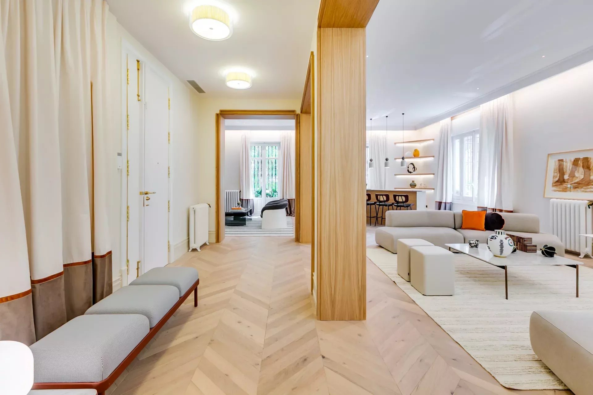 BARNES Madrid met en vente ce joyau architectural sur la Milla de Oro du Barrio de Salamanca, l’une des résidences de luxe les plus distinguées du marché prime à Madrid. Avec 389 m² construits, le bien a été entièrement rénové et meublé avec un design d’intérieur haut de gamme, en utilisant des matériaux nobles tels que le chêne naturel, des marbres de première qualité et des finitions artisanales aux plafonds et aux murs. Situé dans un immeuble d’époque au façade historique protégée et aux espaces paysagers, cet appartement d’angle bénéficie d’une lumière naturelle exceptionnelle grâce à ses grandes baies et à son orientation privilégiée ; l’immeuble, de style palatial, offre escaliers monumentaux, ascenseur à cage, conciergerie et gardien, vidéosurveillance et un parking extérieur privé exclusif pour les résidents.