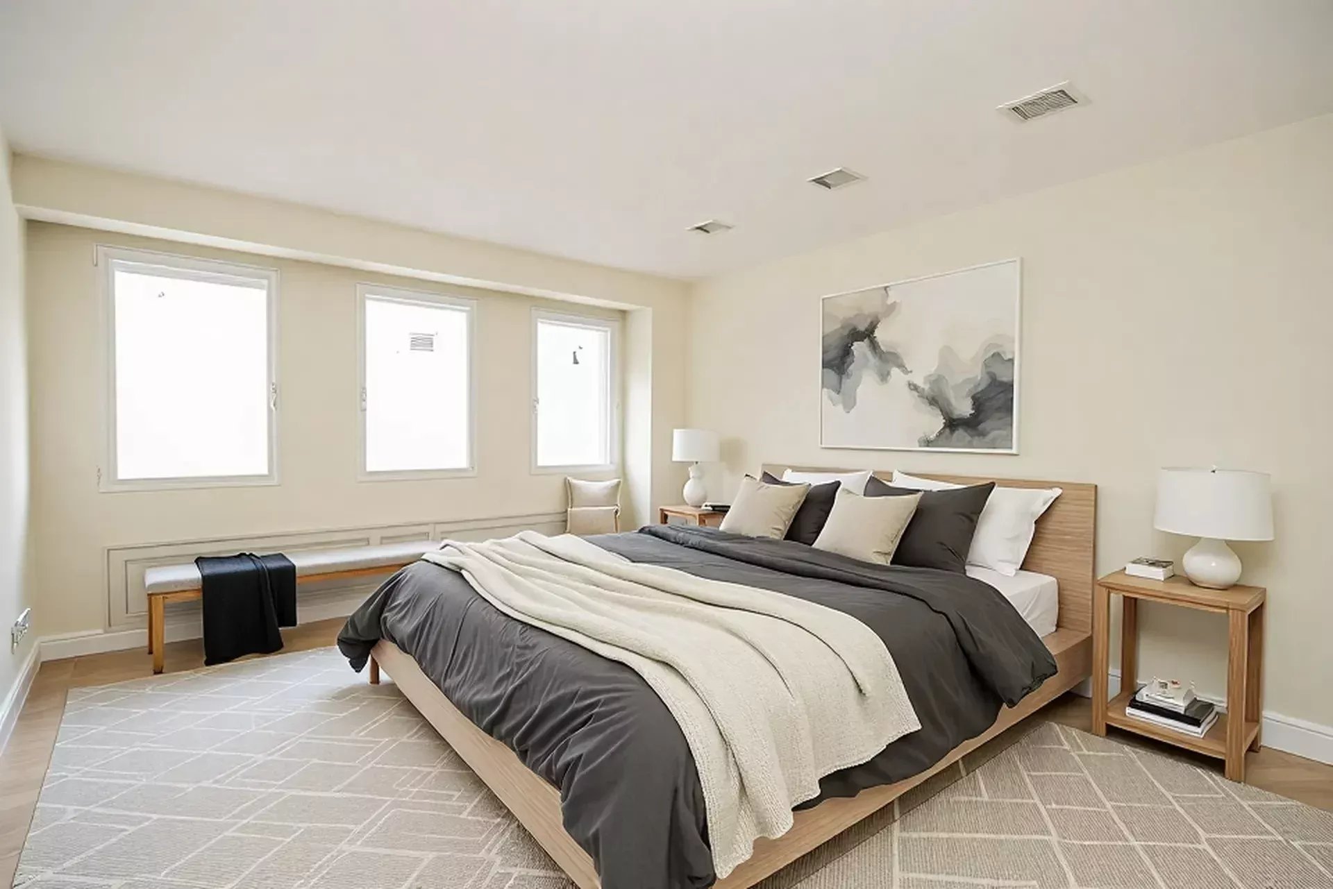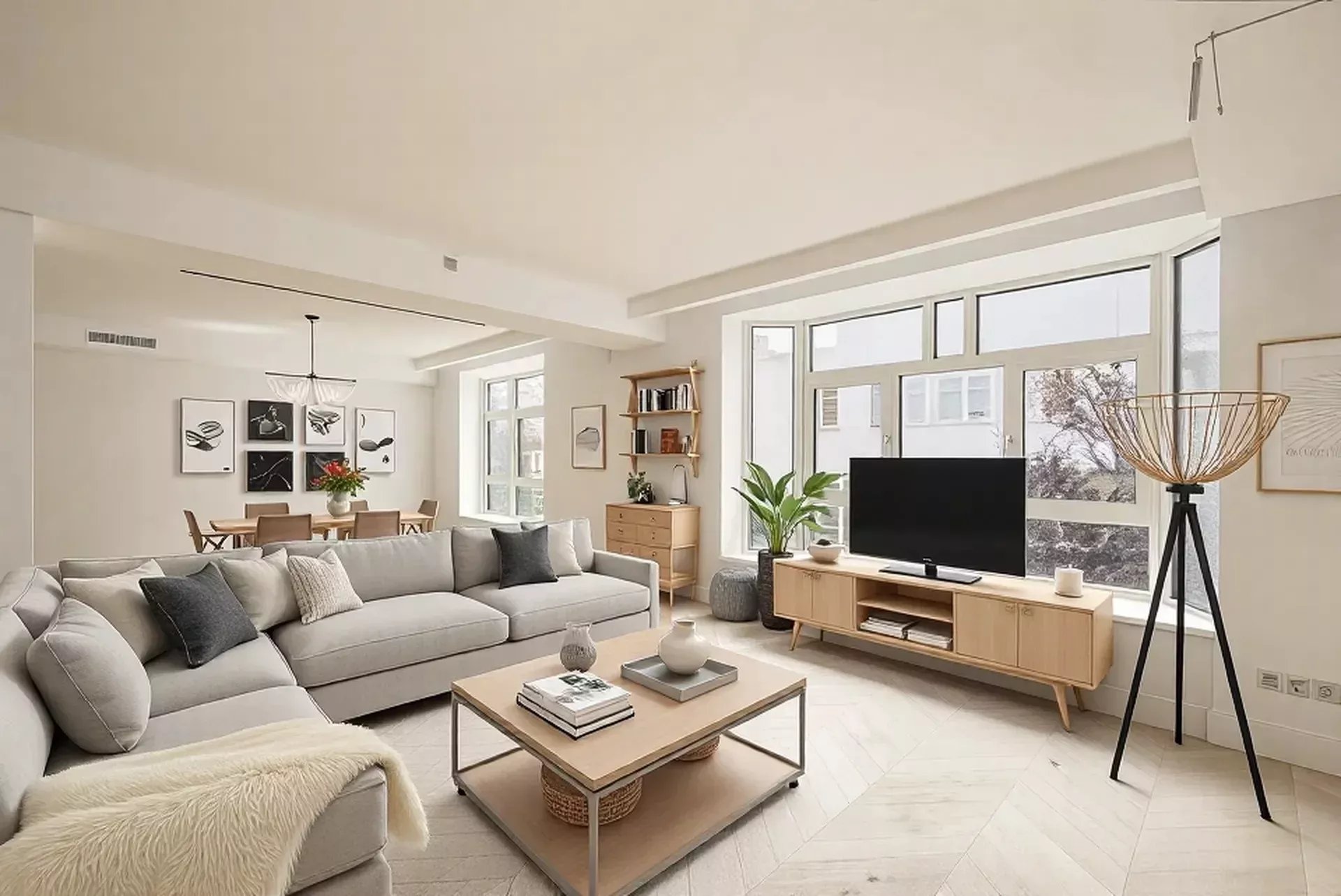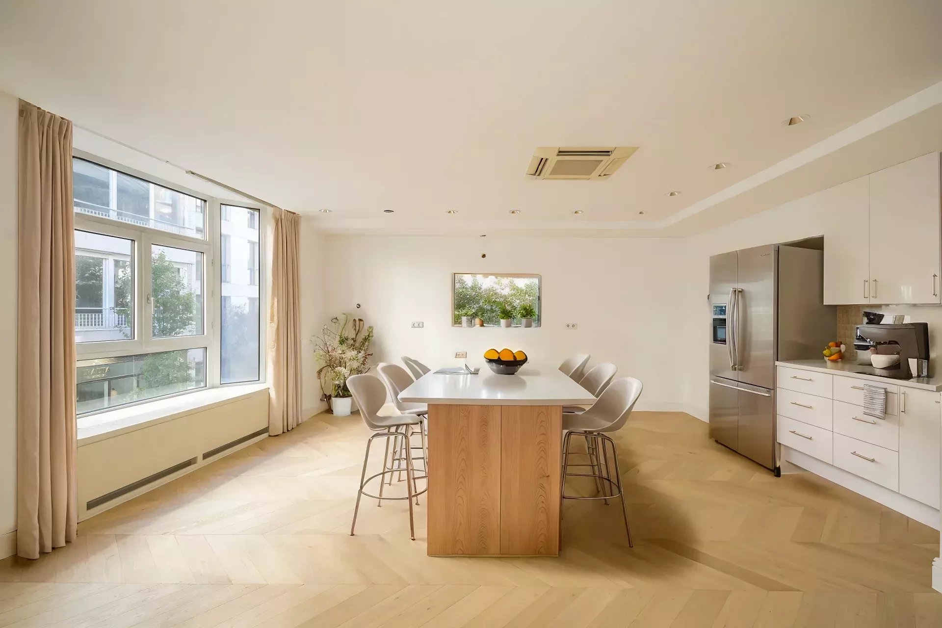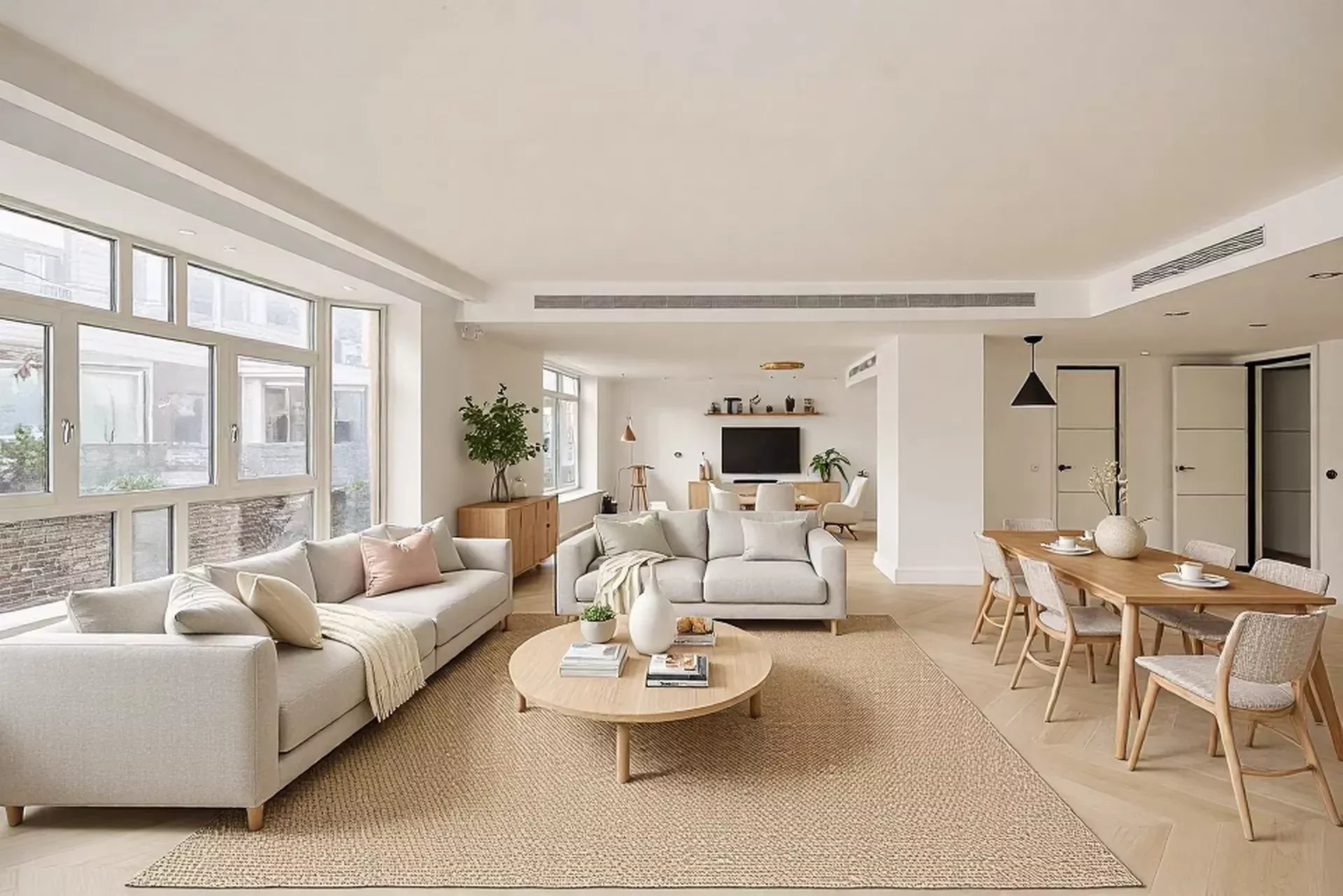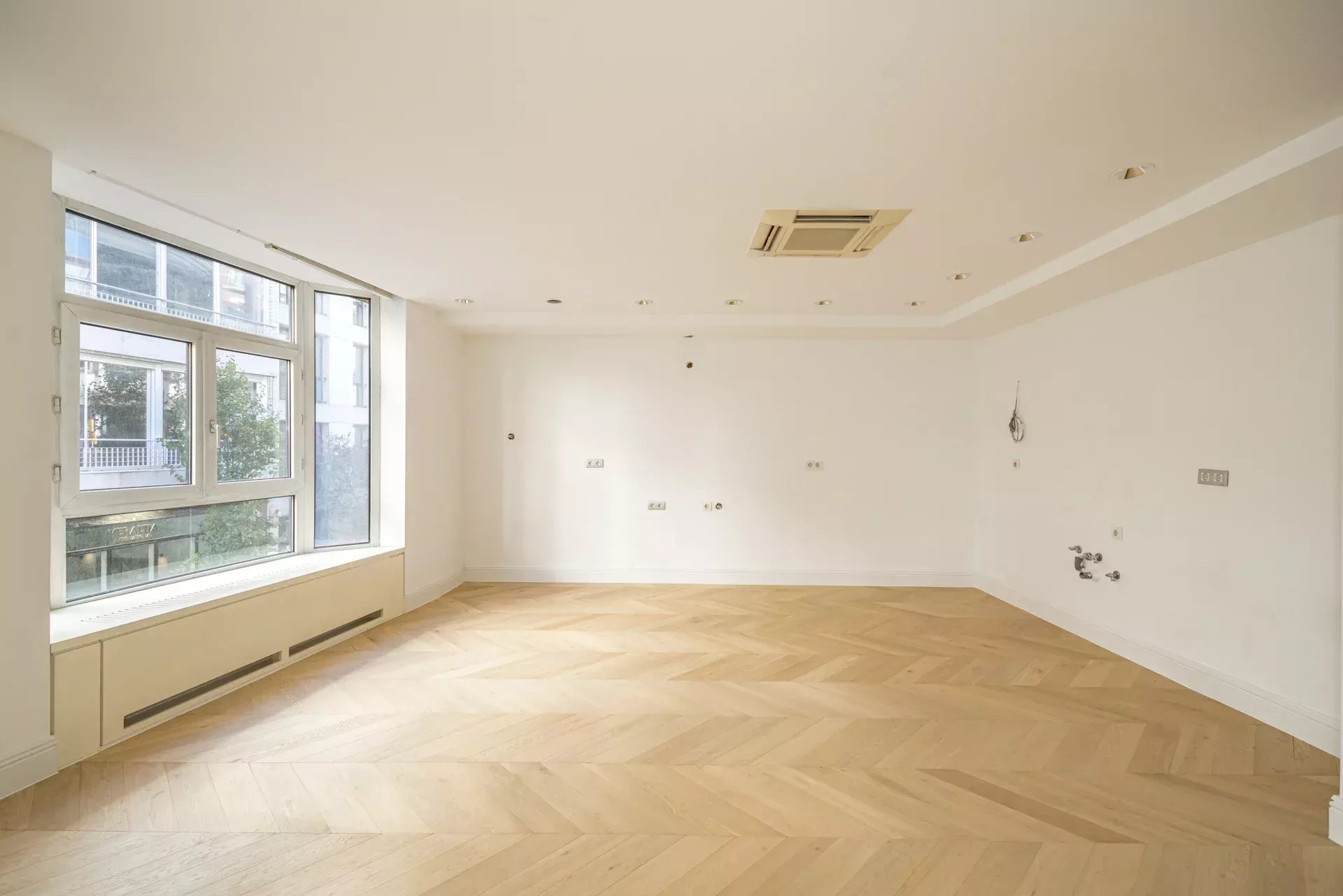 Ce logement de luxe se distingue par ses grandes fenêtres offrant une excellente luminosité naturelle et de charmantes vues sur une rue majestueuse, apportant chaleur et distinction à chaque espace.