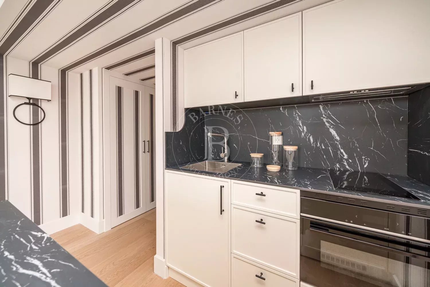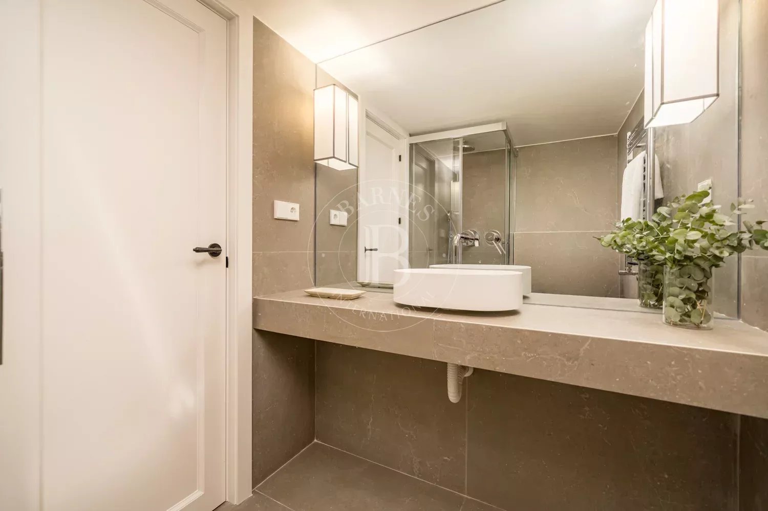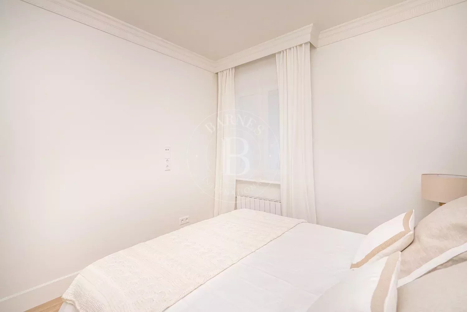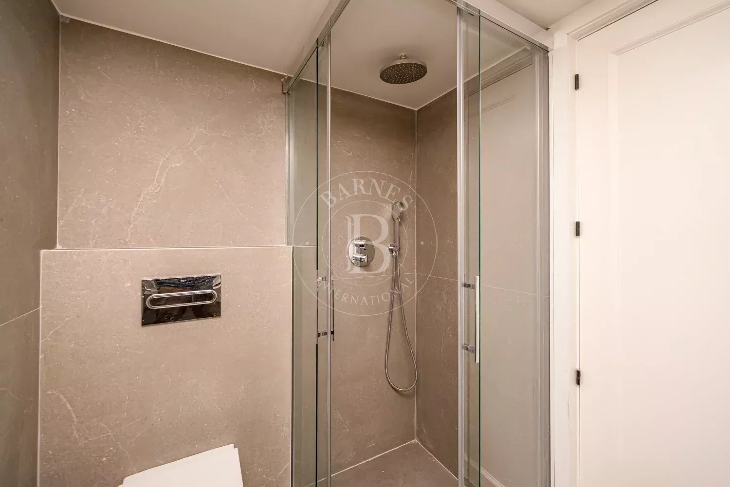 La chambre est située de manière indépendante par rapport au salon et dispose de placards intégrés qui maximisent le rangement sans occuper d’espace supplémentaire. La salle de bains, idéalement située au centre de l’appartement, est équipée d’une douche et de sanitaires modernes suite à la récente rénovation.