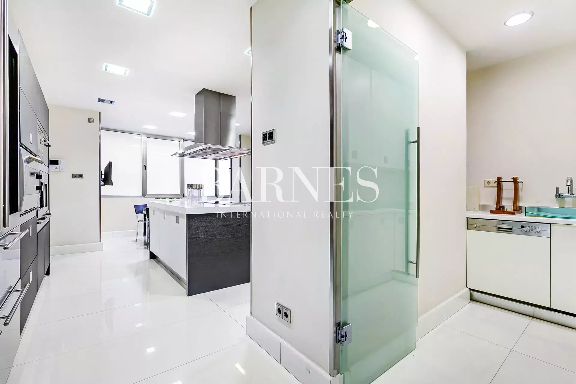 BARNES Madrid vend cette impressionnante résidence de 480 m² à Castellana, dans le Barrio de Salamanca, située dans un immeuble primé conçu par l’architecte Ruiz de la Prada. Avec des accès indépendants, une vidéosurveillance dans toutes les parties communes, une conciergerie 24h/24 et une sécurité privée, la propriété garantit un environnement exclusif et hautement sécurisé. Elle intègre des portes blindées, de larges fenêtres à double vitrage (certaines blindées) et des mesures de protection supplémentaires non détaillées pour des raisons de confidentialité, assurant une isolation thermique et acoustique optimale.
