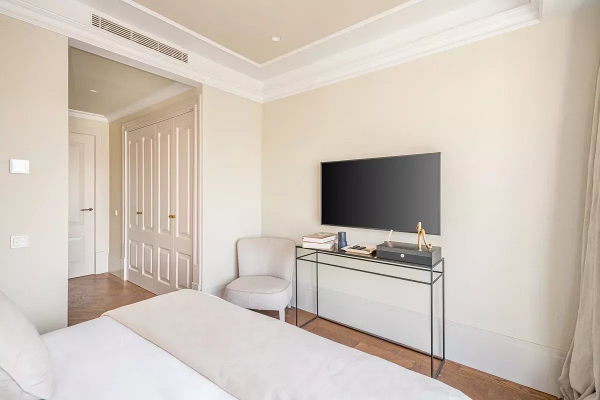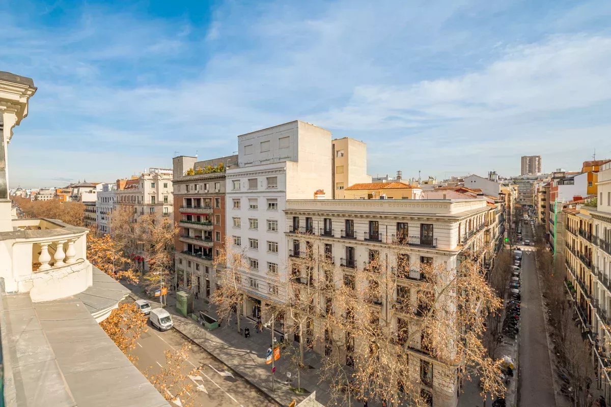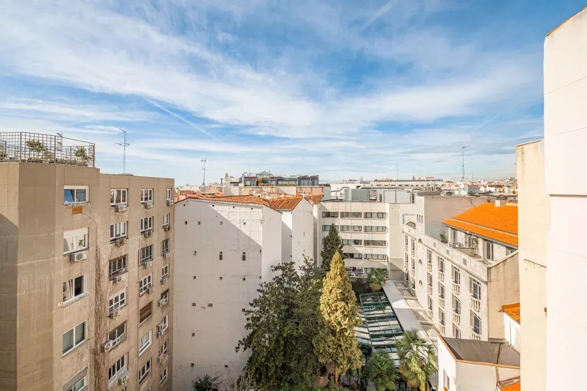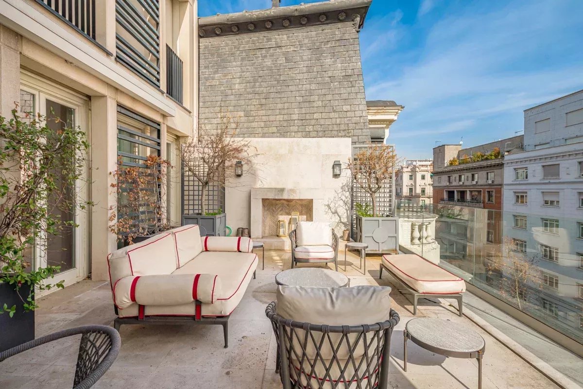 Dès l’entrée, le ton est donné par une élégance raffinée que l’on retrouve dans chaque pièce. L’un des joyaux de la propriété est sa spectaculaire terrasse orientée à l’est, offrant une vue dégagée sur les façades les plus emblématiques de Madrid et l’horizon urbain.