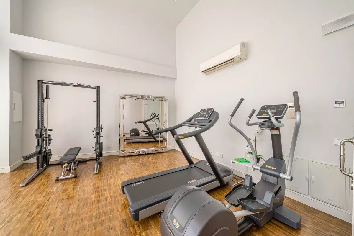 Elle offre des espaces communs d’exception, tels qu’une piscine entourée de jardins dans la cour intérieure, une salle de sport privée entièrement équipée, deux places de parking avec accès direct et un vaste local de rangement.