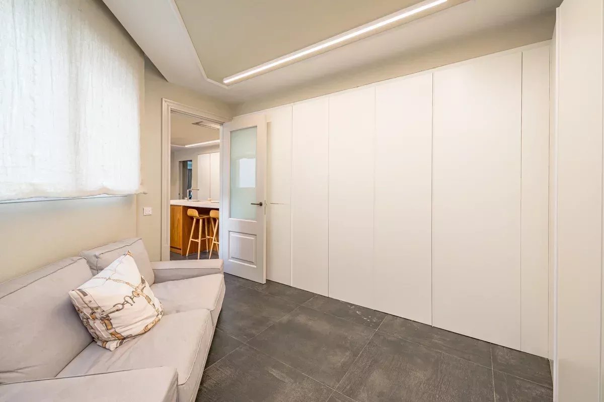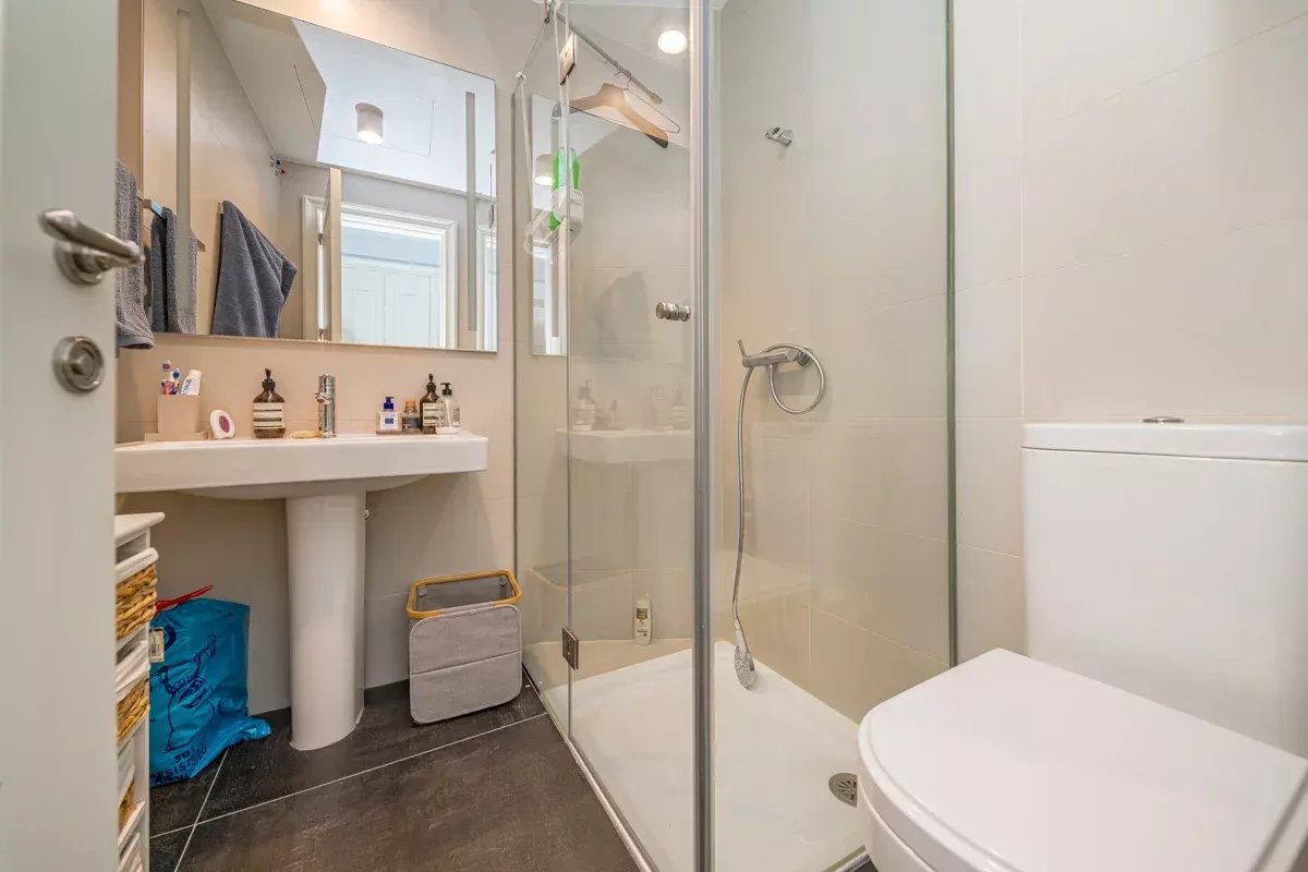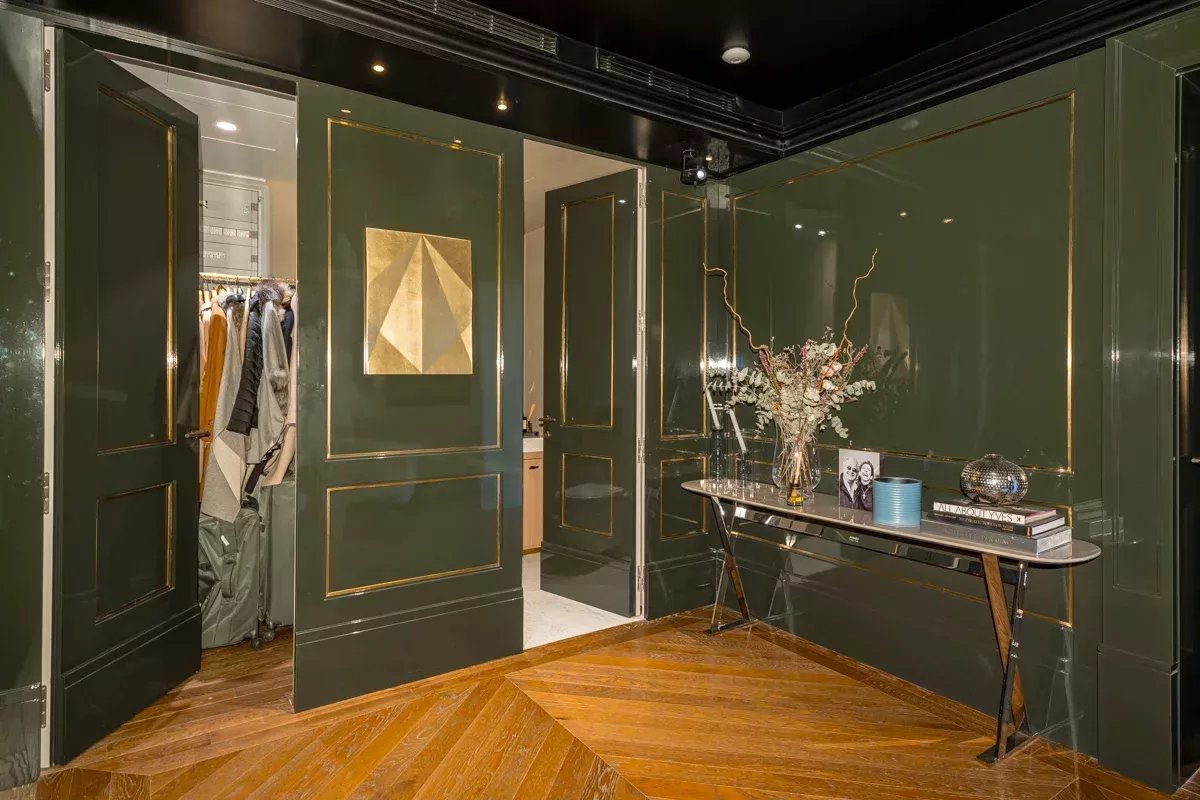 L’appartement présente des finitions haut de gamme : parquet en chêne massif, menuiseries sur mesure, éclairage LED d’ambiance et système domotique complet permettant de contrôler la climatisation, le son, les stores et plus encore.