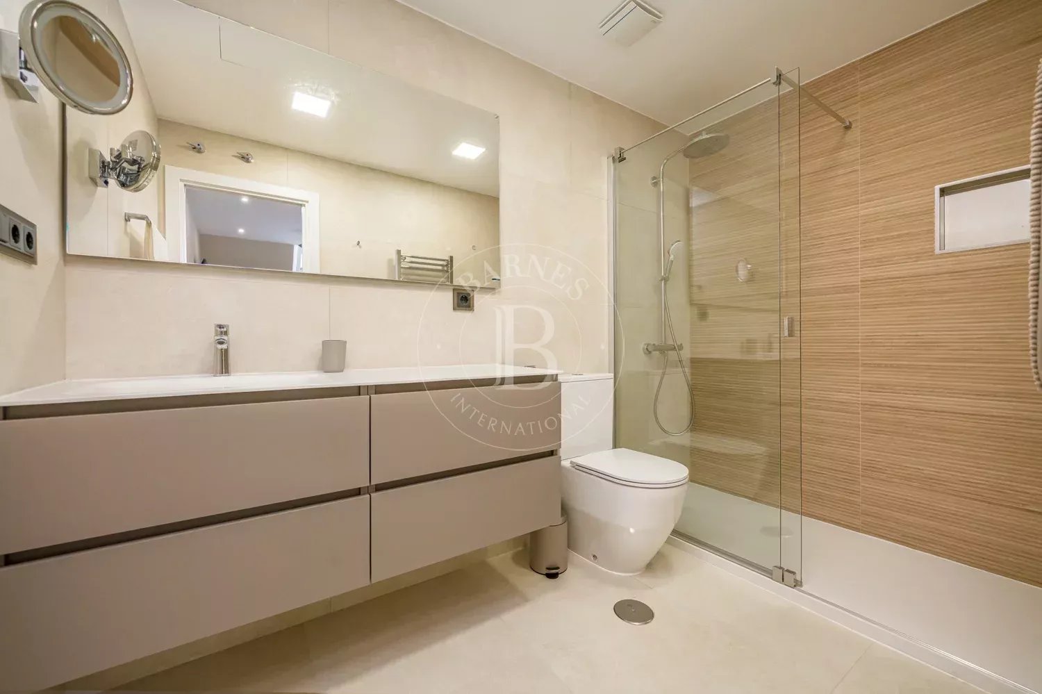 La chambre principale constitue un véritable havre de paix. Sa distribution invite à la détente et au bien-être, avec des espaces parfaitement définis dédiés au repos, au rangement et à l’usage quotidien. L’appartement dispose également de deux salles de bains complètes, un atout rare pour un bien de cette superficie, apportant un confort supplémentaire tant pour la vie quotidienne que pour recevoir des invités.
