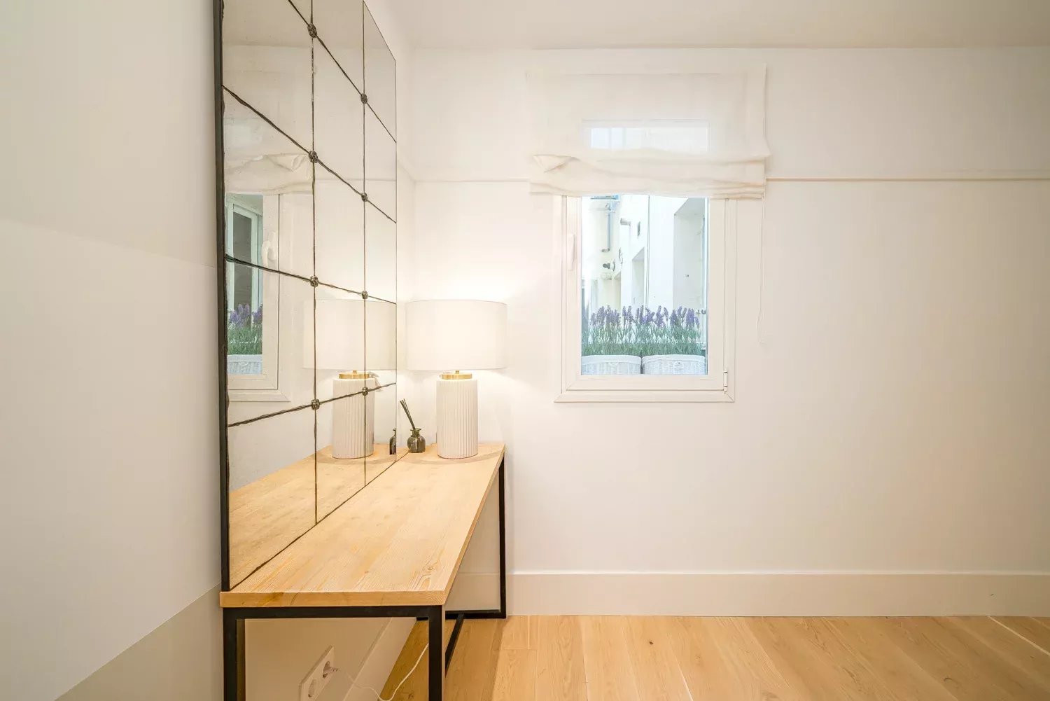 À quelques minutes à pied du Paseo de la Castellana et de la Plaza de Colón, ce logement se distingue par son intimité, sa luminosité et une distribution minutieusement pensée pour offrir confort et fonctionnalité à chaque espace.