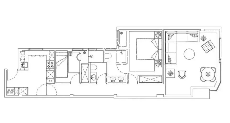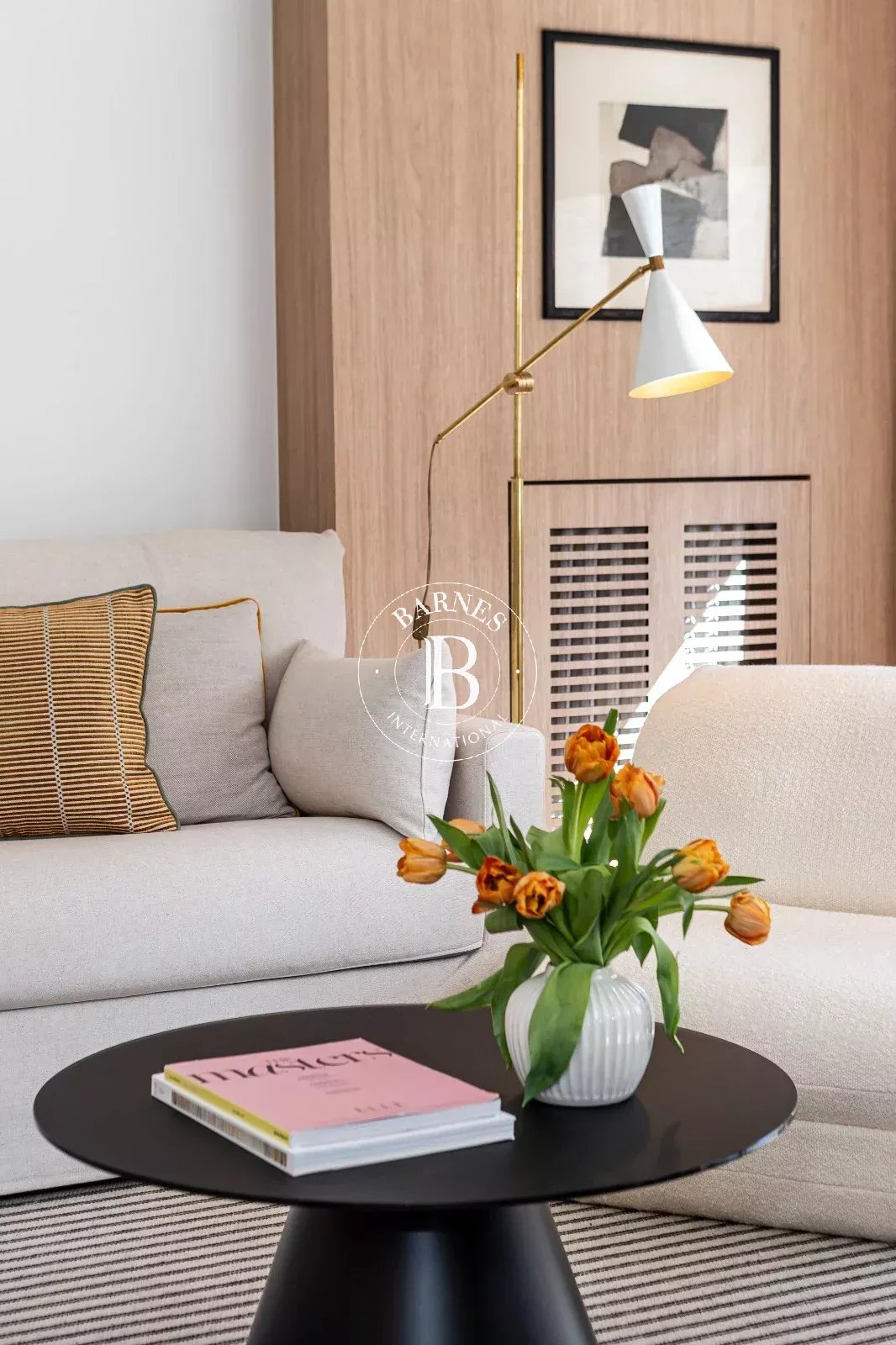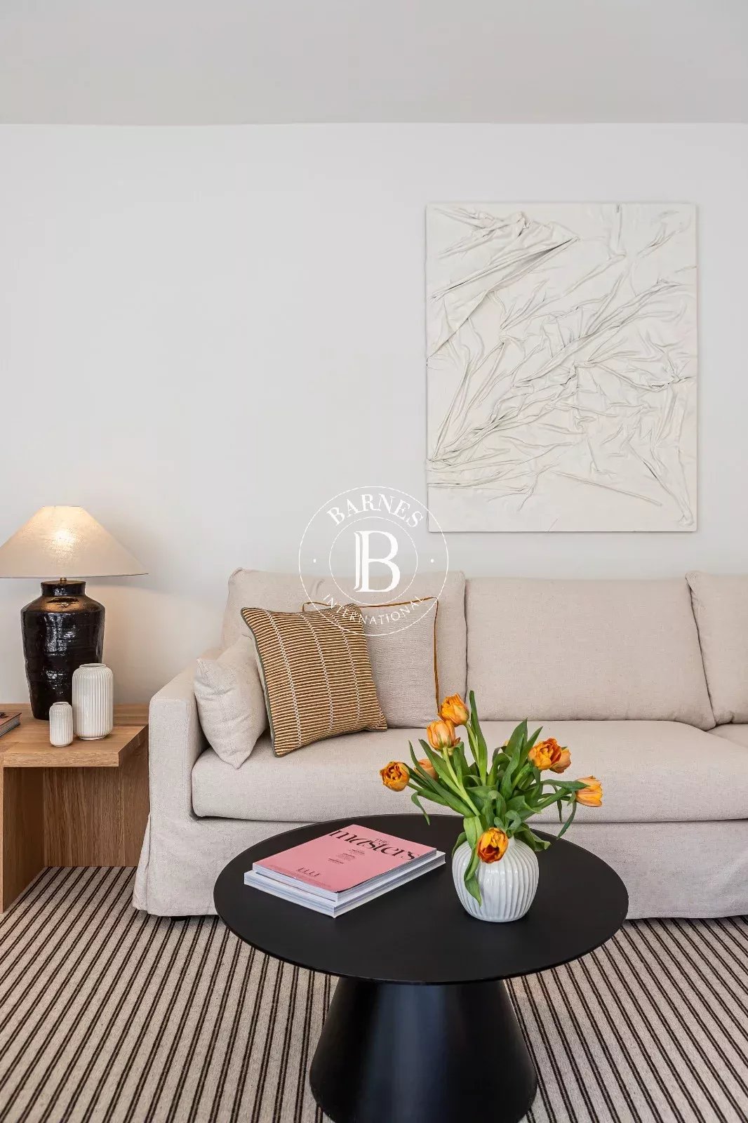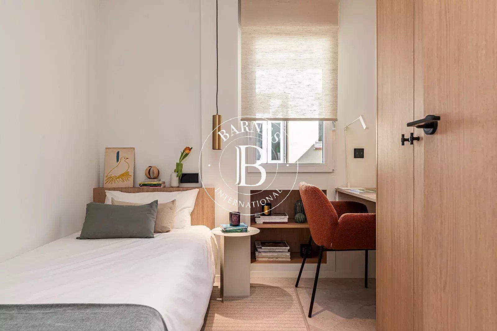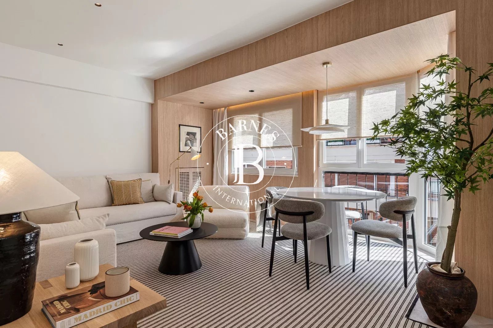 Le bien se distingue par sa luminosité et sa distribution soignée, offrant un salon-salle à manger accueillant avec de grandes baies vitrées et une cuisine indépendante entièrement équipée, intégrée avec discrétion dans l'ensemble.