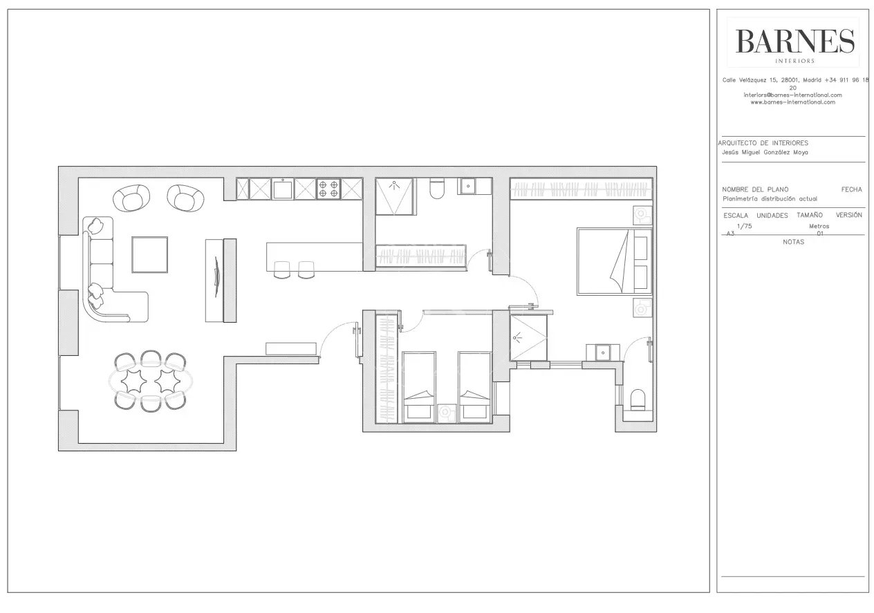 Sur la paisible Calle de San Lorenzo, ce bien de 85 m² a fait l’objet d’une rénovation intégrale signée par un architecte de renom, mariant subtilement le charme classique madrilène à une esthétique moderne et sophistiquée.